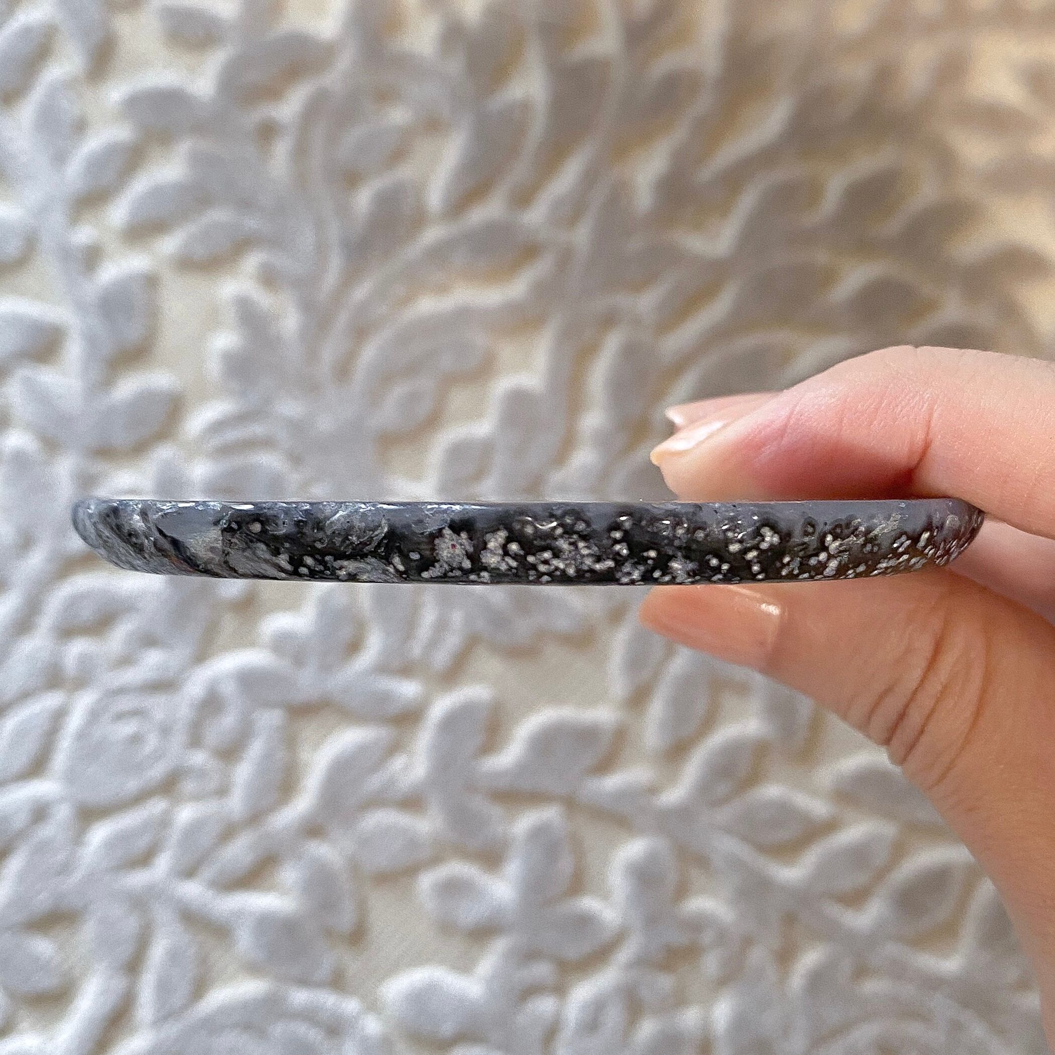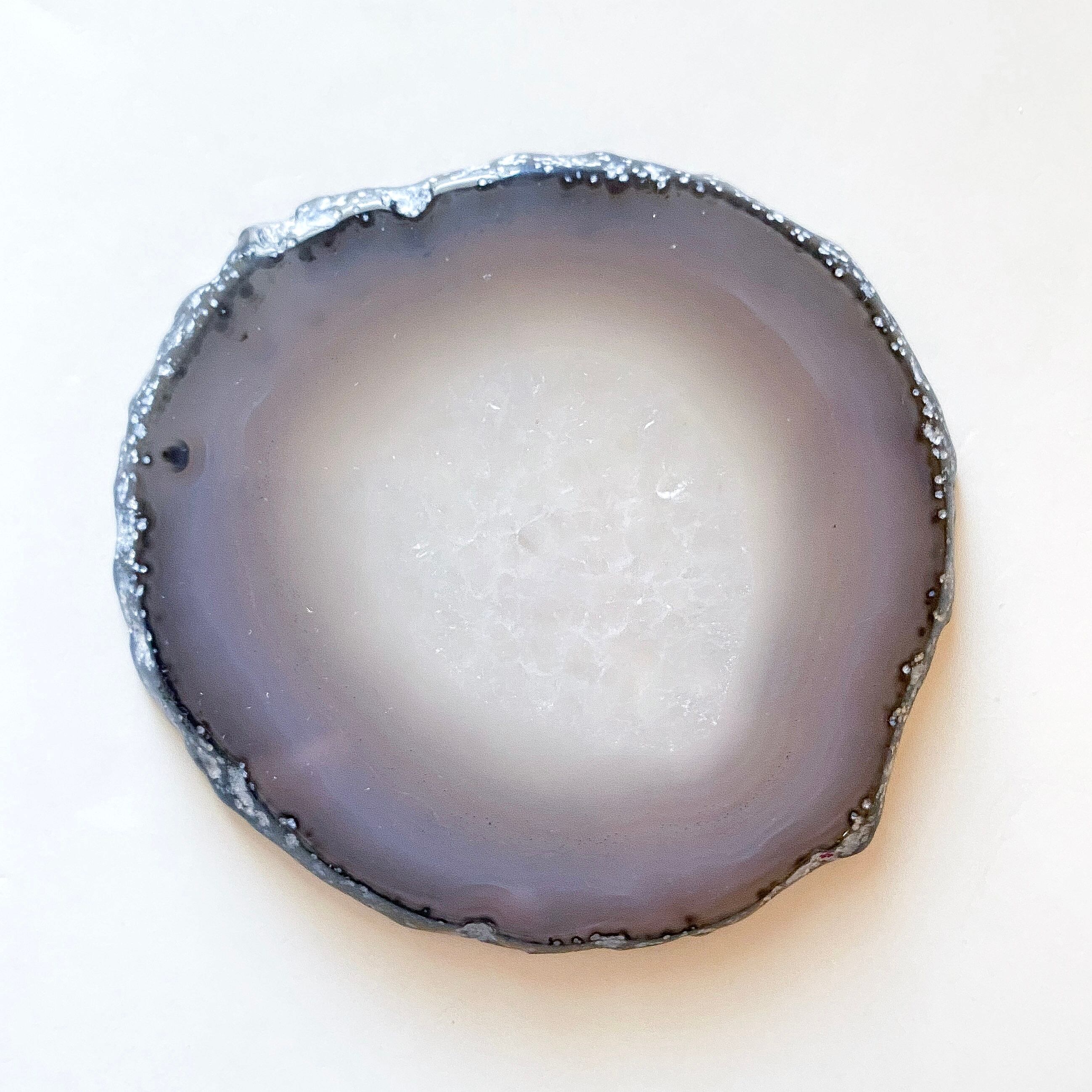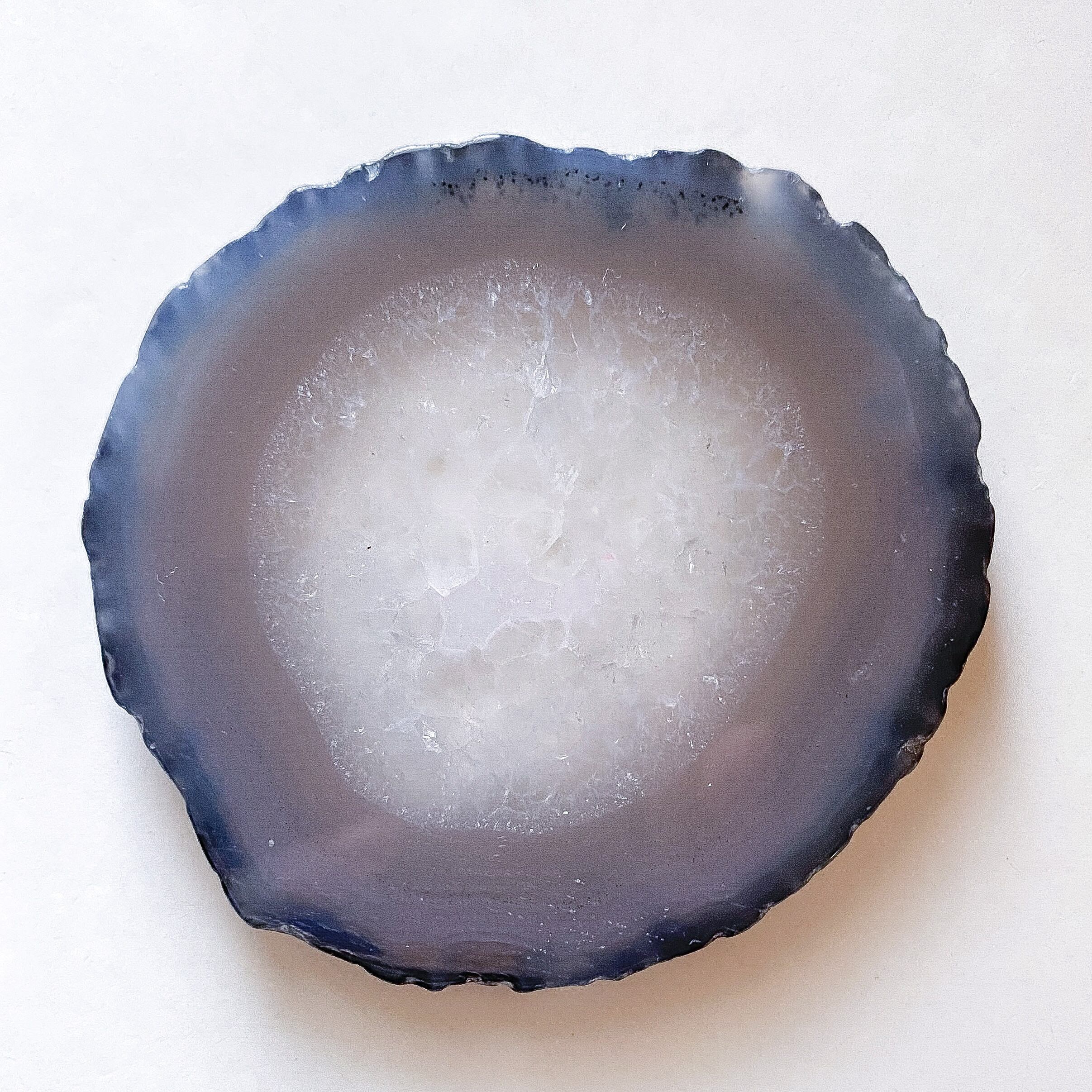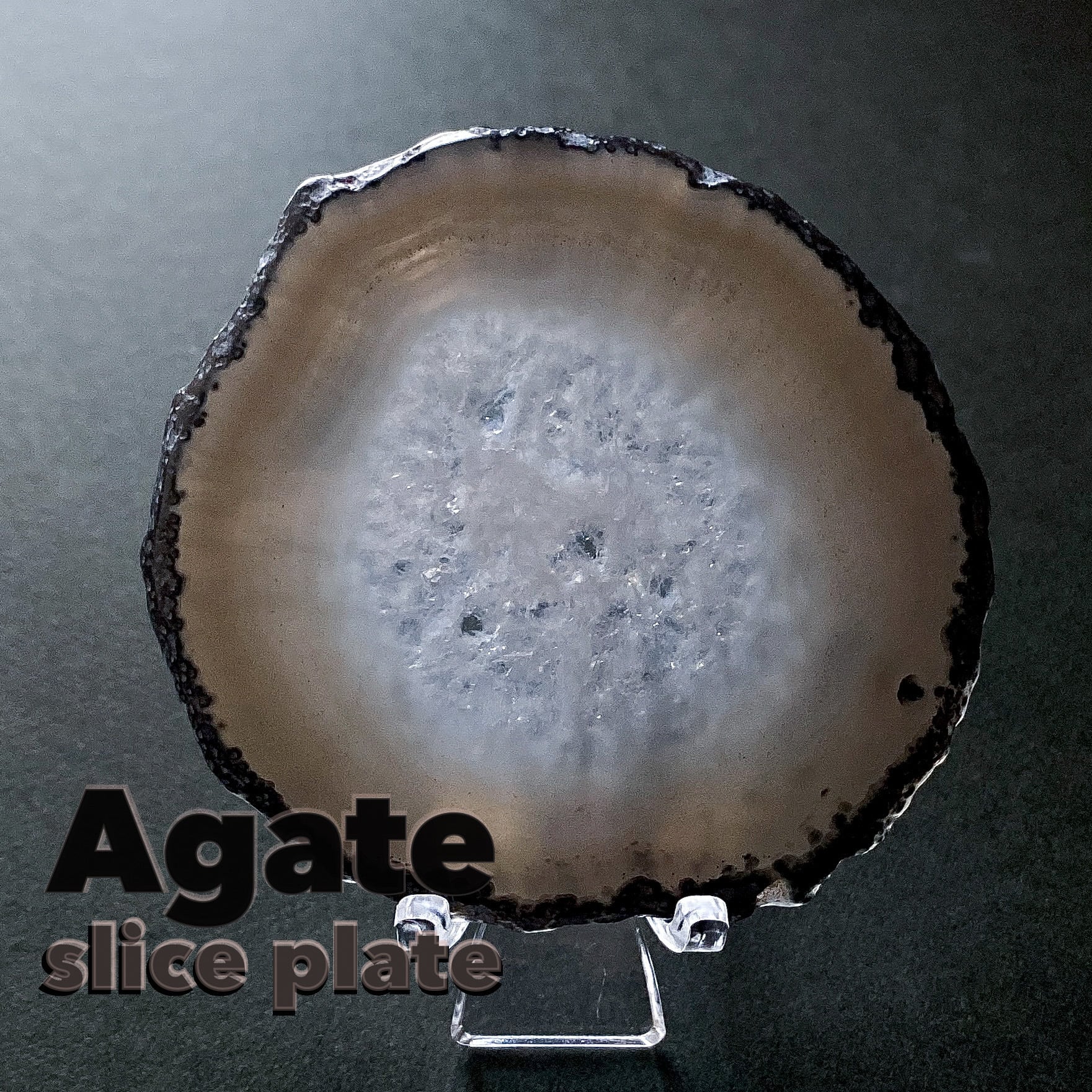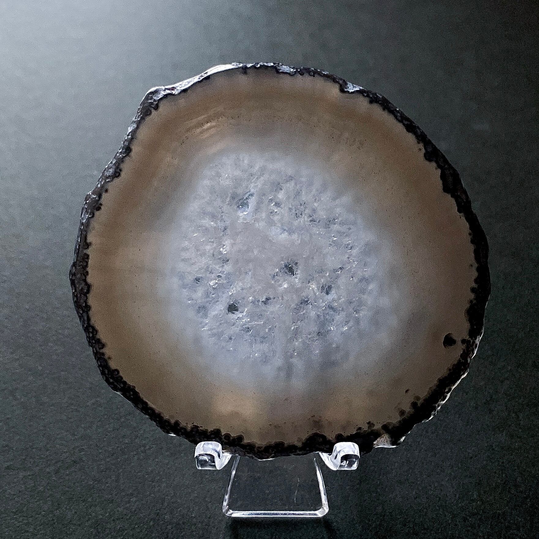 外側がブラック、内側が水晶結晶化したアゲートのスライスです。