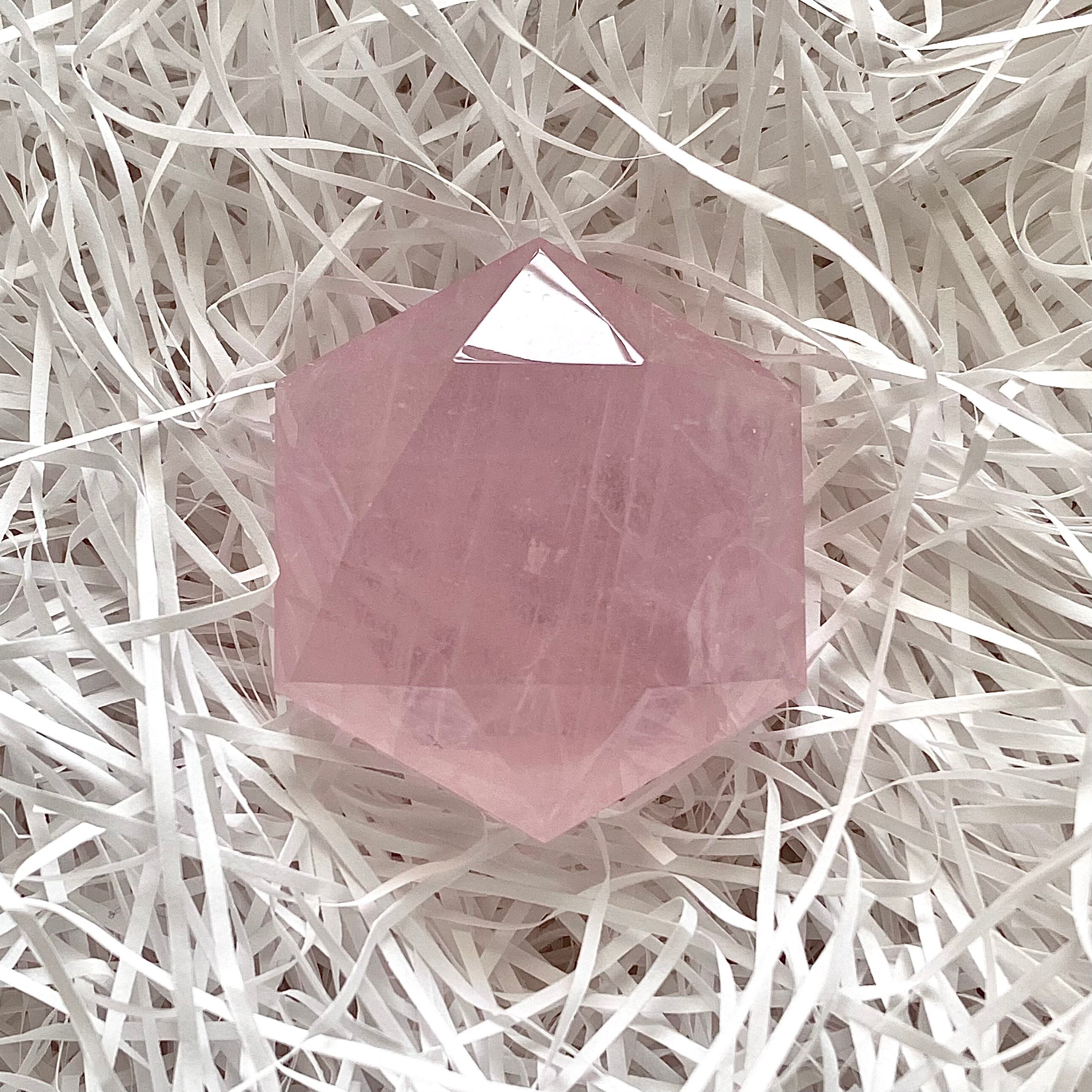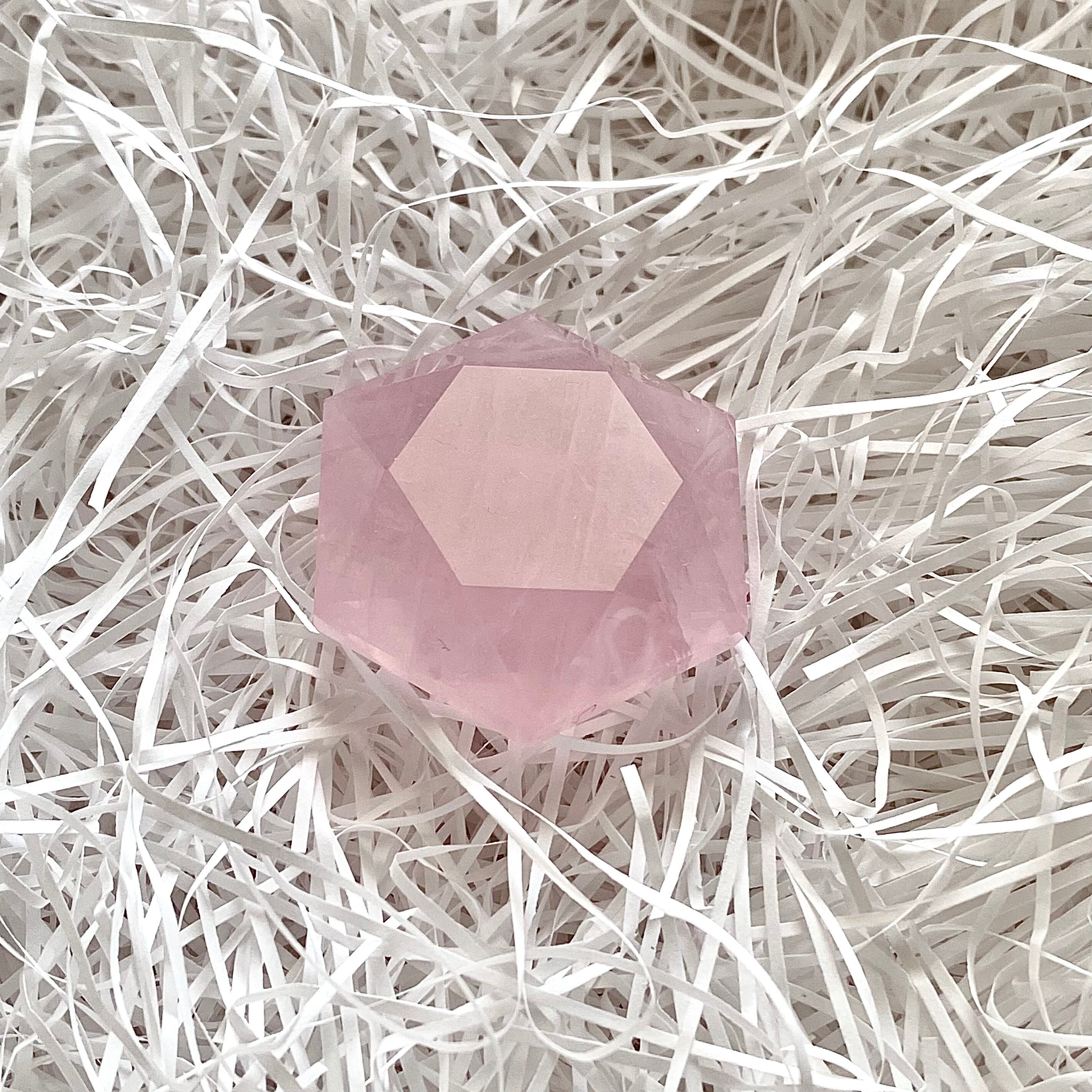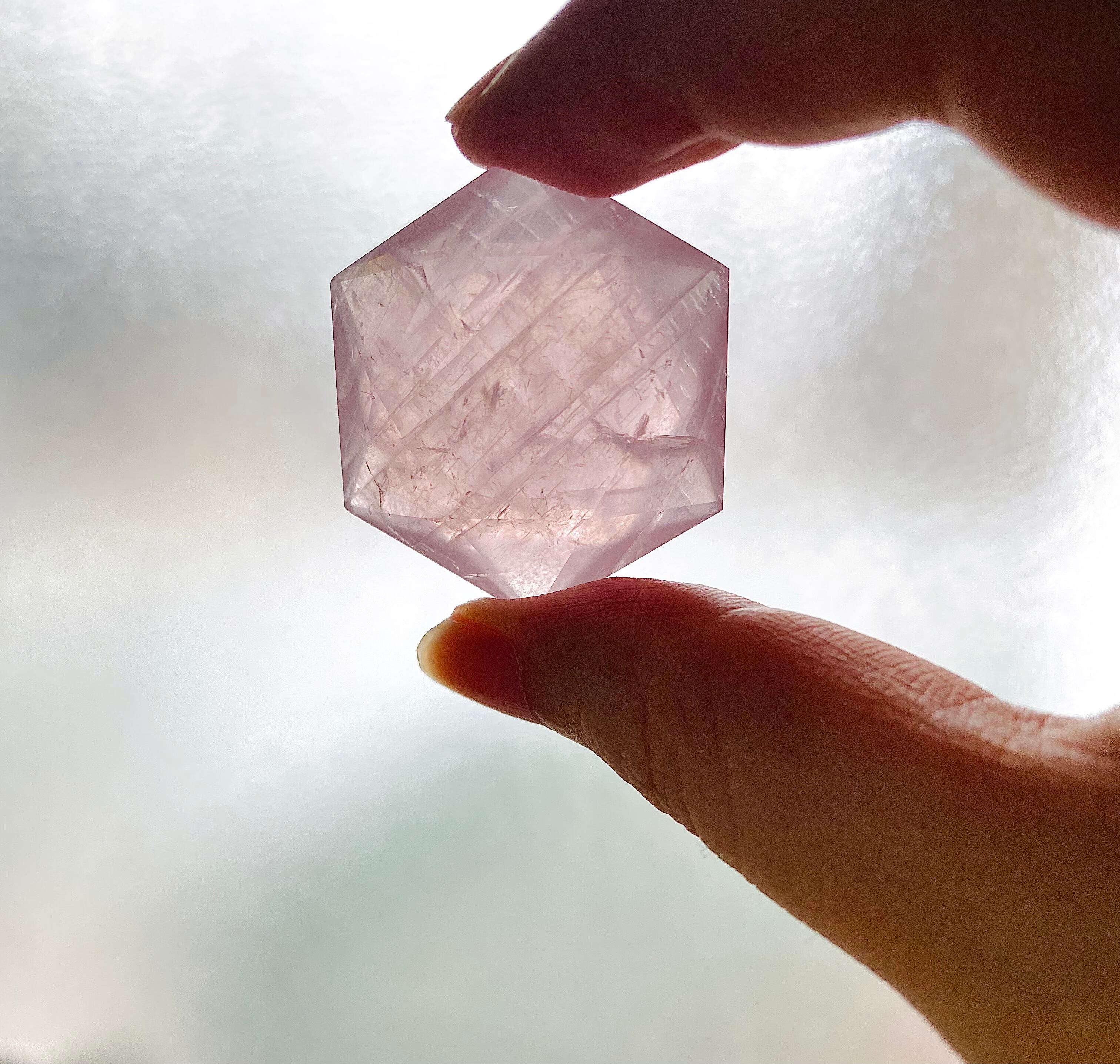 こちらはローズクォーツにヘキサゴンカットを施したものです。