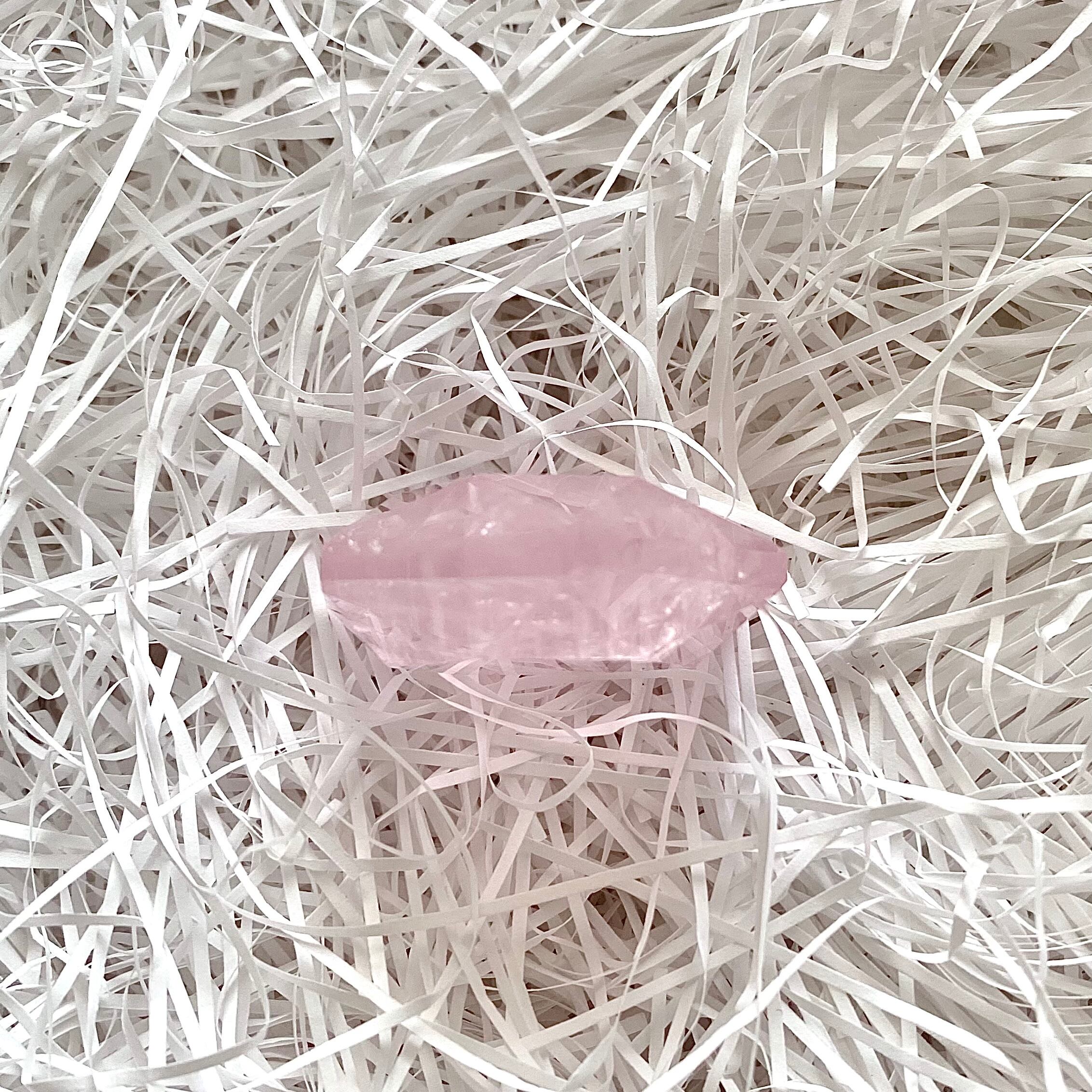 透明感があり色もしっかりピンク色の乗ったローズクォーツです。カットも良質でエッジに甘さのない研磨となっています。