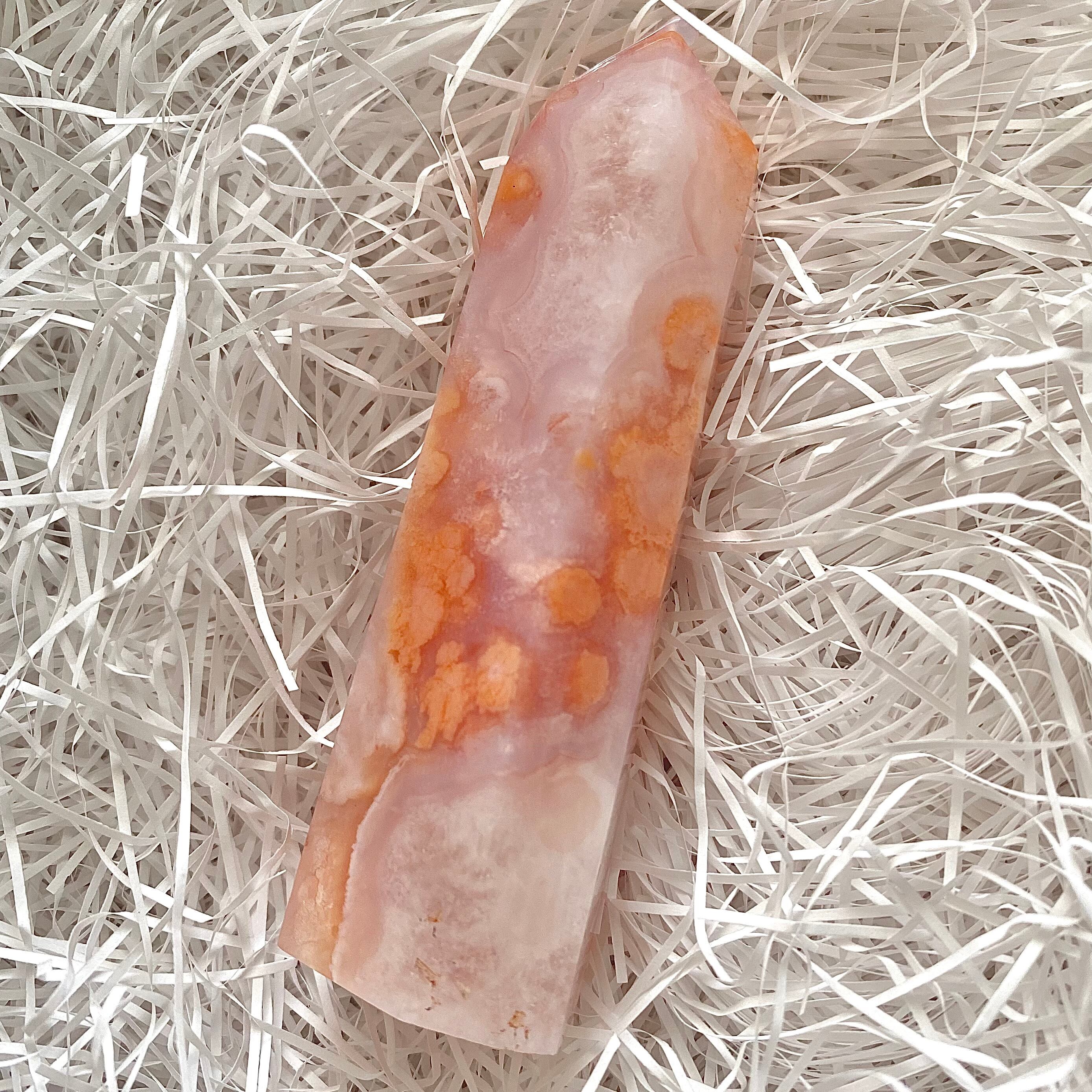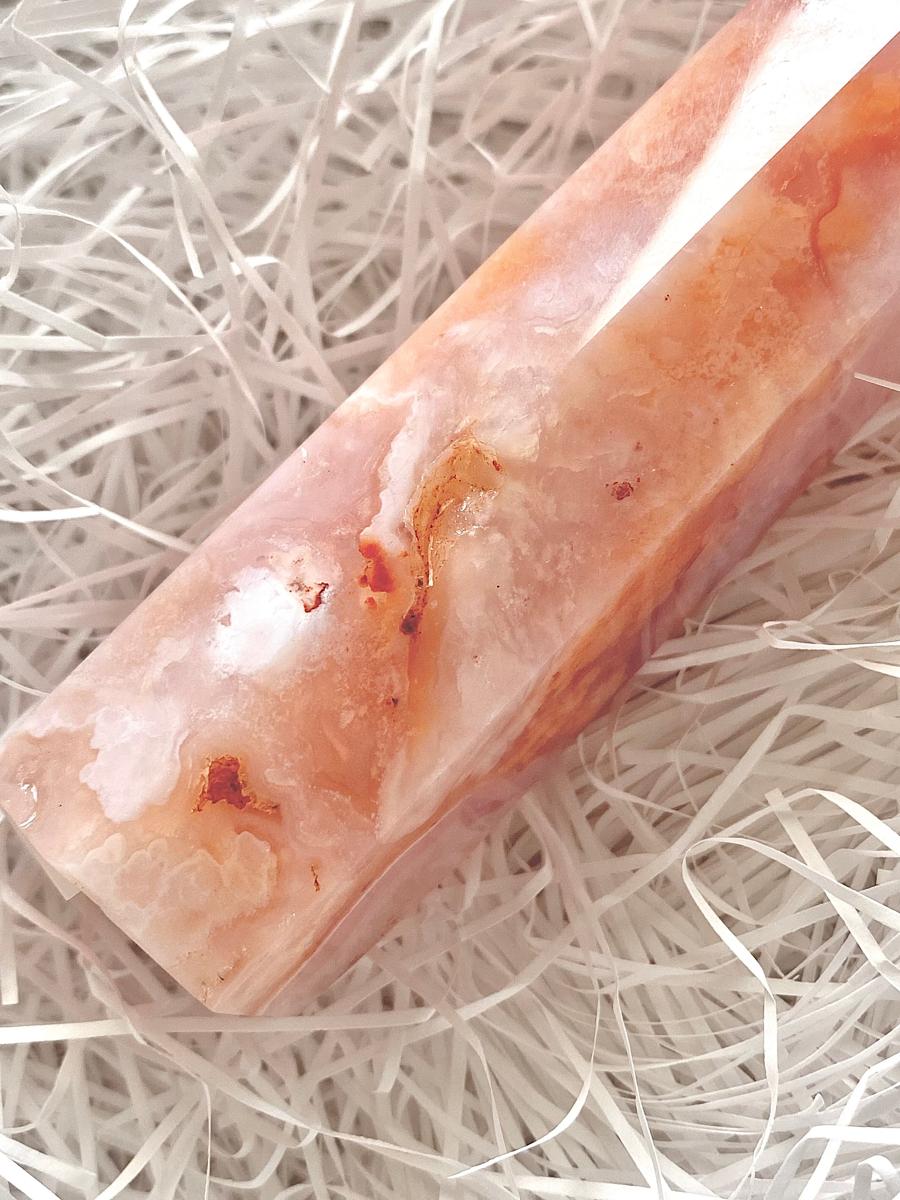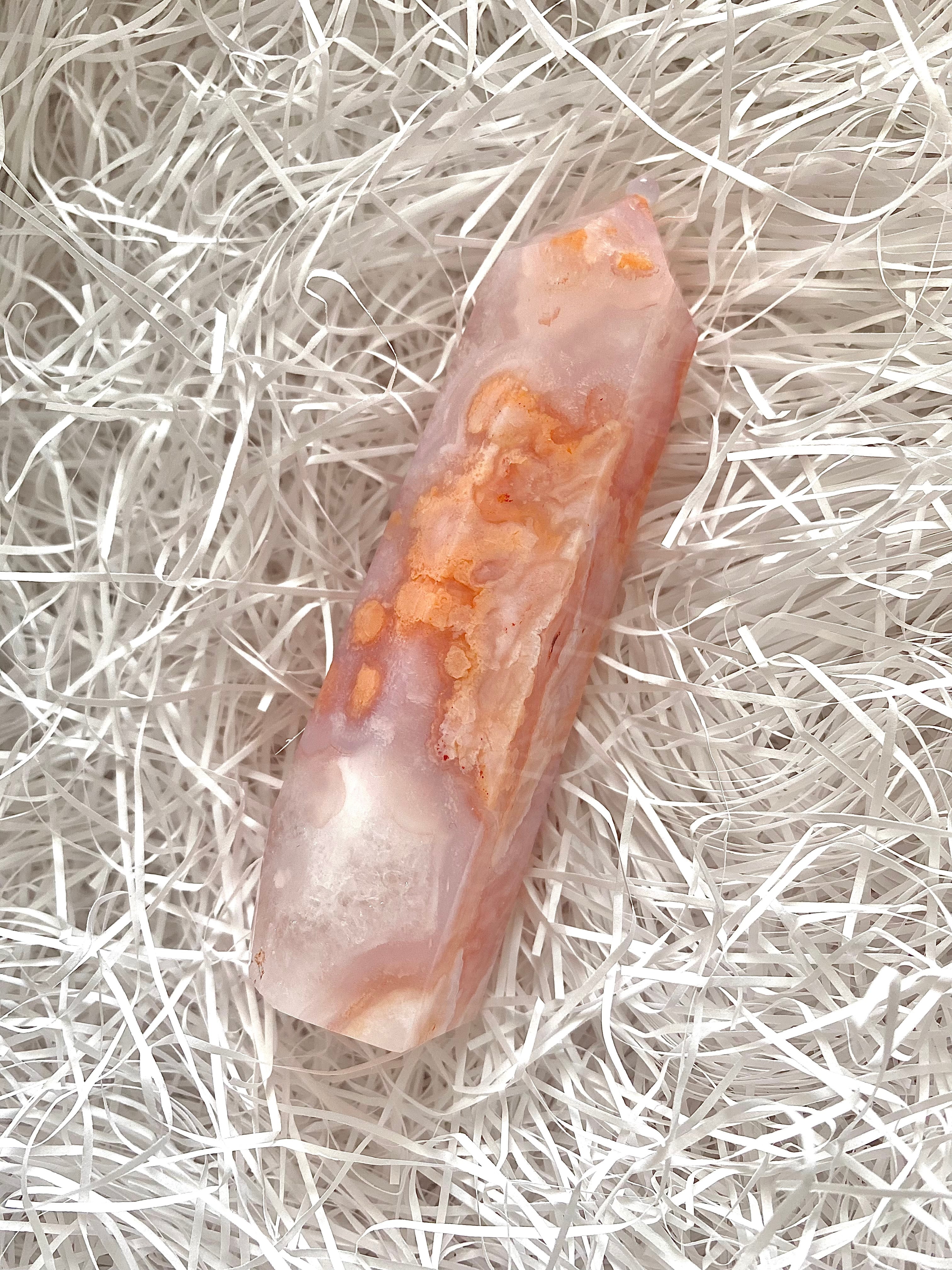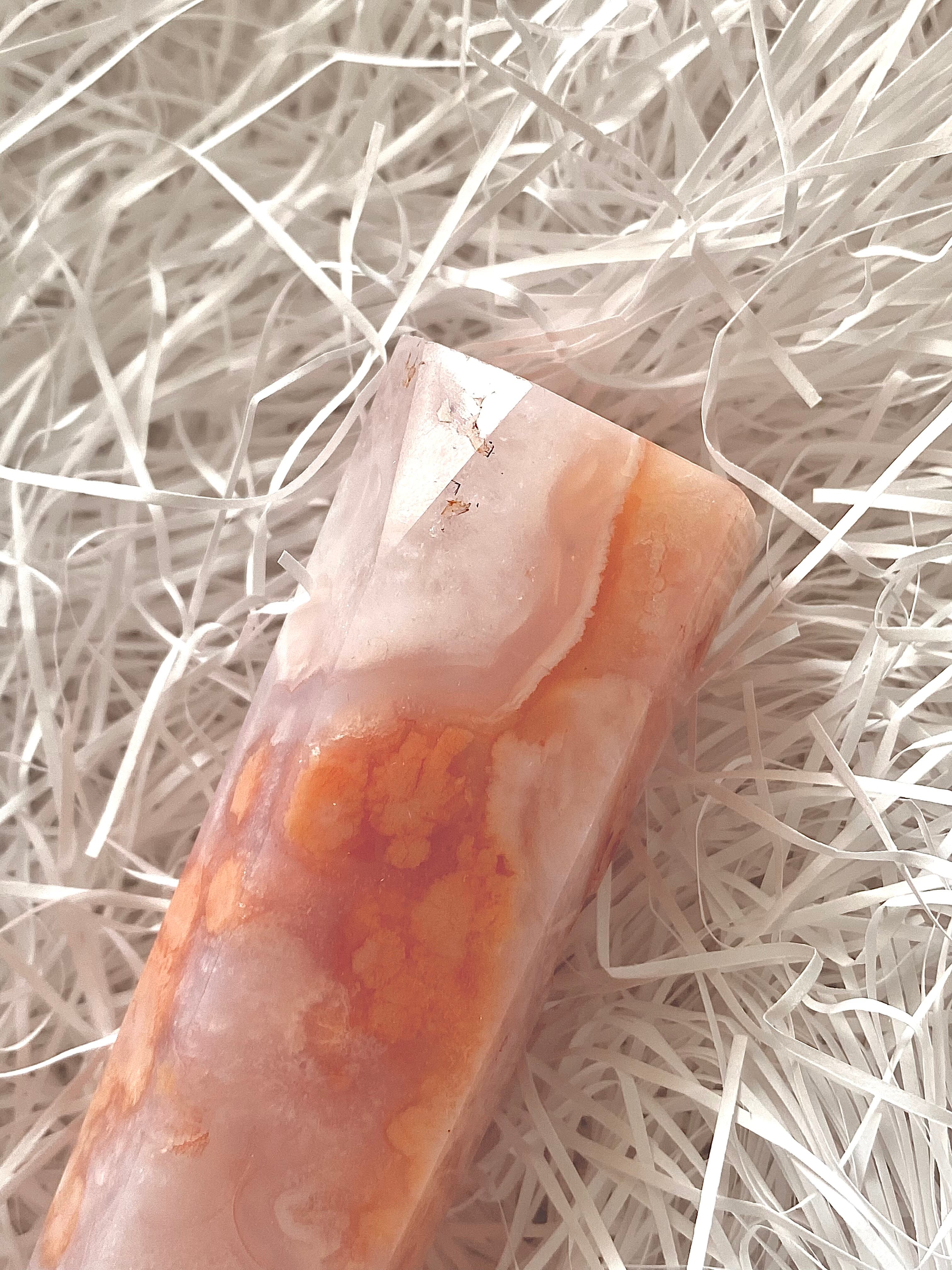 瑪瑙の花の部分がサーモンピンクに色付いている珍しいタイプのフラワーアゲートです。