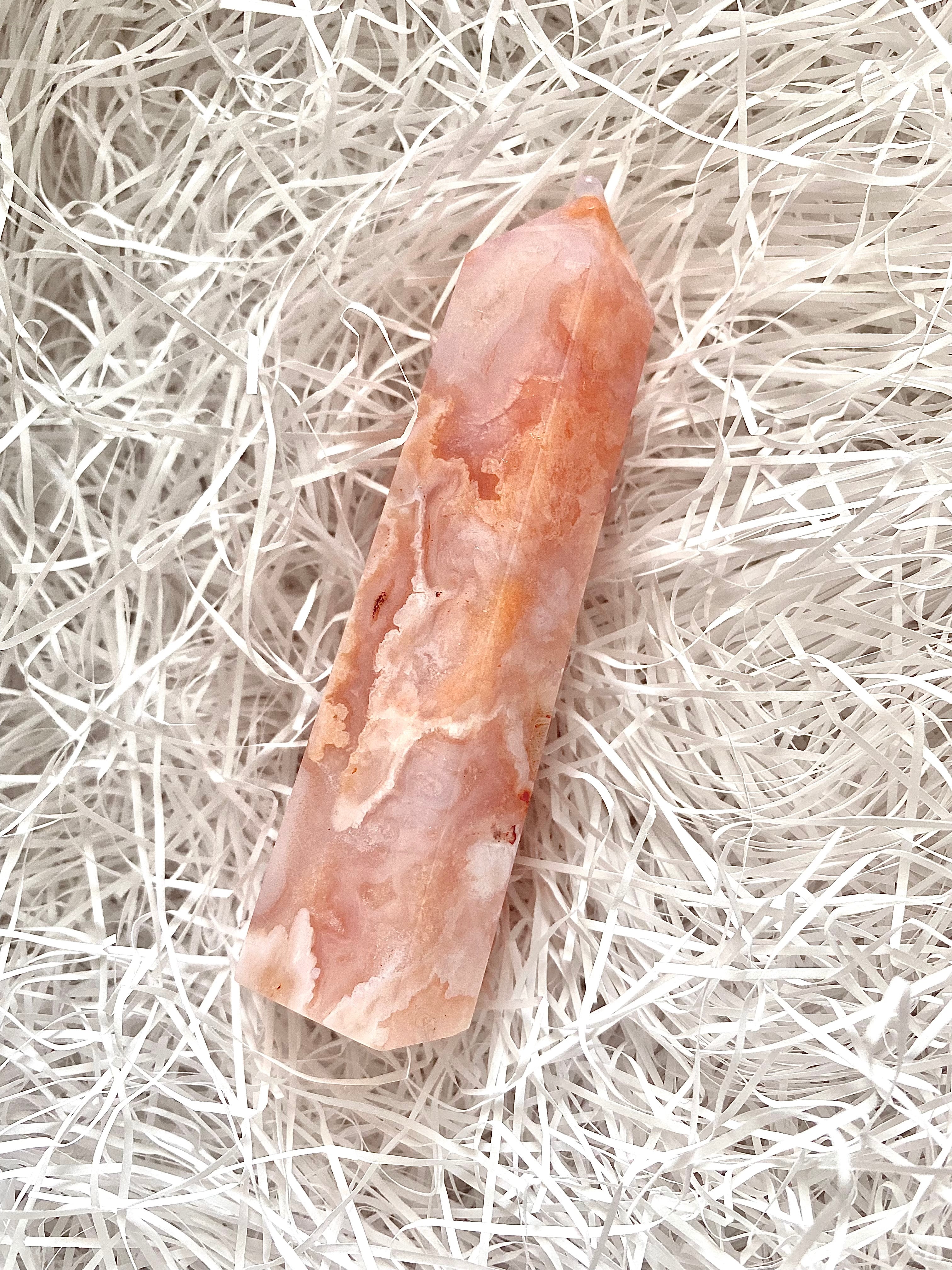 別名桜瑪瑙、チェリーブロッサムアゲートなどと呼ばれます。瑪瑙の仲間で、花が咲いた様な模様が入っていることからそう呼ばれています。
