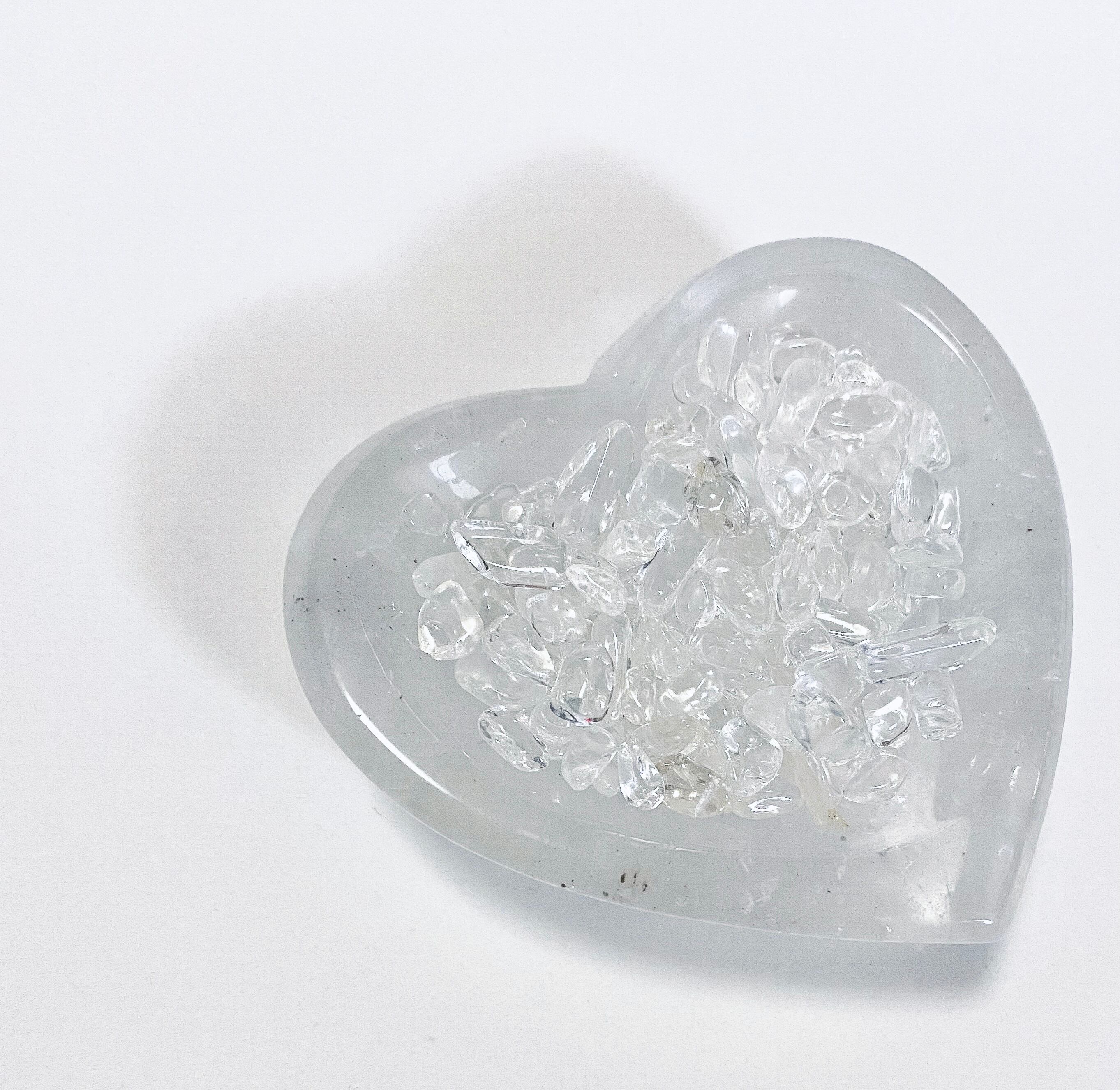 水晶のハート型のお皿になります。