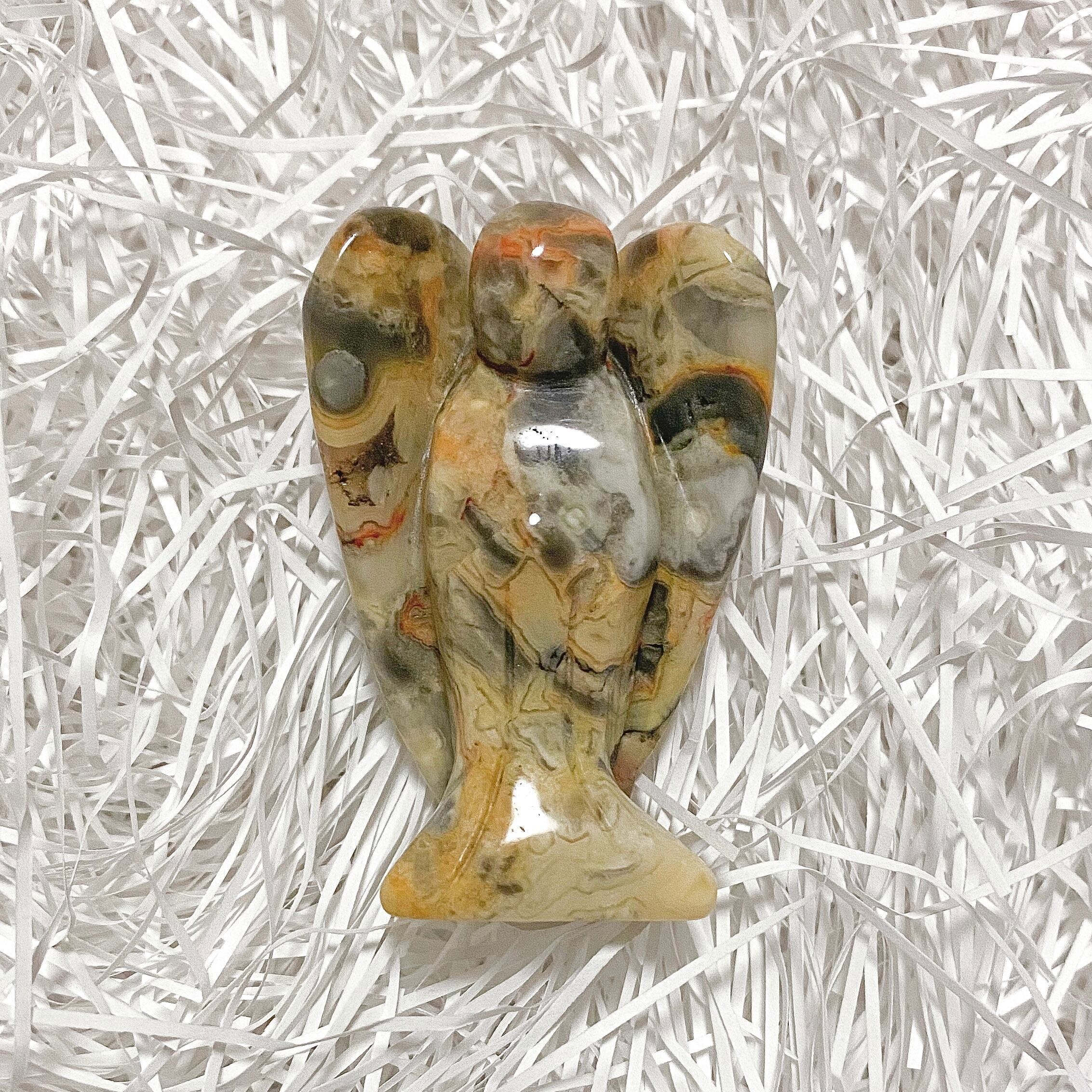 メキシコ産クレイジーレースアゲートの天使です。こちらはハンドカービング(手彫り)となります。
