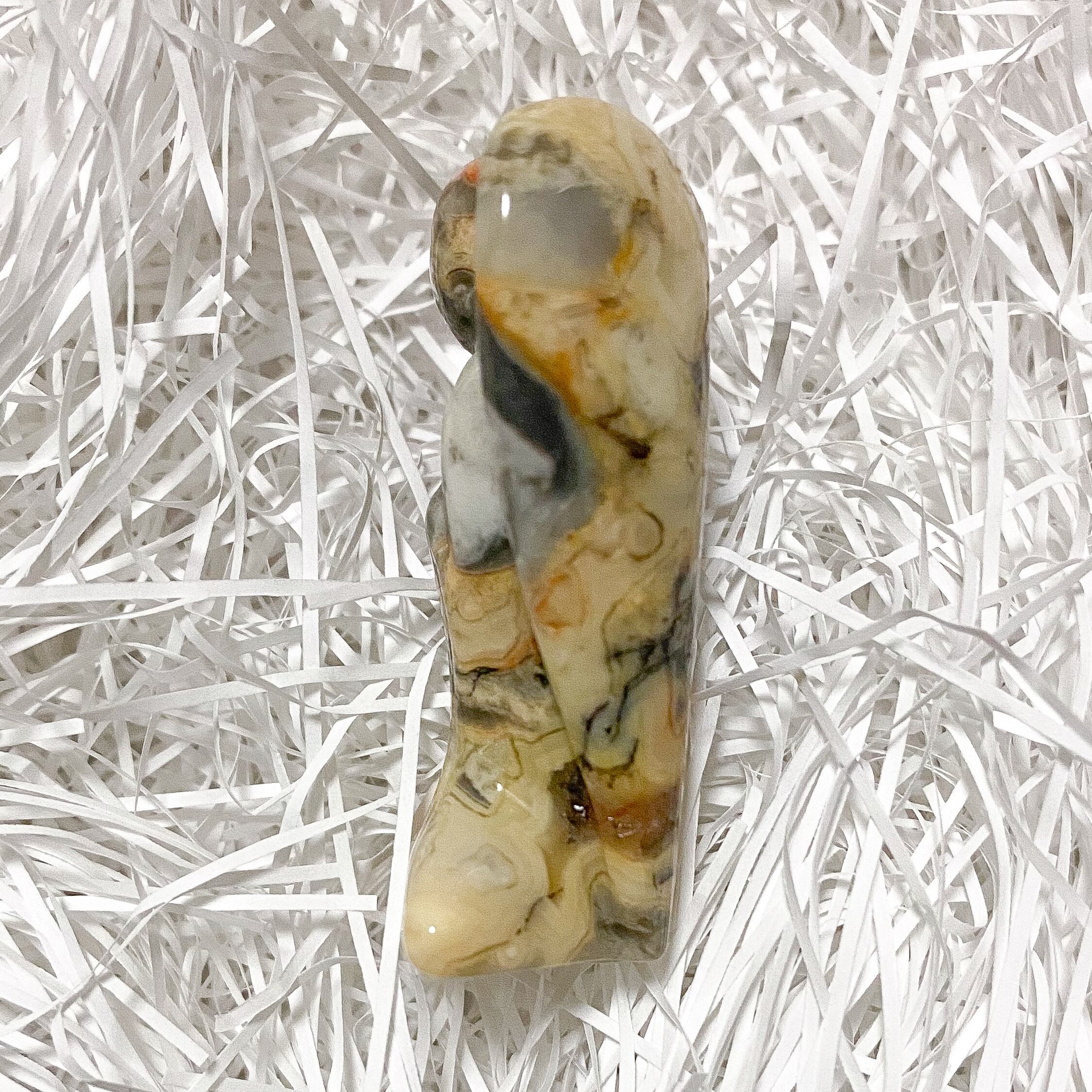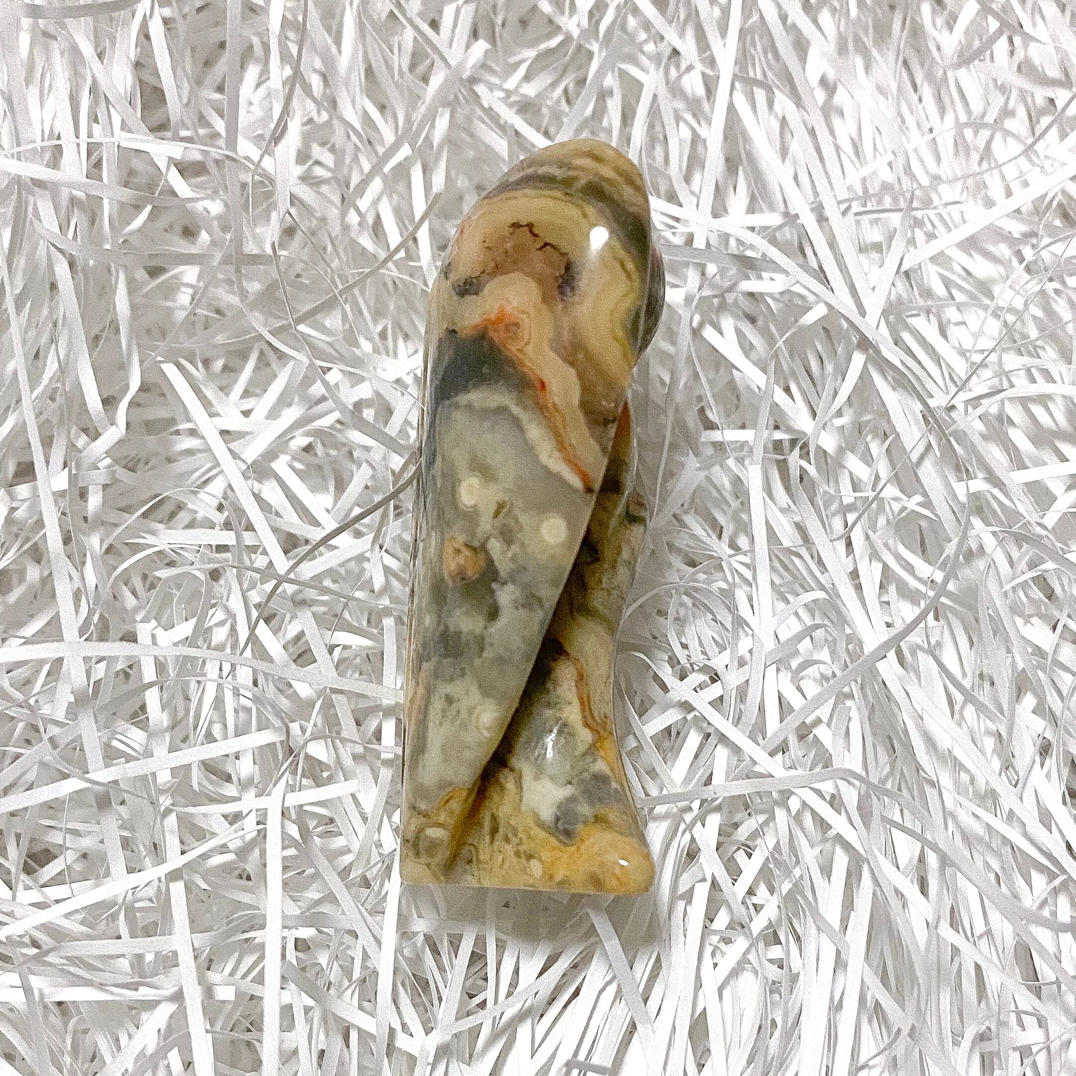 クレイジーレースアゲートのカービングは日本では流通量が少なくほぼ見掛けることはありませんが、複雑に入り組んだ模様は見る人を飽きさせず同じ柄のものを探せない所もこの石の魅力の一つだと思います。
