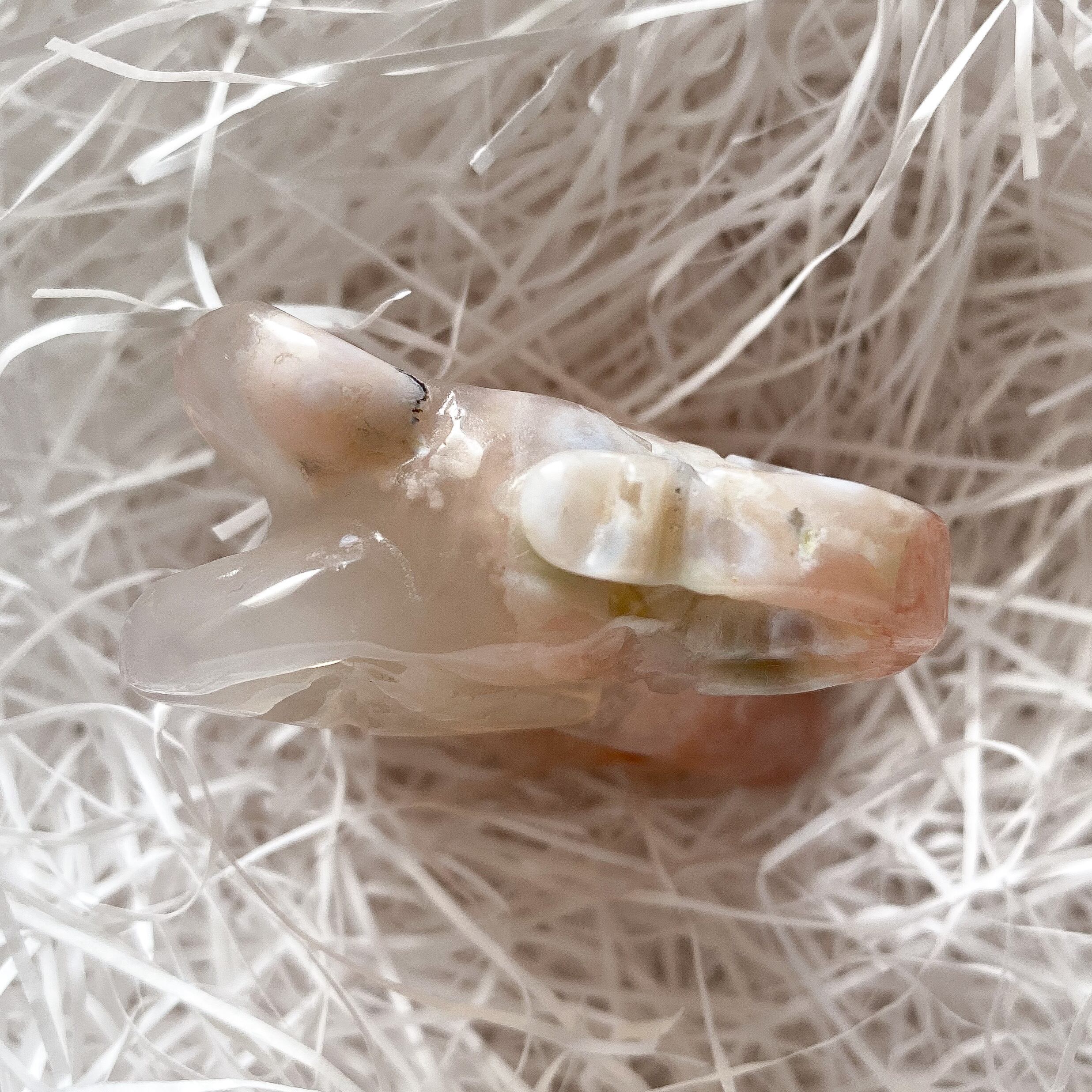 色柄が可愛らしく、象の丸みを帯びたフォルムと優しい印象を持つ桜瑪瑙との相性は良いと思います。