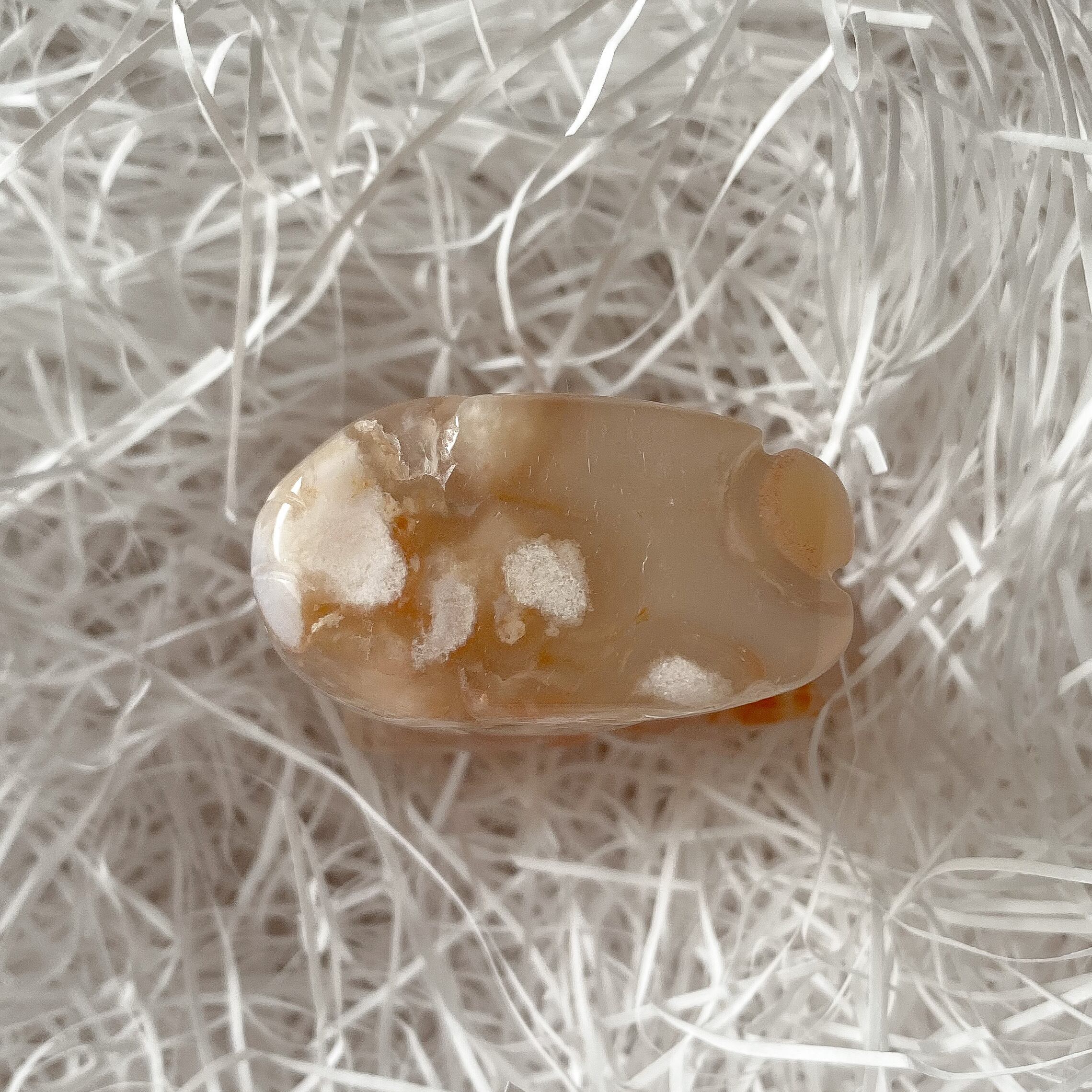 別名桜瑪瑙、チェリーブロッサムアゲートなどと呼ばれます。瑪瑙の仲間で、花が咲いた様な模様が入っていることからそう呼ばれています。
