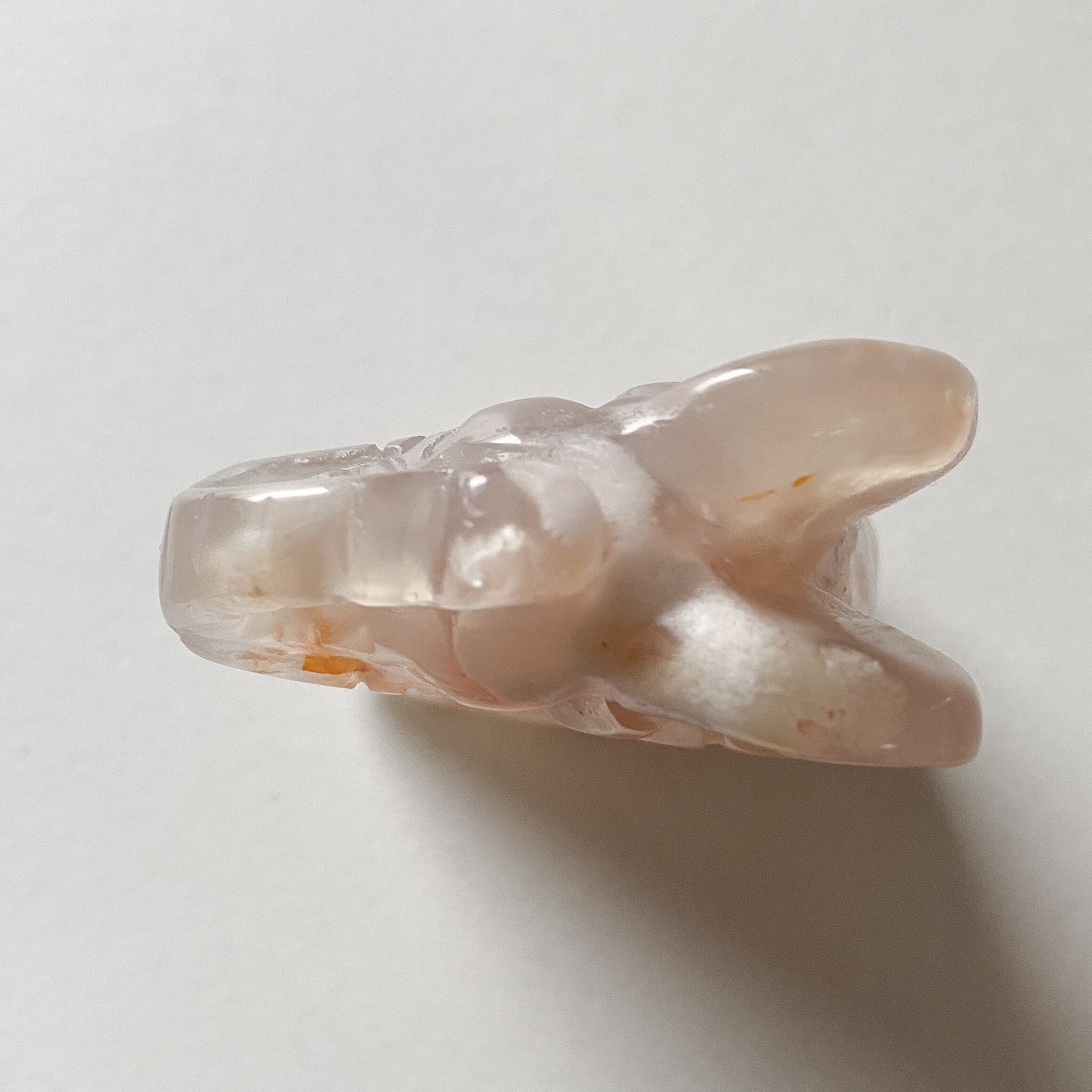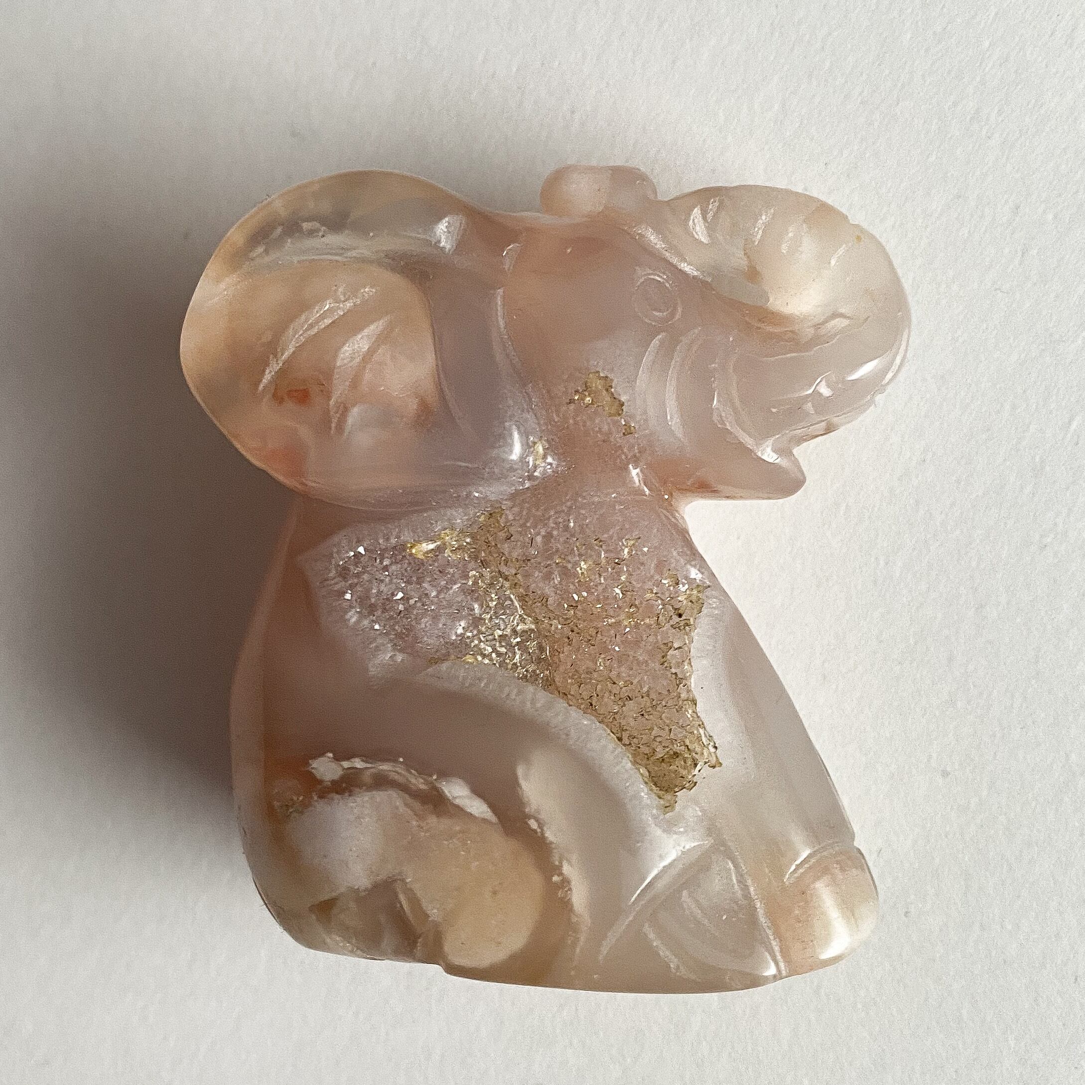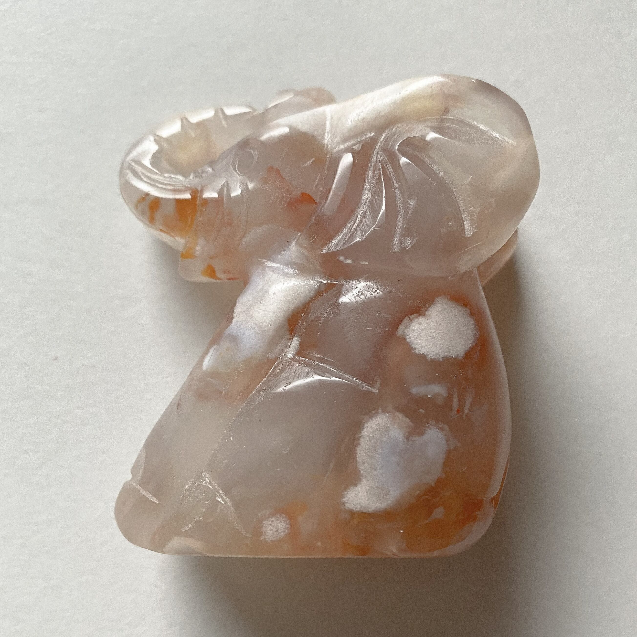 色柄が可愛らしく、象の丸みを帯びたフォルムと優しい印象を持つ桜瑪瑙との相性はとても良いと思います。手彫りは微妙な差異が生じますのでこちらは頭にスフィアを乗せることは出来ませんでした。