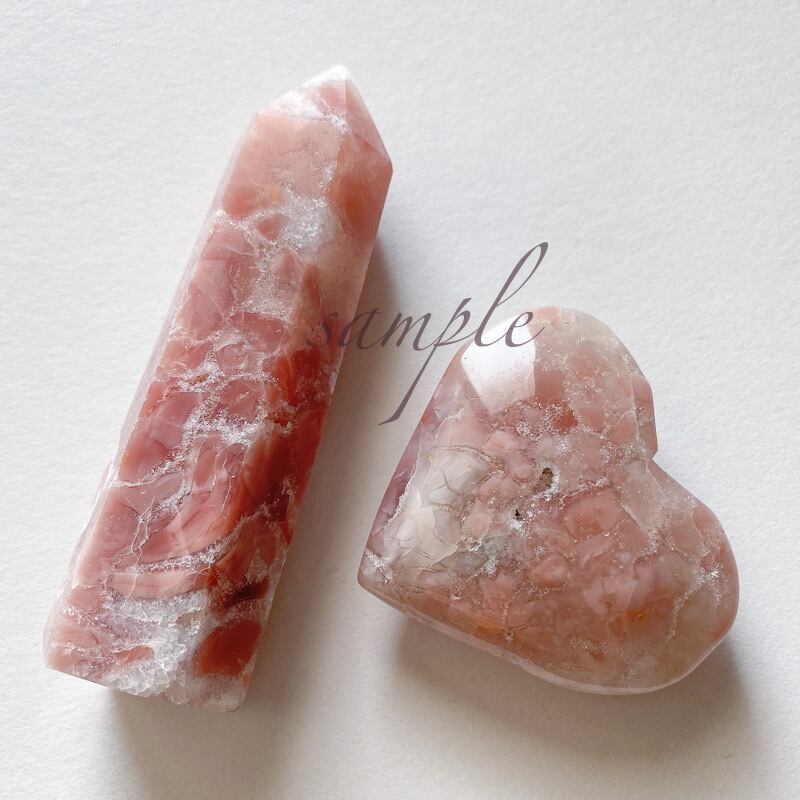 販売中のピンクアゲートのハートシェイプと比べると色はこちらが濃くはっきりとしていて、ハートシェイプは淡く優しい雰囲気です。