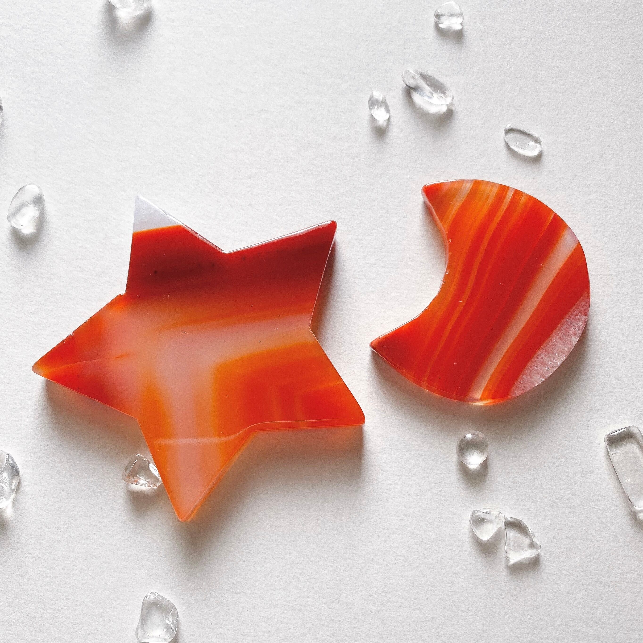 鮮やかなカラーのカーネリアンお星様&お月様です。色のトーンや雰囲気が似ている2つをセットにしてみました。