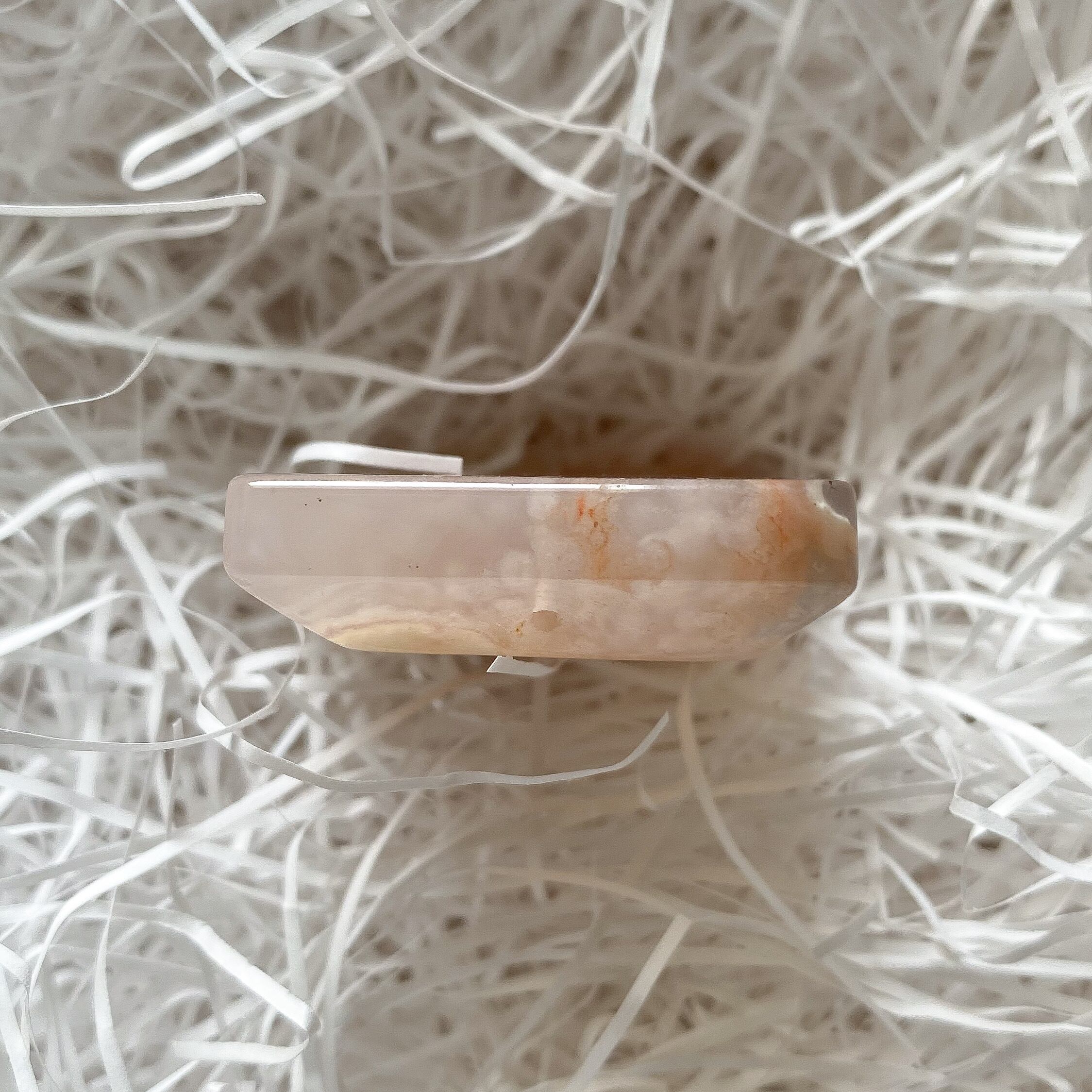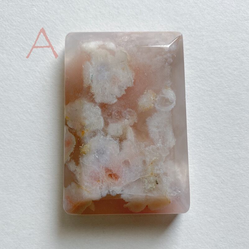 別名桜瑪瑙、チェリーブロッサムアゲートなどと呼ばれます。瑪瑙の仲間で、花が咲いた様な模様が入っていることからそう呼ばれています。