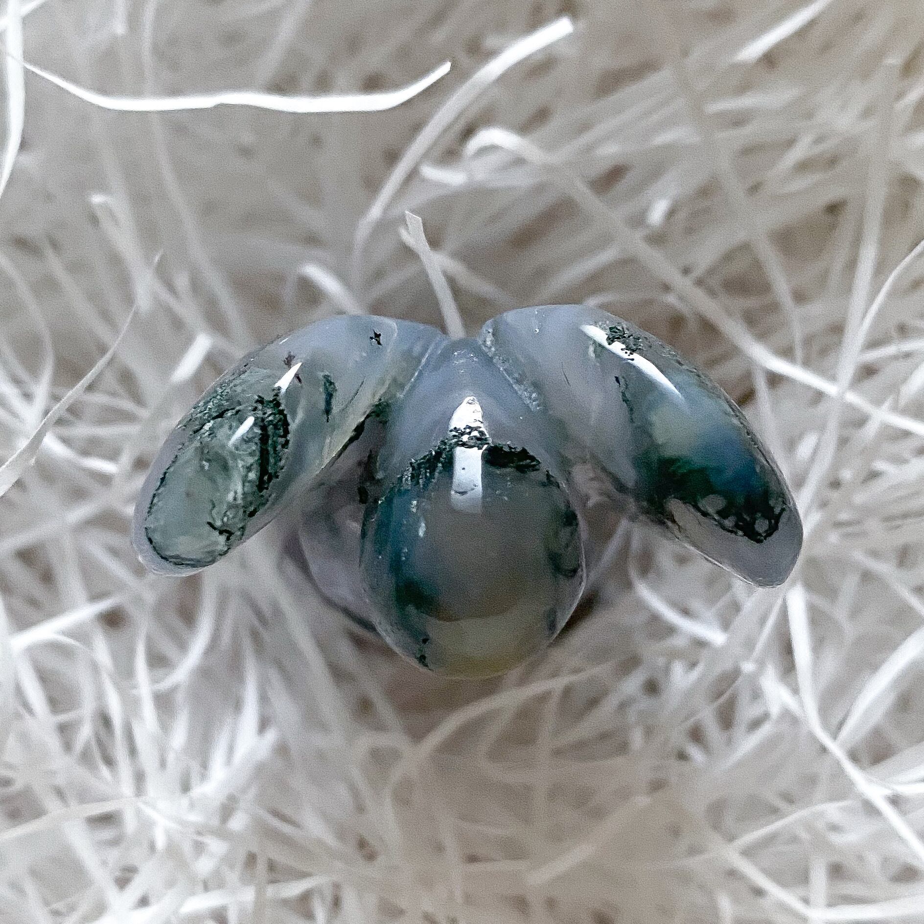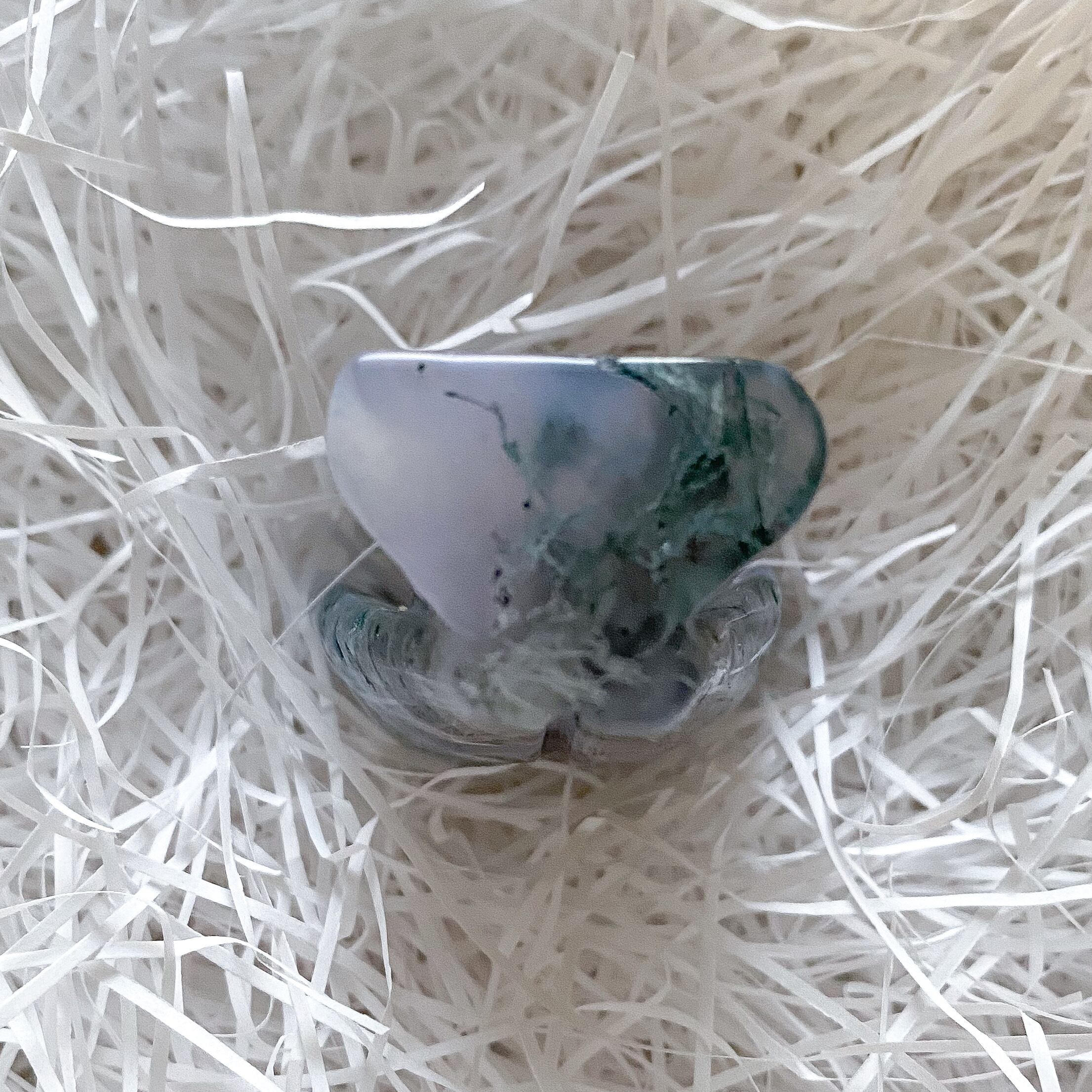 クローライトは特に精神的な痛みを取り除くことに特化した石とされており、瑪瑙の中に混じりモスアゲートになることによって瑪瑙の中でも特に癒しの効果が高いとされる石です。