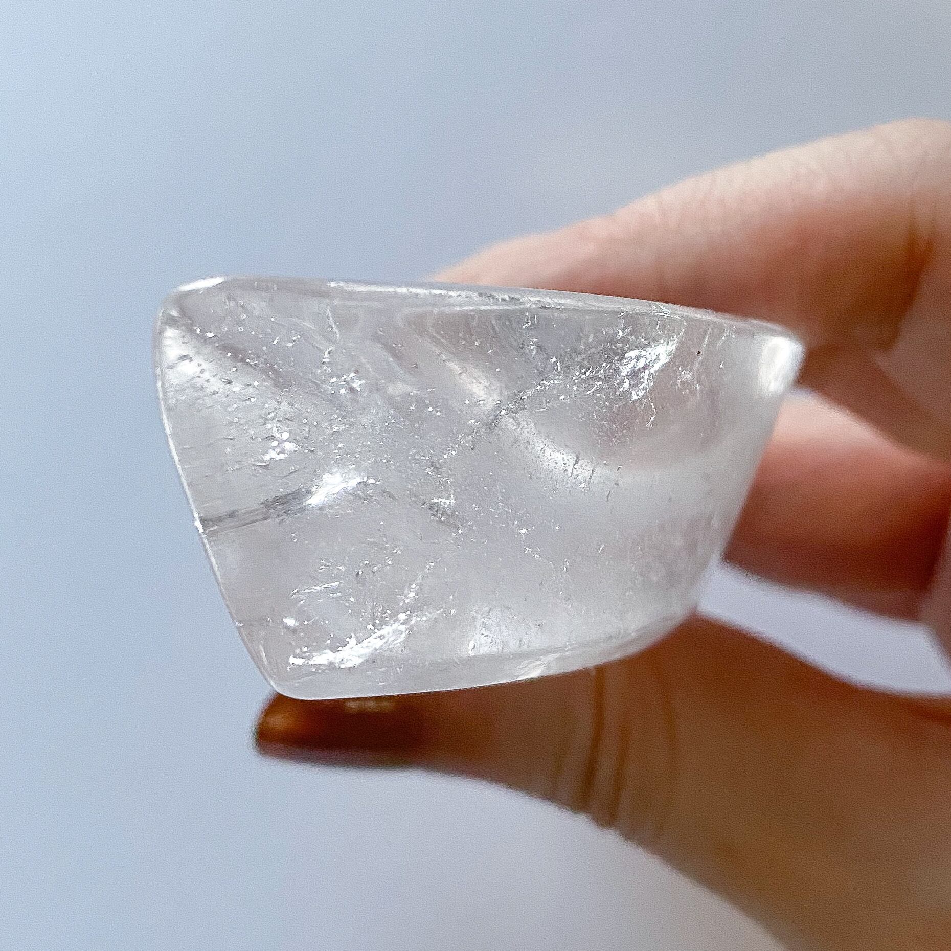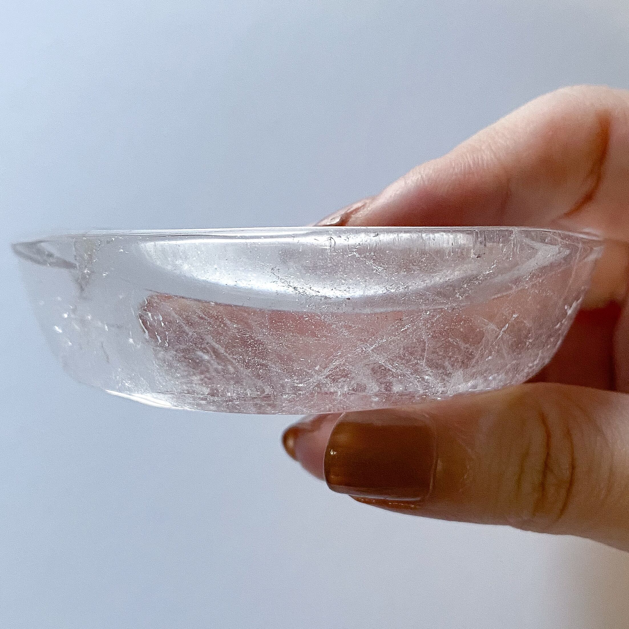透明度も高く、クラックの少ない水晶ボウルです。手の平サイズなので比較的軽く、持ち運びもしやすい大きさです。