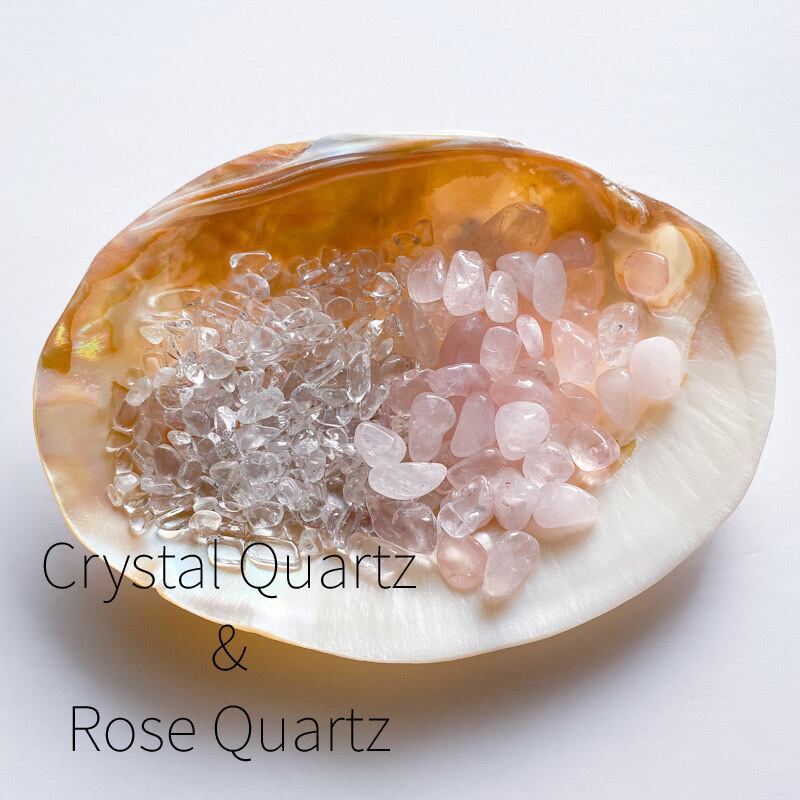 さざれをご希望の場合はオプションからセット購入をお選び頂けます。ローズクォーツと水晶のさざれはサイズが異なります(写真7枚目)。MIXは2種を混ぜ合わせたものとなります。(100gの場合、ローズクォーツ50g、水晶50g)