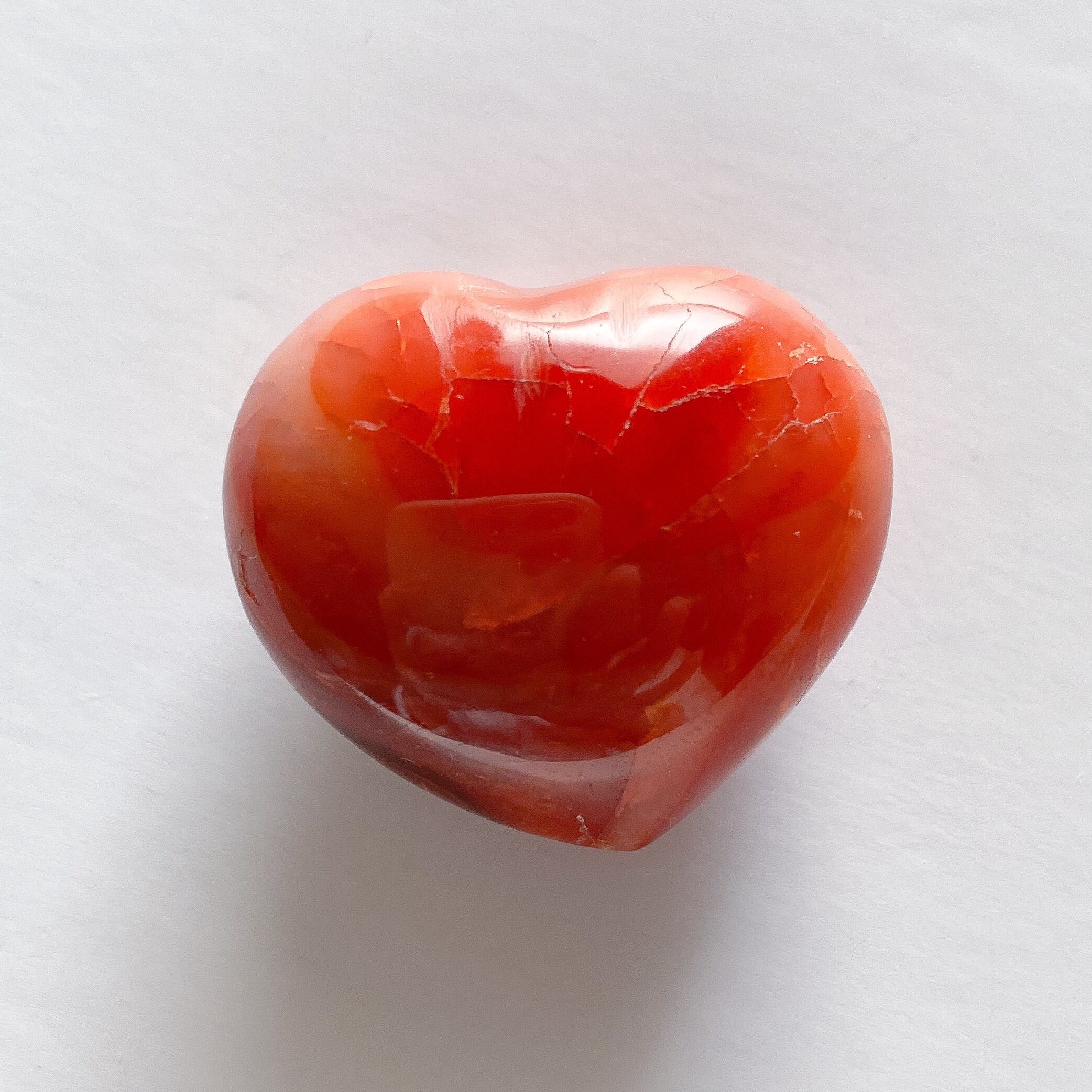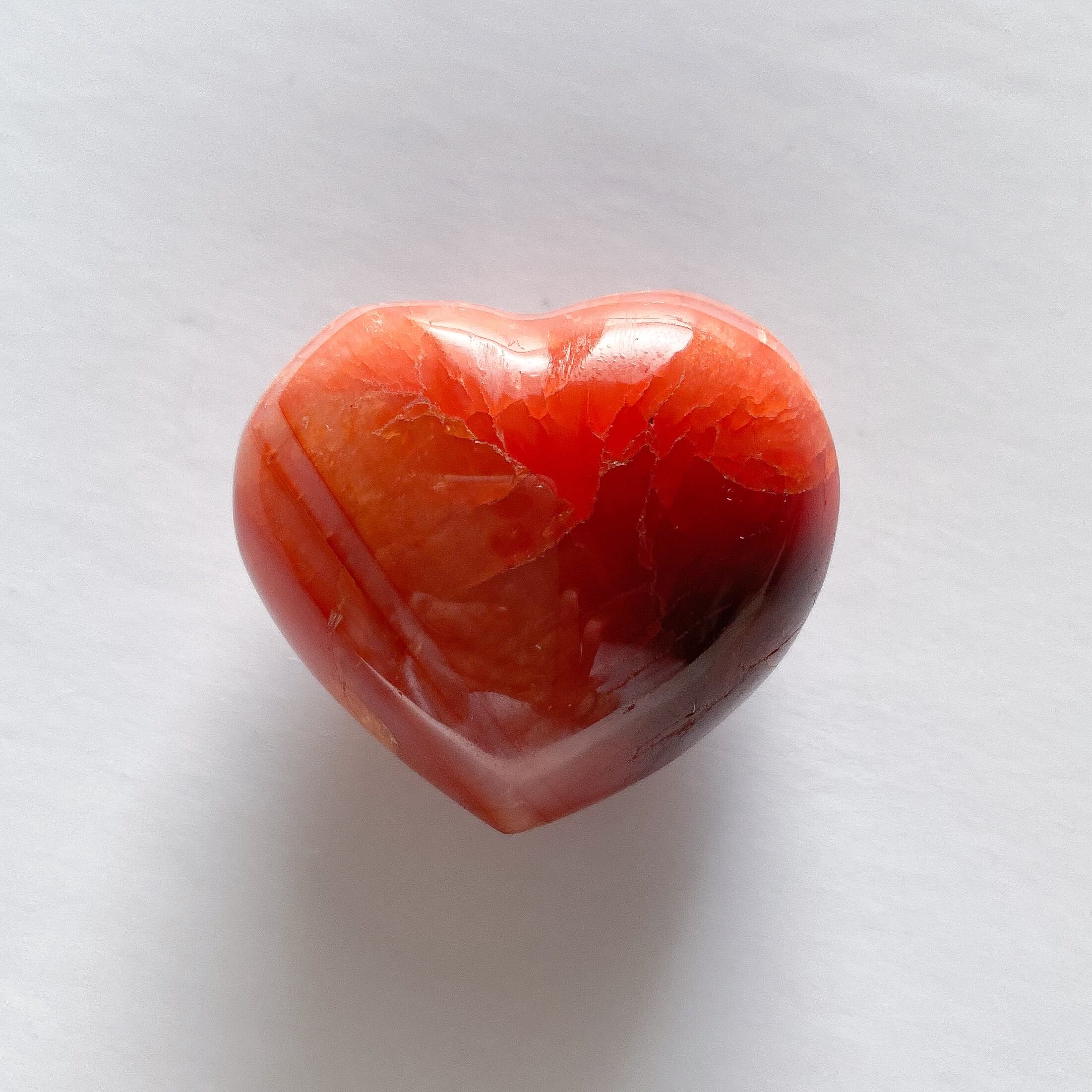 カーネリアンハートは両面鮮やかな赤色でこちらも側面に瑪瑙らしい縞模様が見えます。