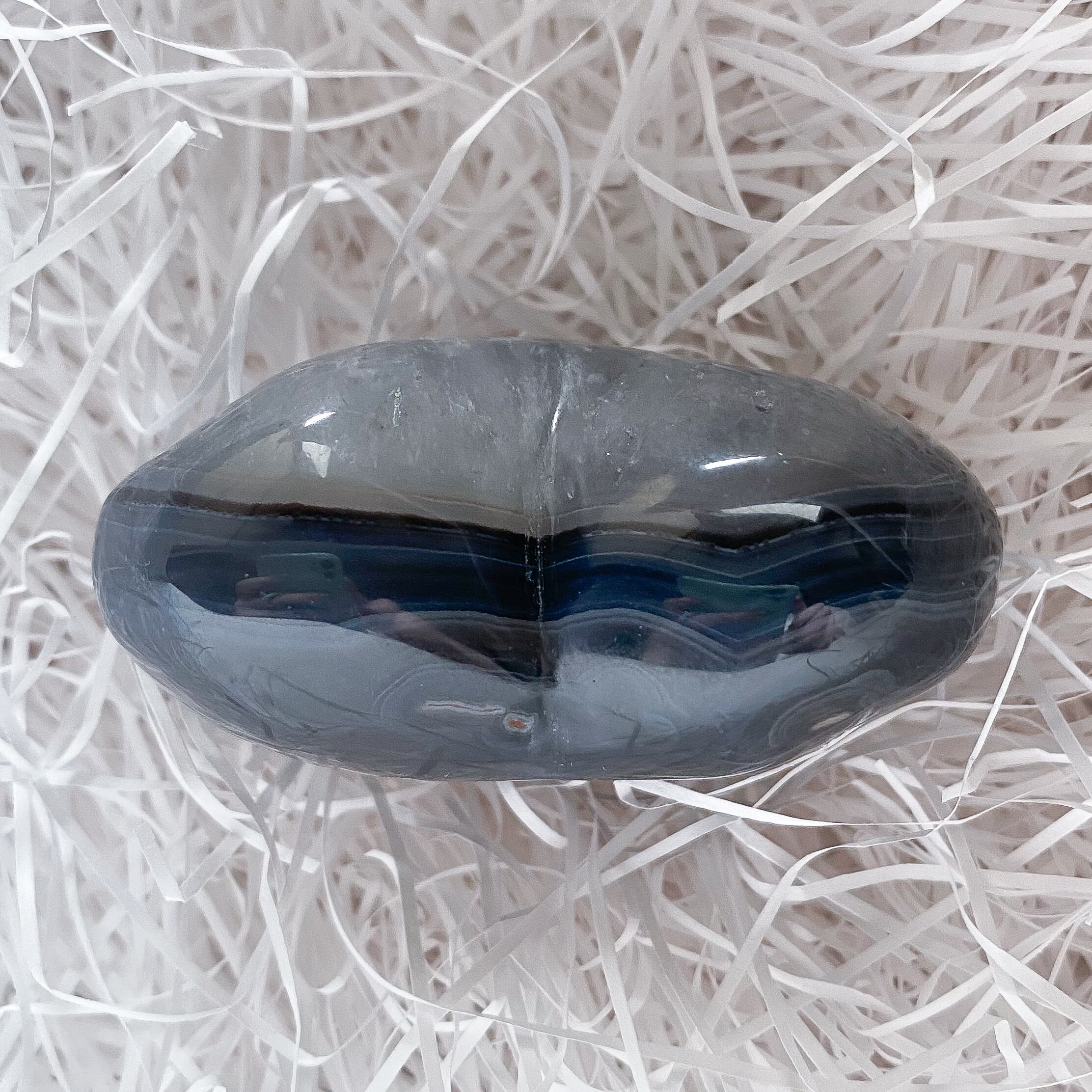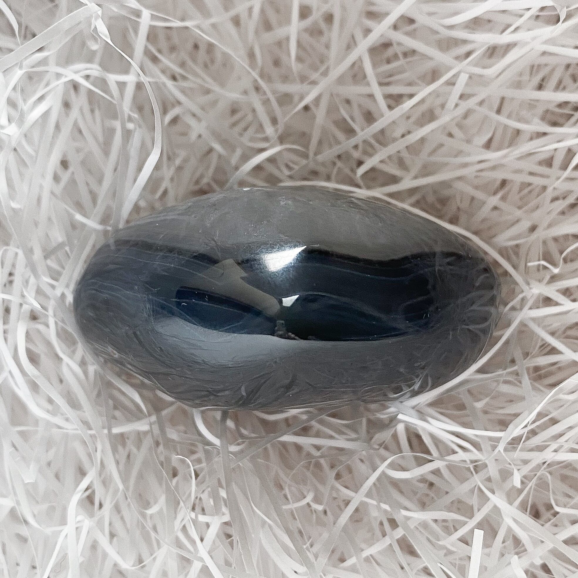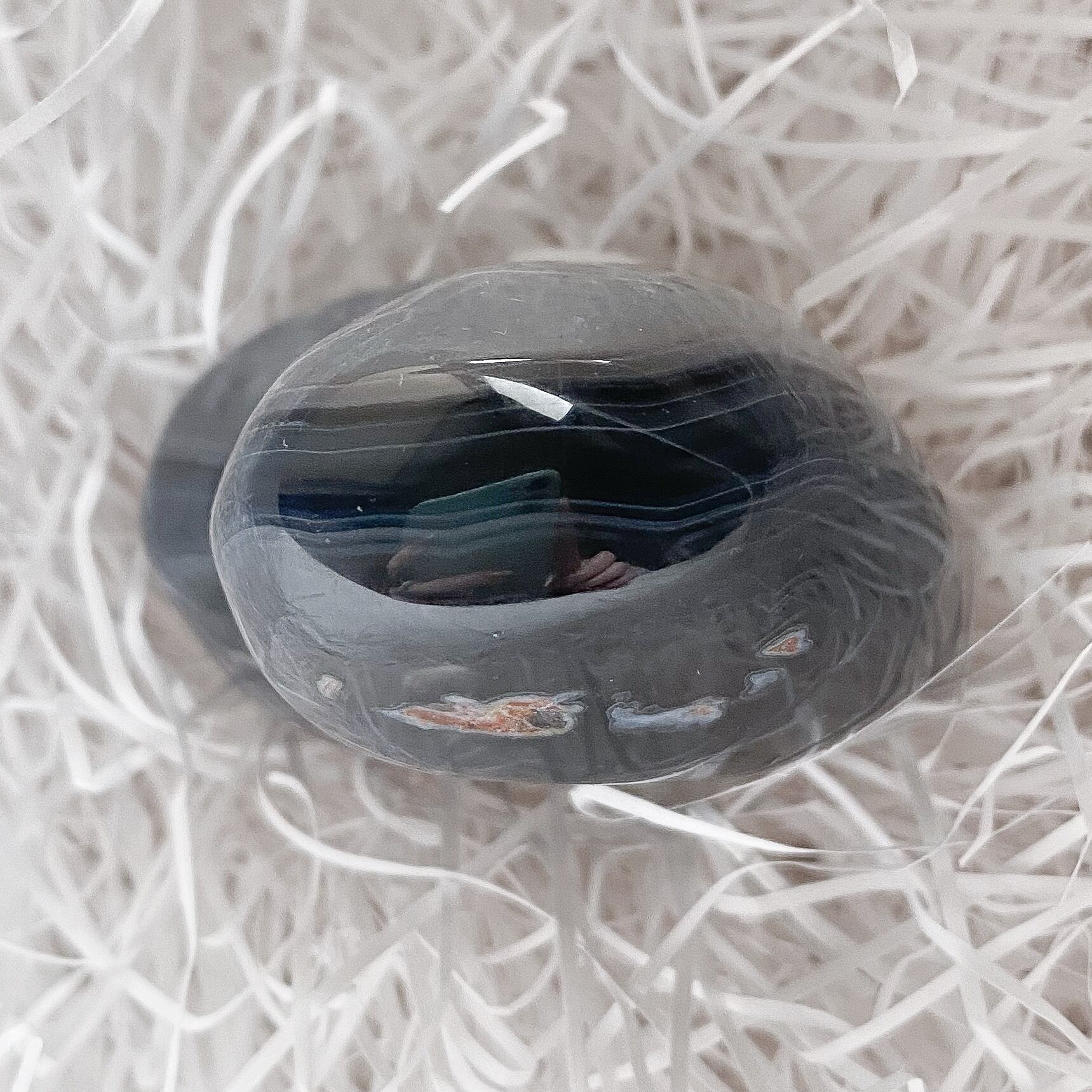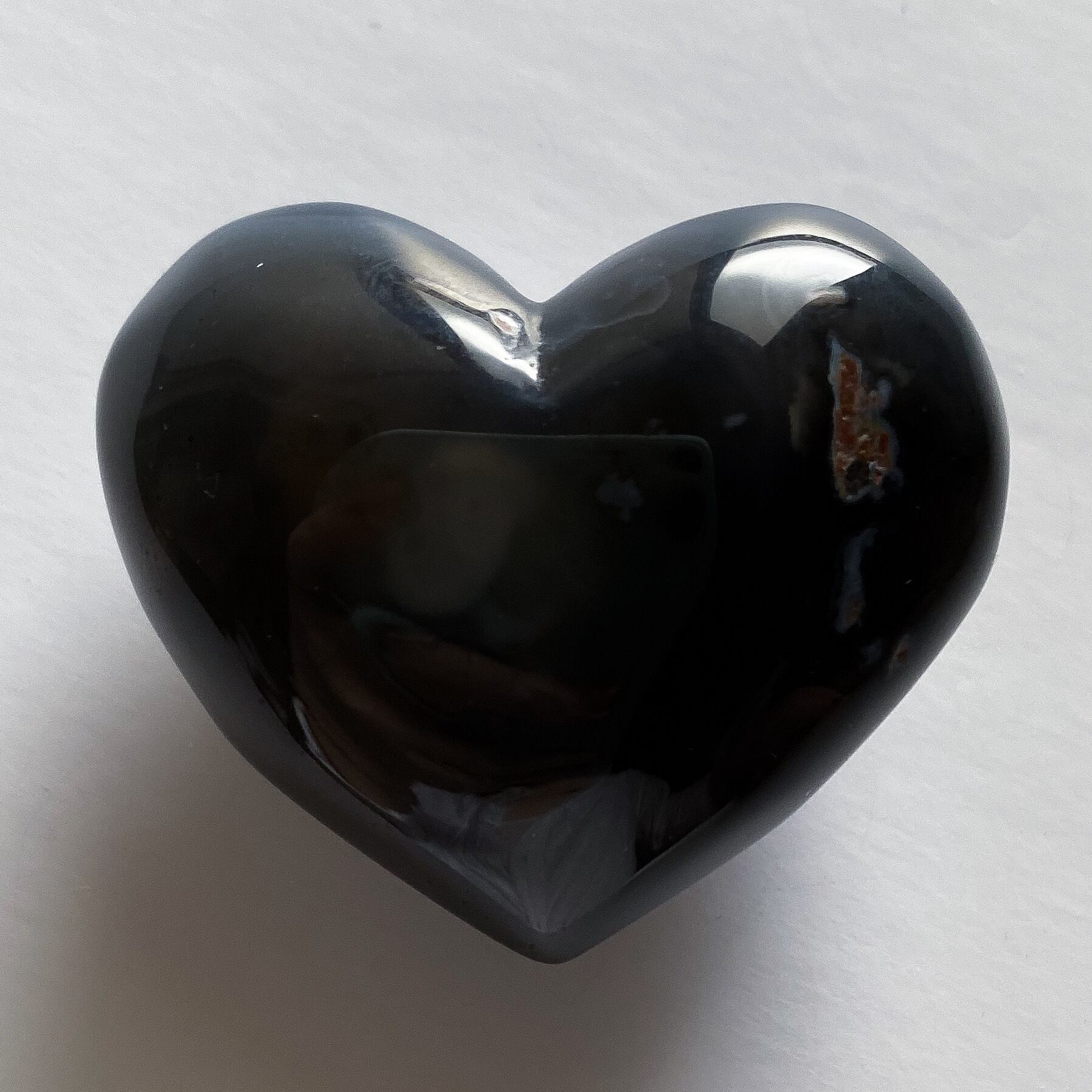オニキスハートの方はソフトなブラックカラーで正面は結晶化しています。側面に瑪瑙の縞模様も見られます。