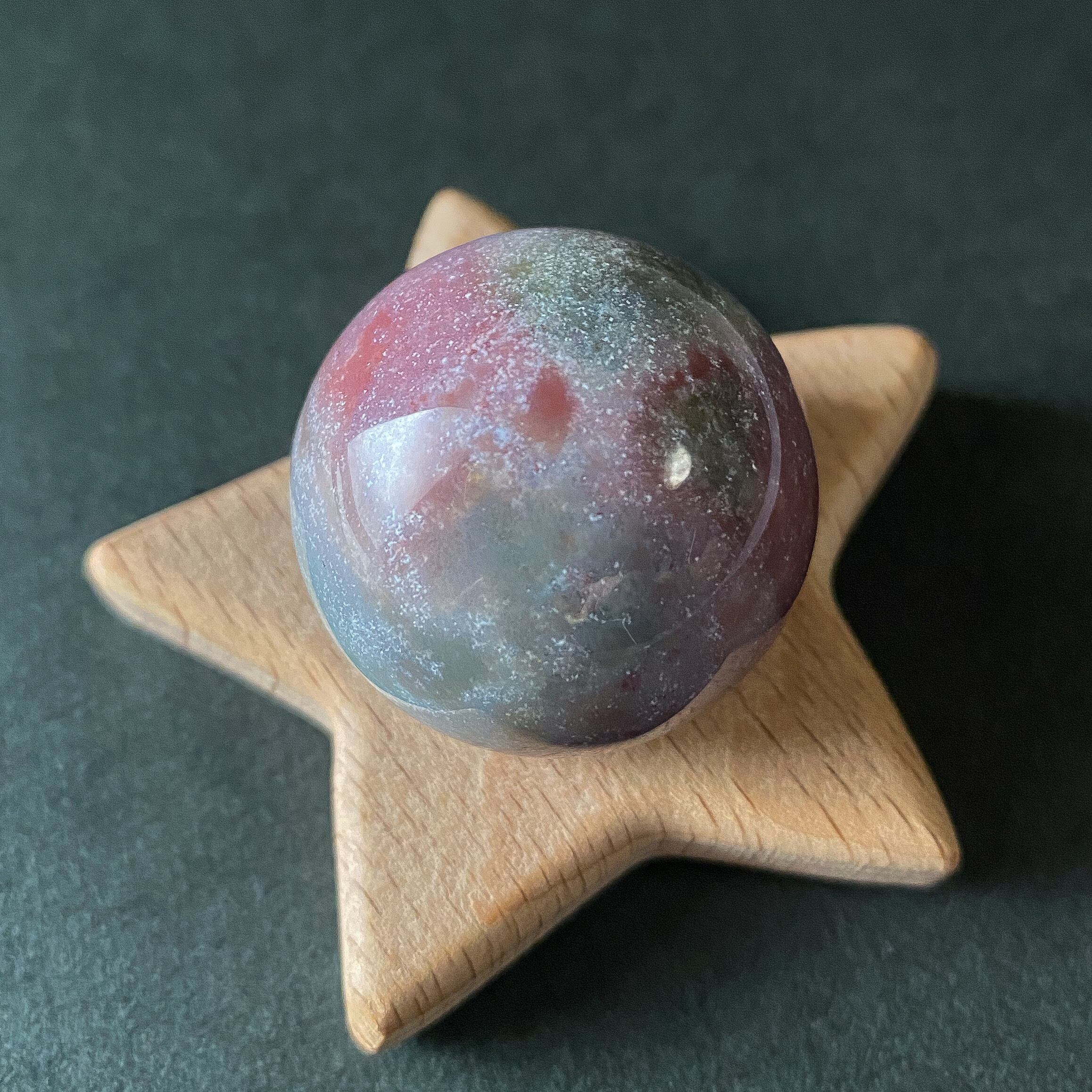 ミニサイズのオーシャンジャスパースフィアと星型のスフィアスタンドのセットです。