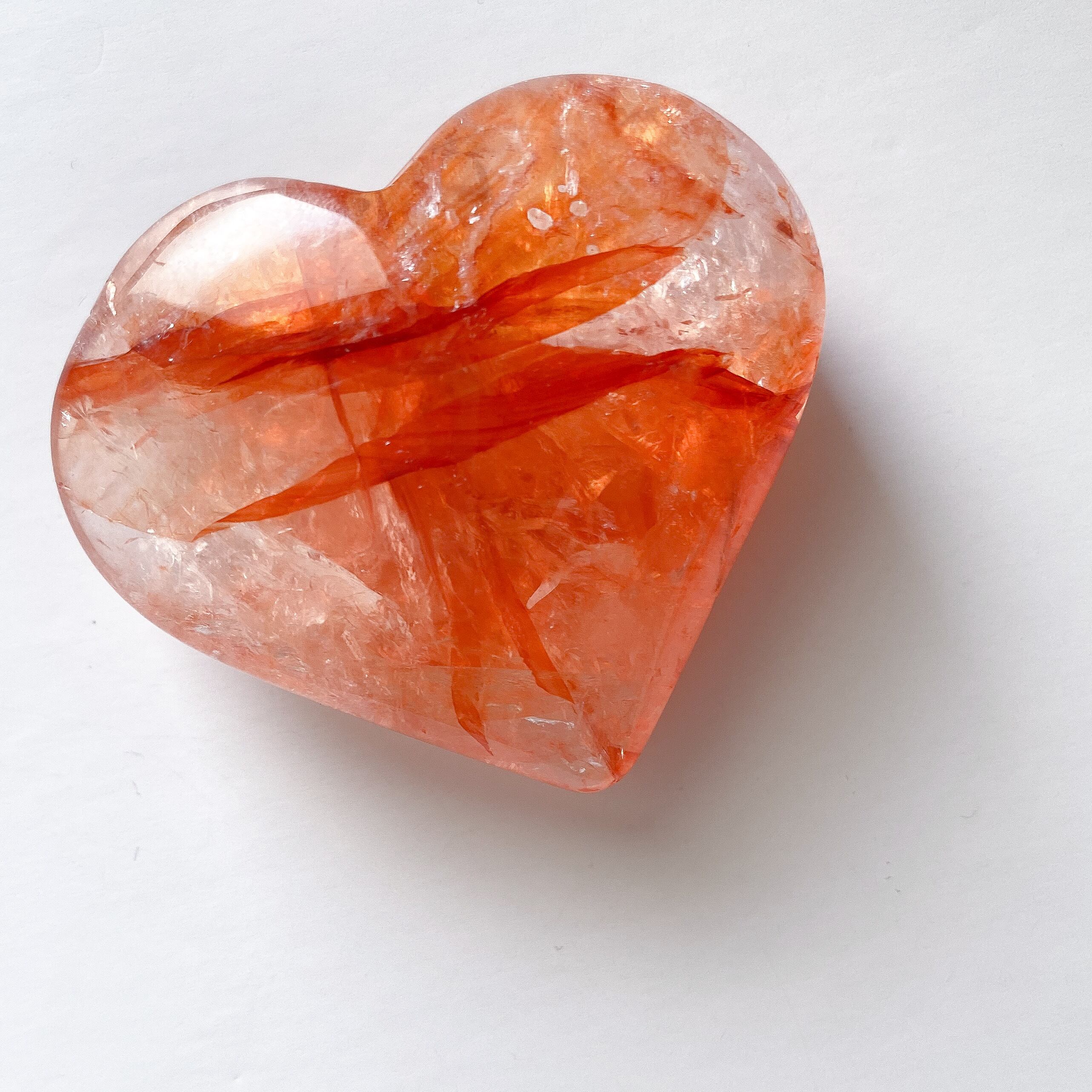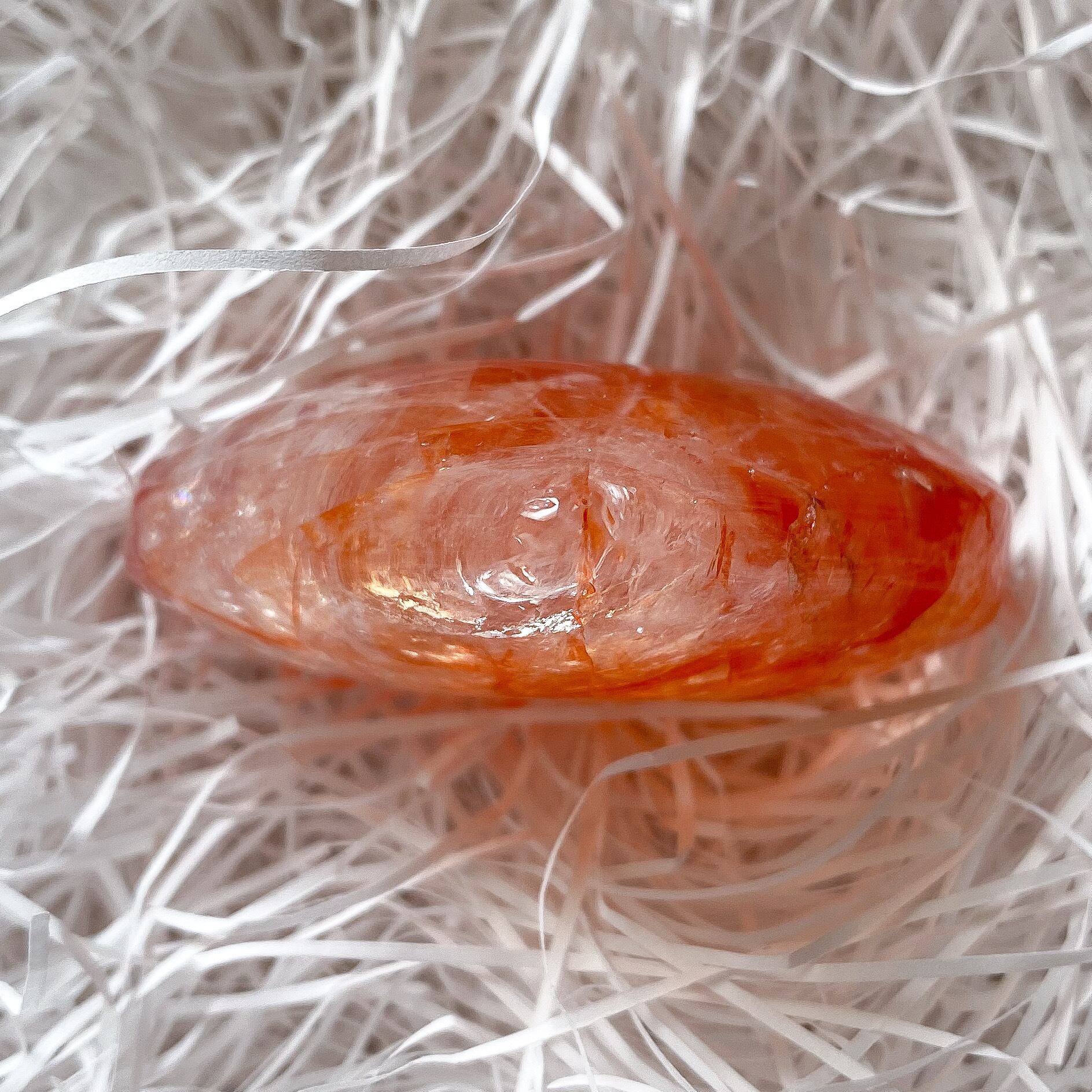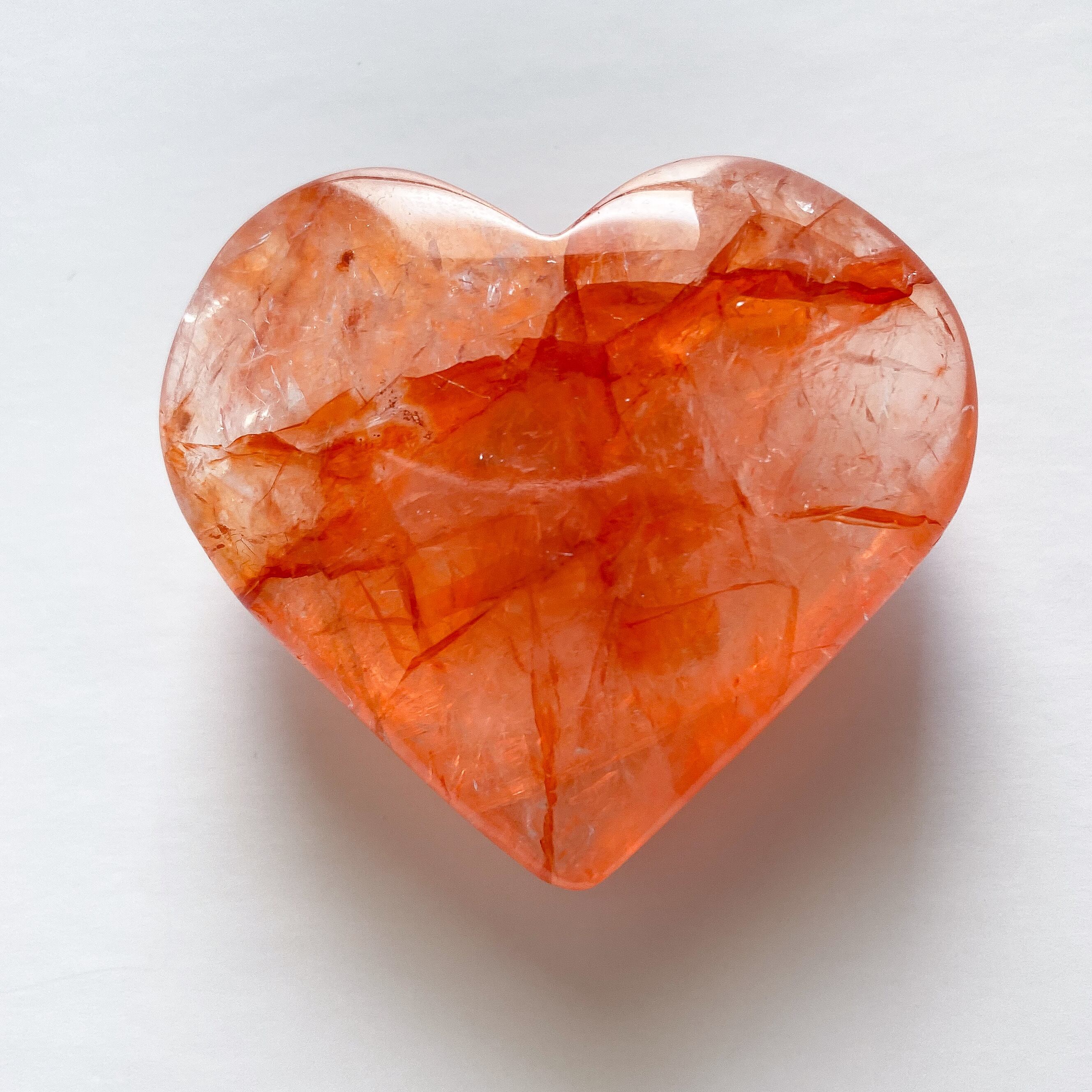 赤色のハートは定番ではありますが、明るいレッドカラーを見ているとこちらも元気になれそうな気がしてきます。ヘマタイトインクォーツは血流を良くする作用があるそうです。生命力に溢れる色をしたハートシェイプだと思います。
