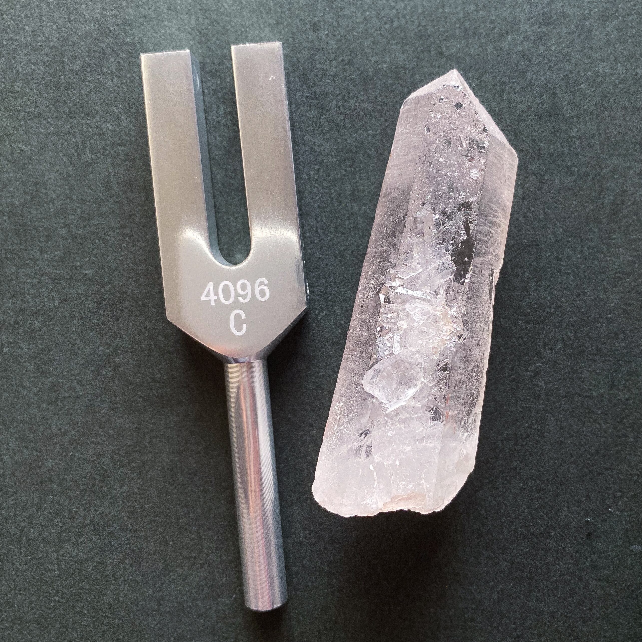 天使の周波数と言われる4096Hzのクリスタルチューナーと天然水晶ポイントのセットです。