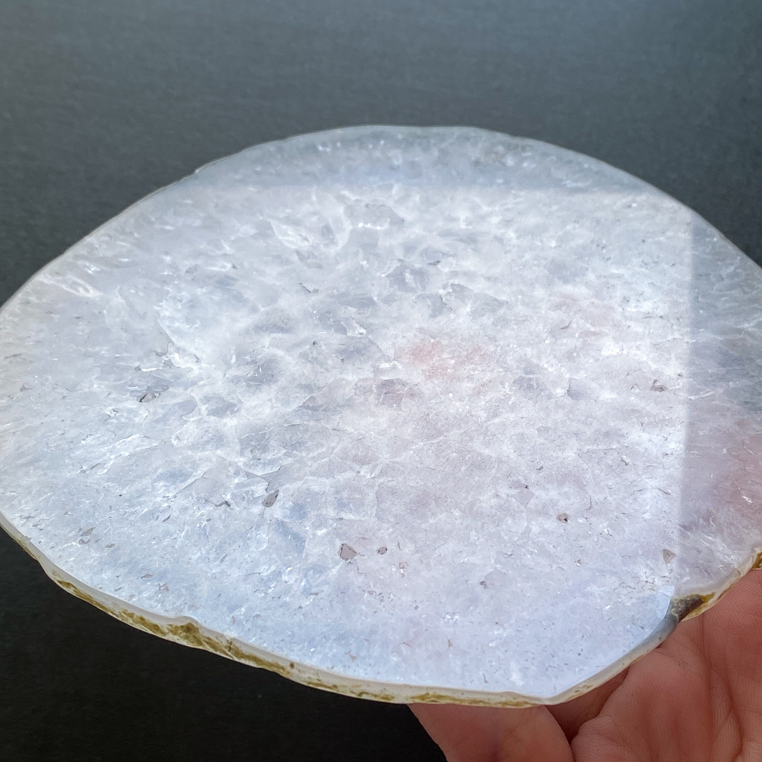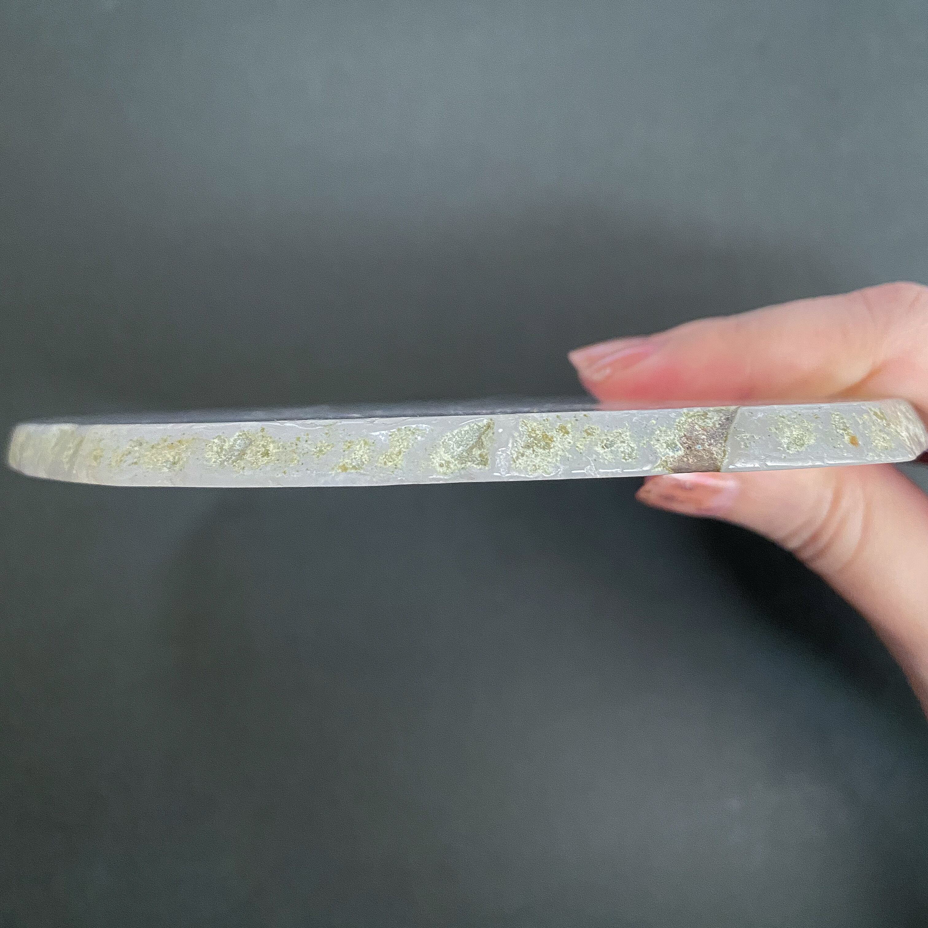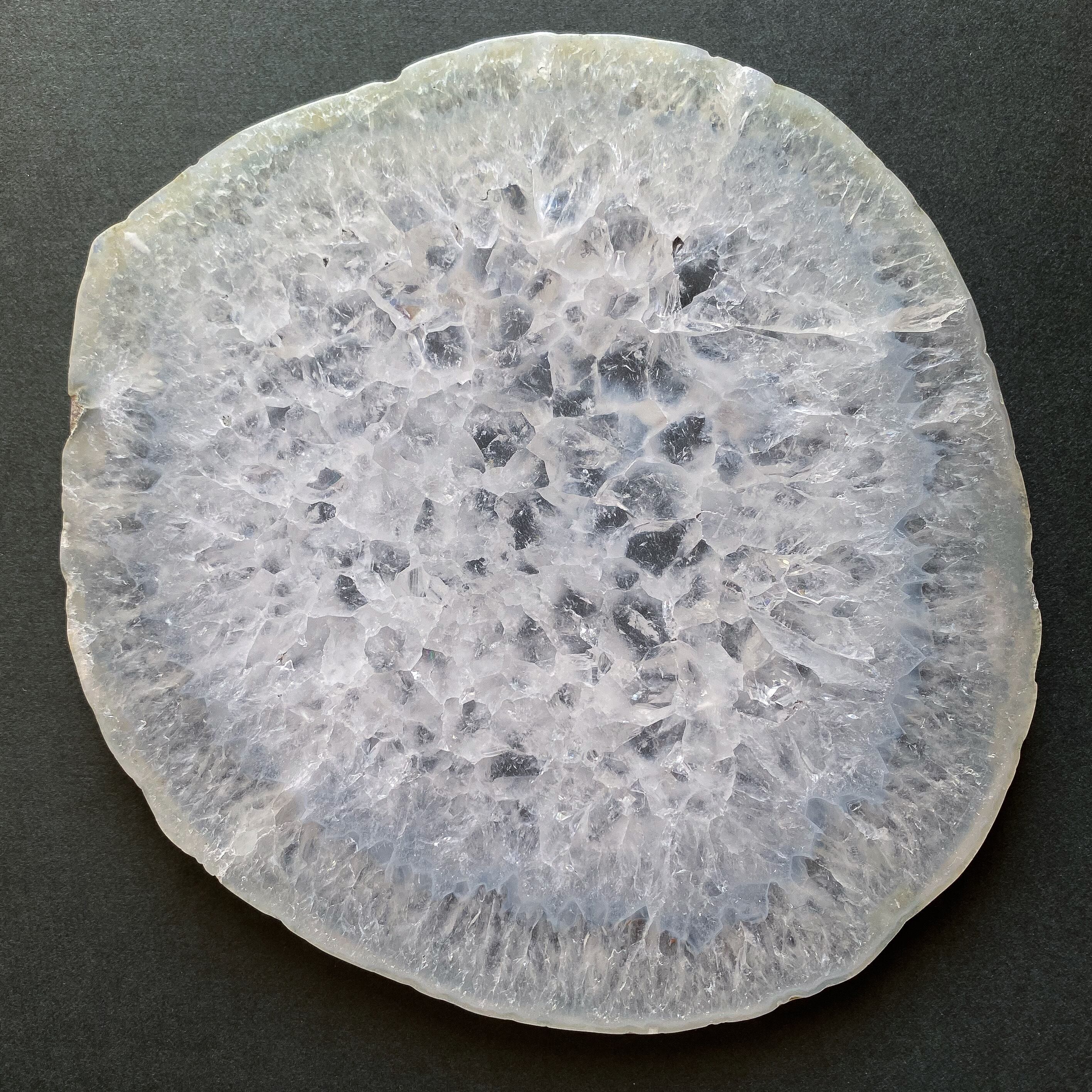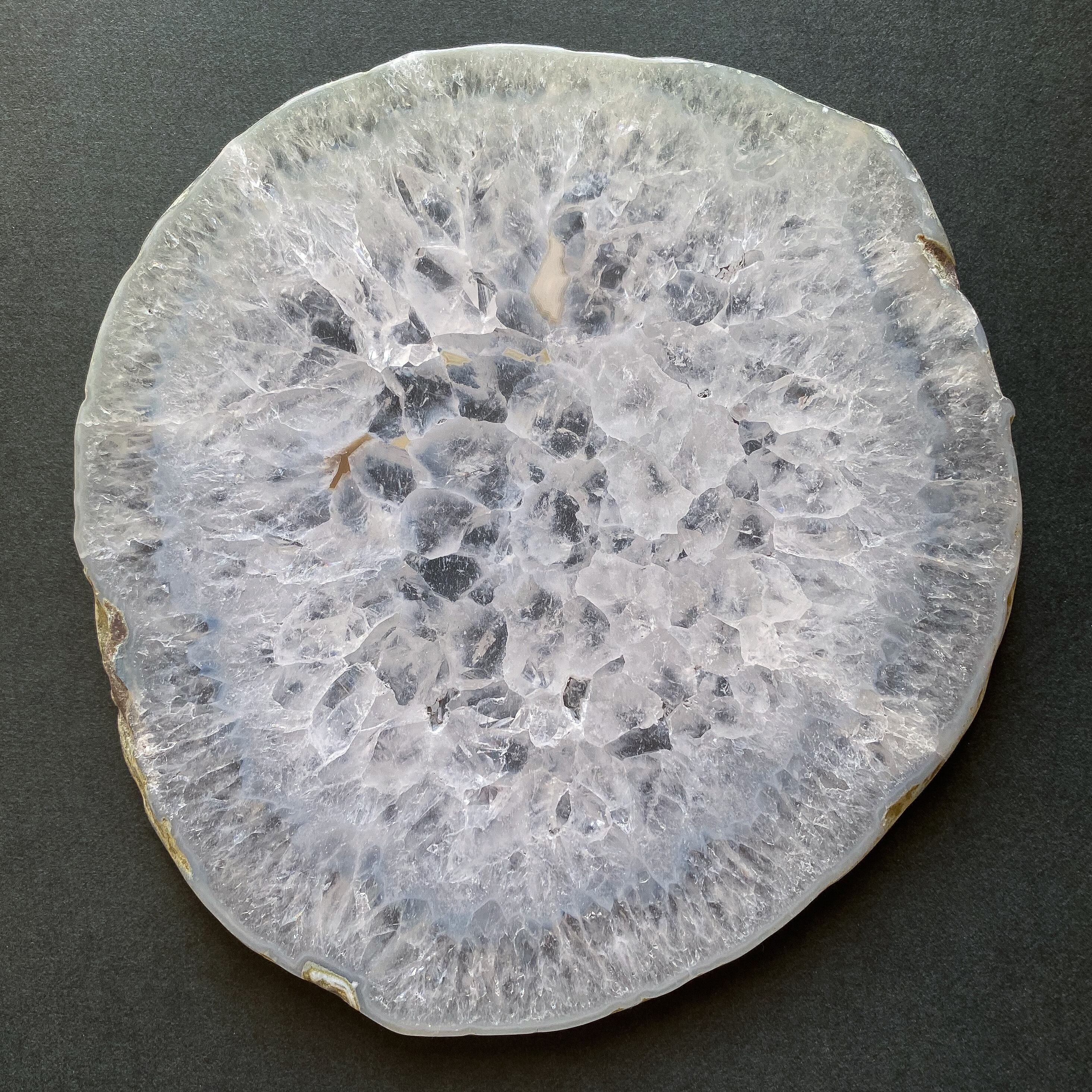 大きめのプレートですのでブレスレットの他、様々なものを乗せることが可能です。(※画像7枚目参照。ブレスレットは女性標準サイズで撮影用の新品未使用品です)結晶部分を薄くスライスしている故の結晶の凹みが断面に見られます。