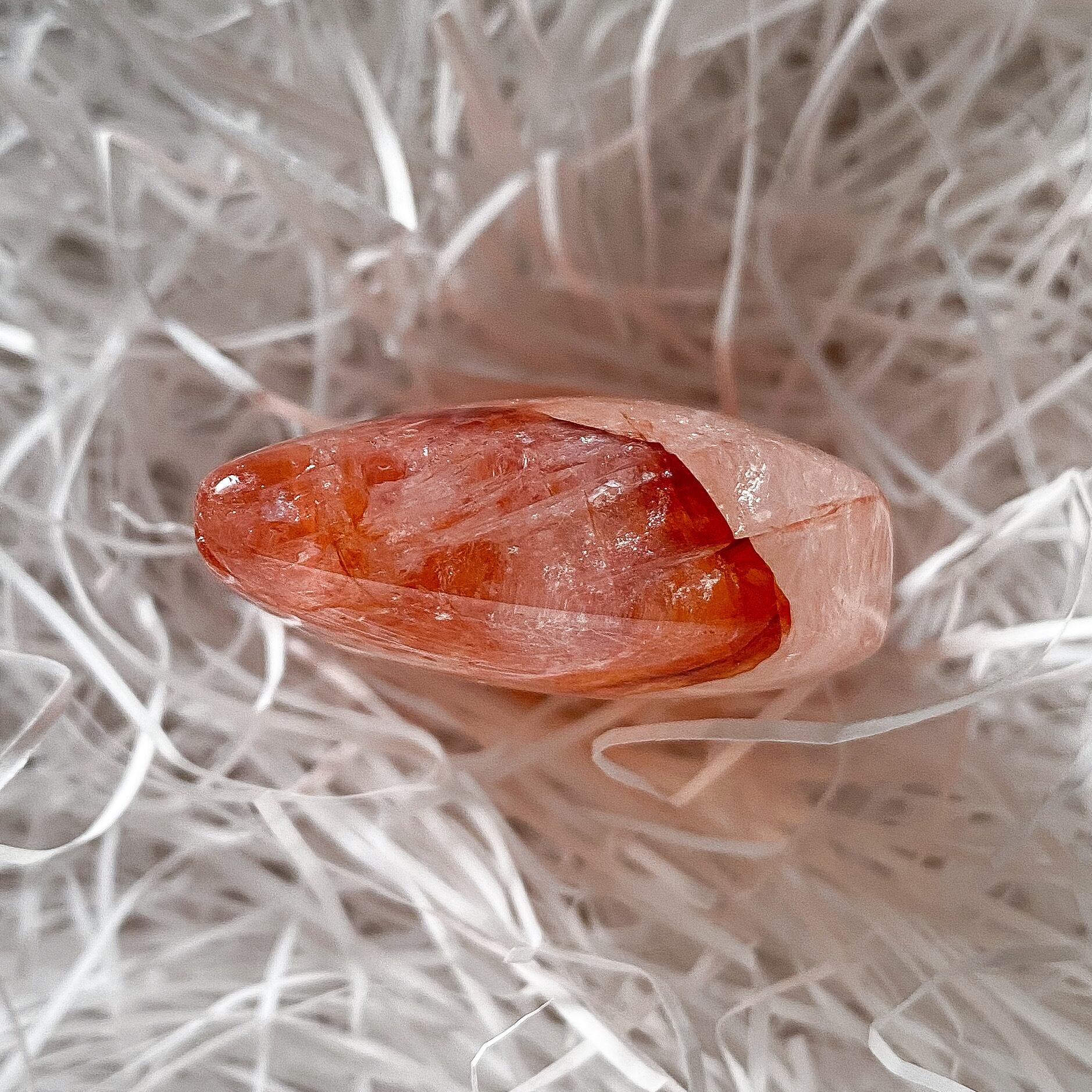 内包されているヘマタイトは綺麗な赤色で水晶の中で炎が燃えているかのようです。
