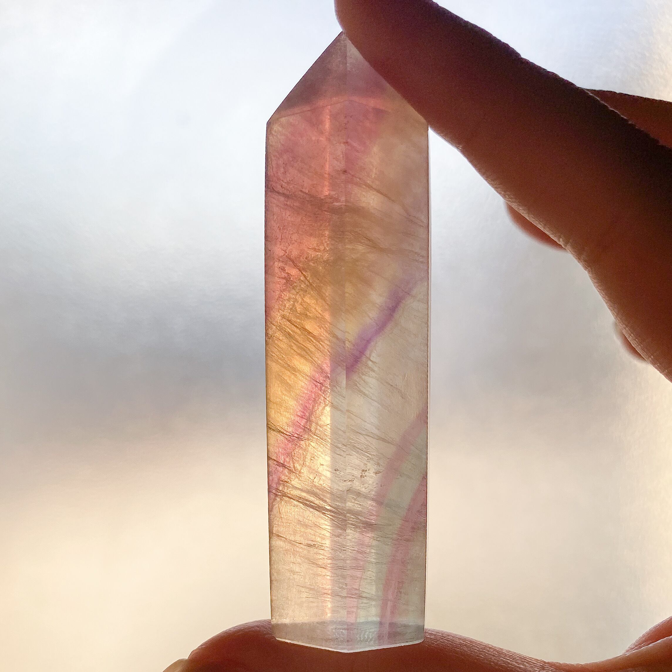 透明感と柔らかな色合いのレインボーフローライト のタワーです。