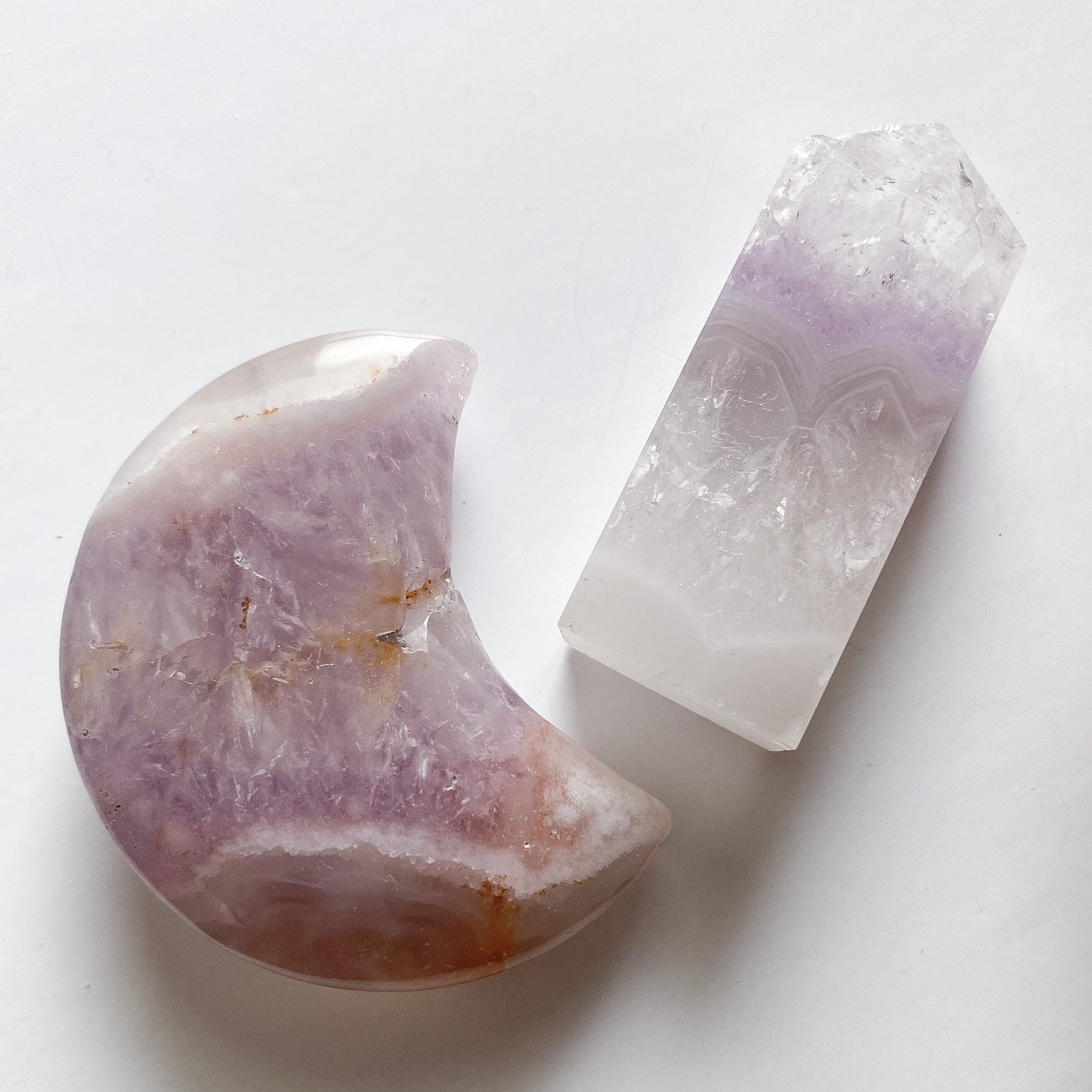瑪瑙にアメジスト結晶が共生しているミニタワーとお月様のセットです。