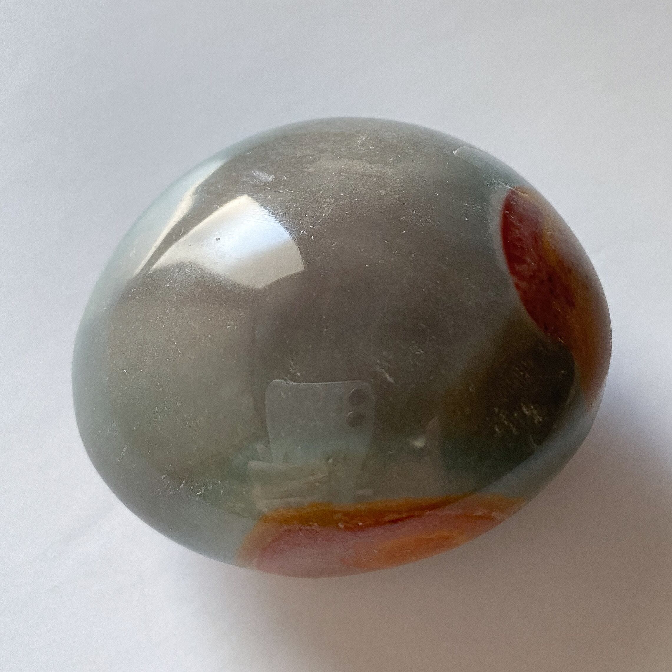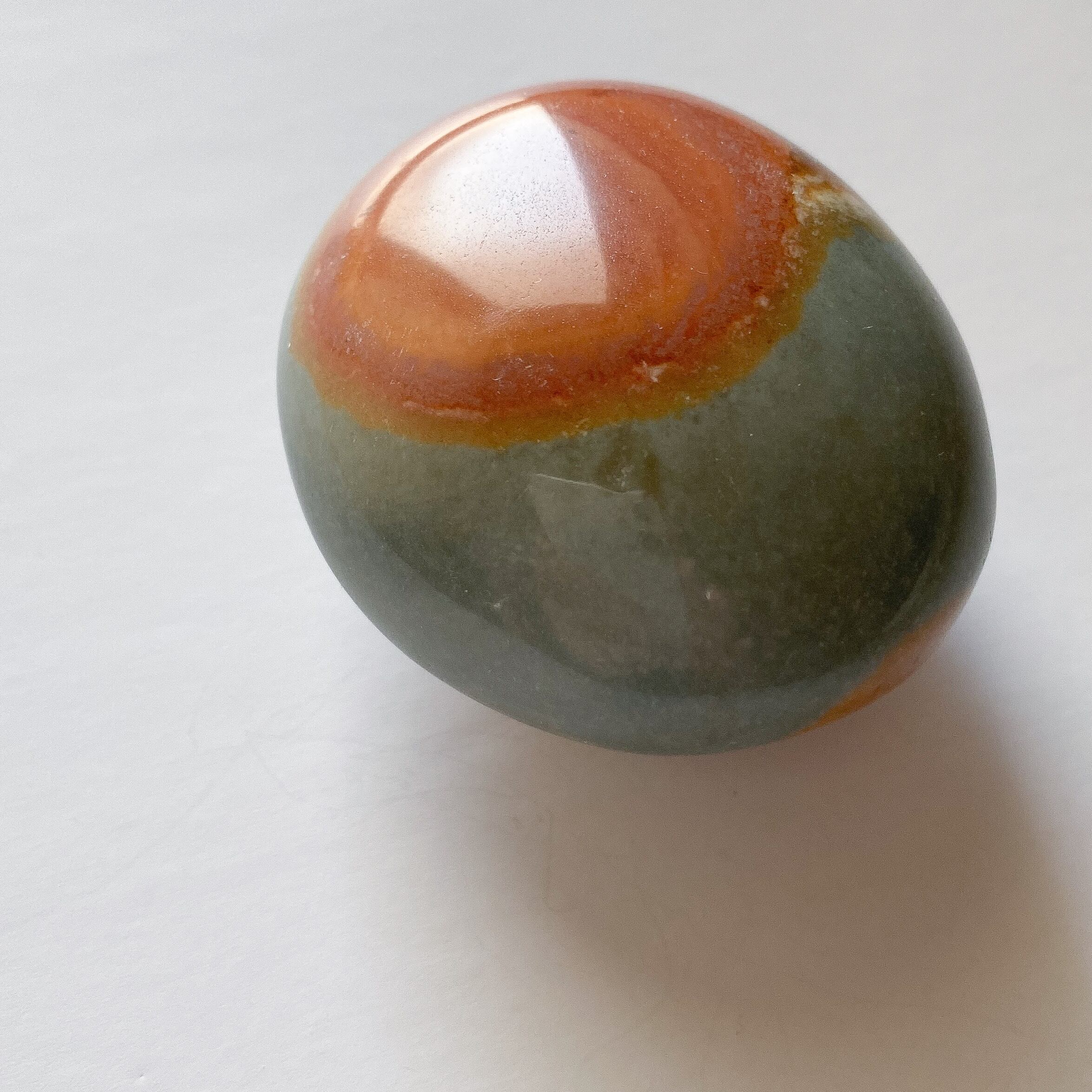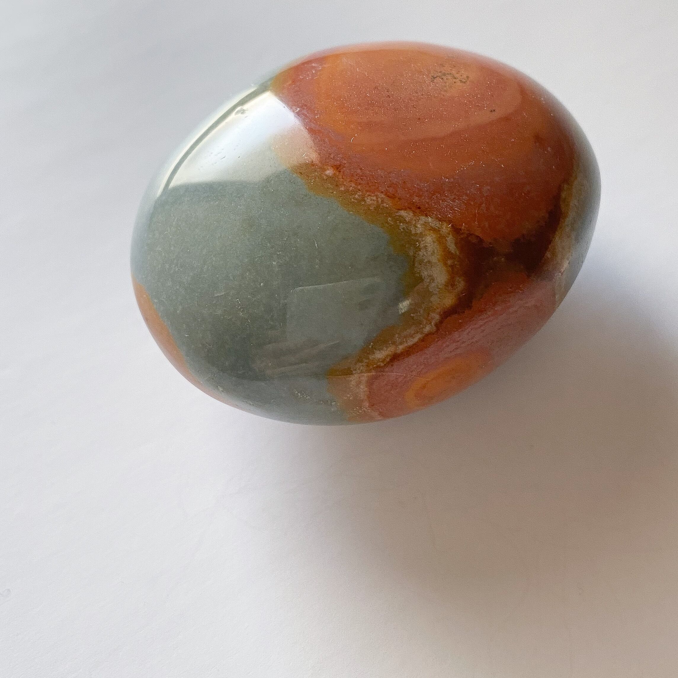 インテリアの片隅にあっても目を惹く色合いですが、パームストーンですので携帯されるのにも向いています。天然色のカラフルな色合いがふとした時に気持ちを持ち上げてくれるのではないかと思います。