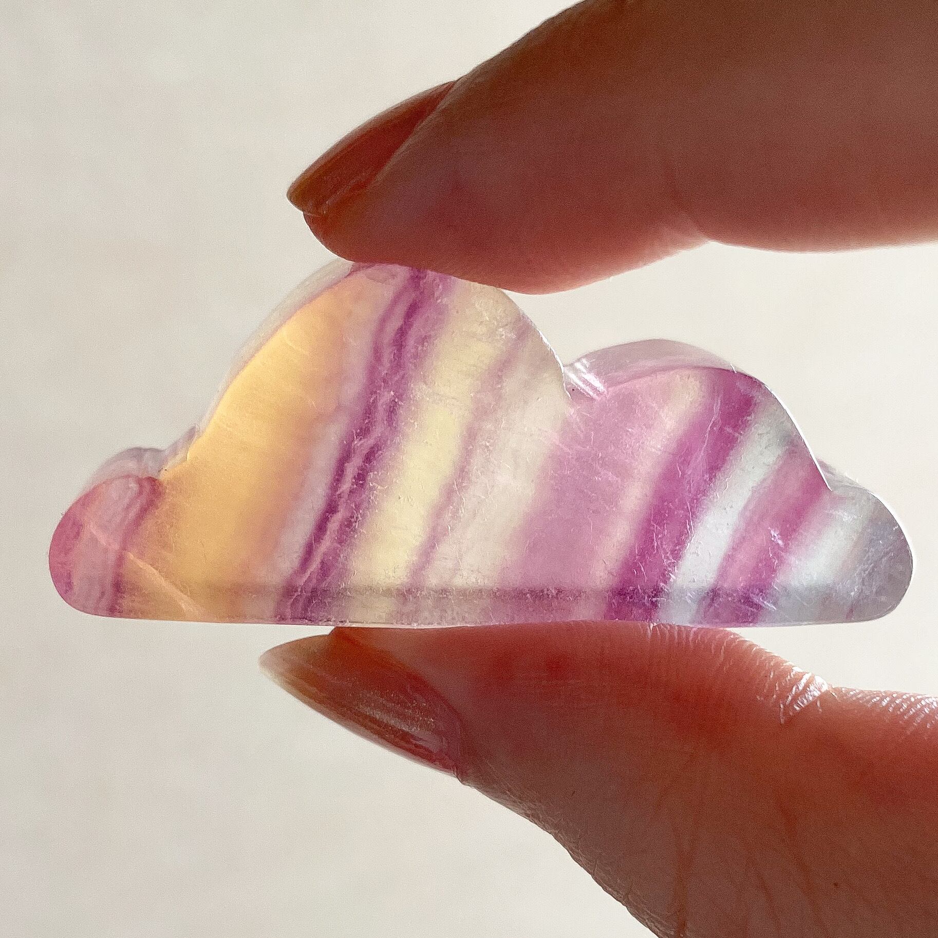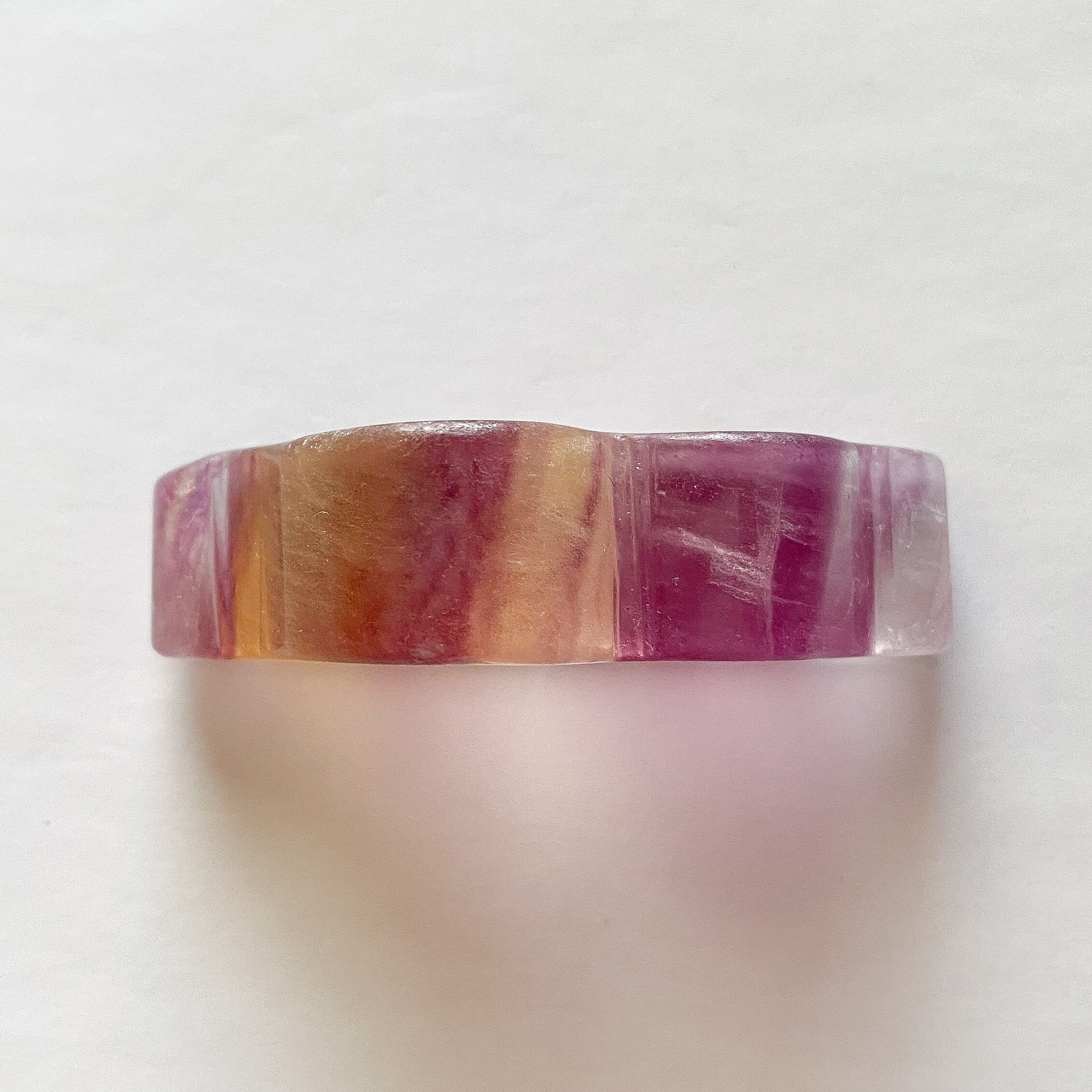 全体的にマットでふわっとした印象の仕上がりです。フローライトの色味の移り変わりや柄などを目で楽しんで頂けるものを選んでみました。
