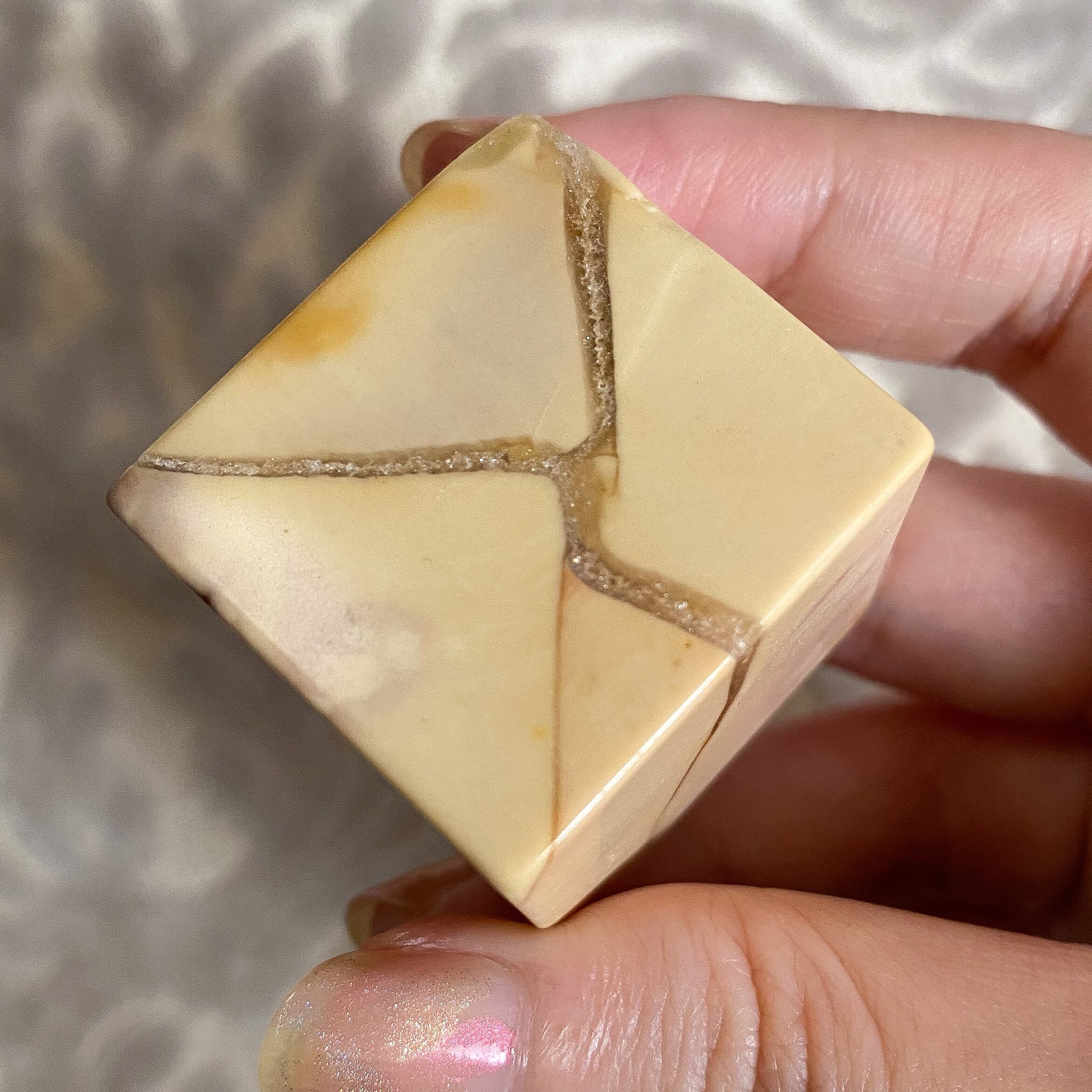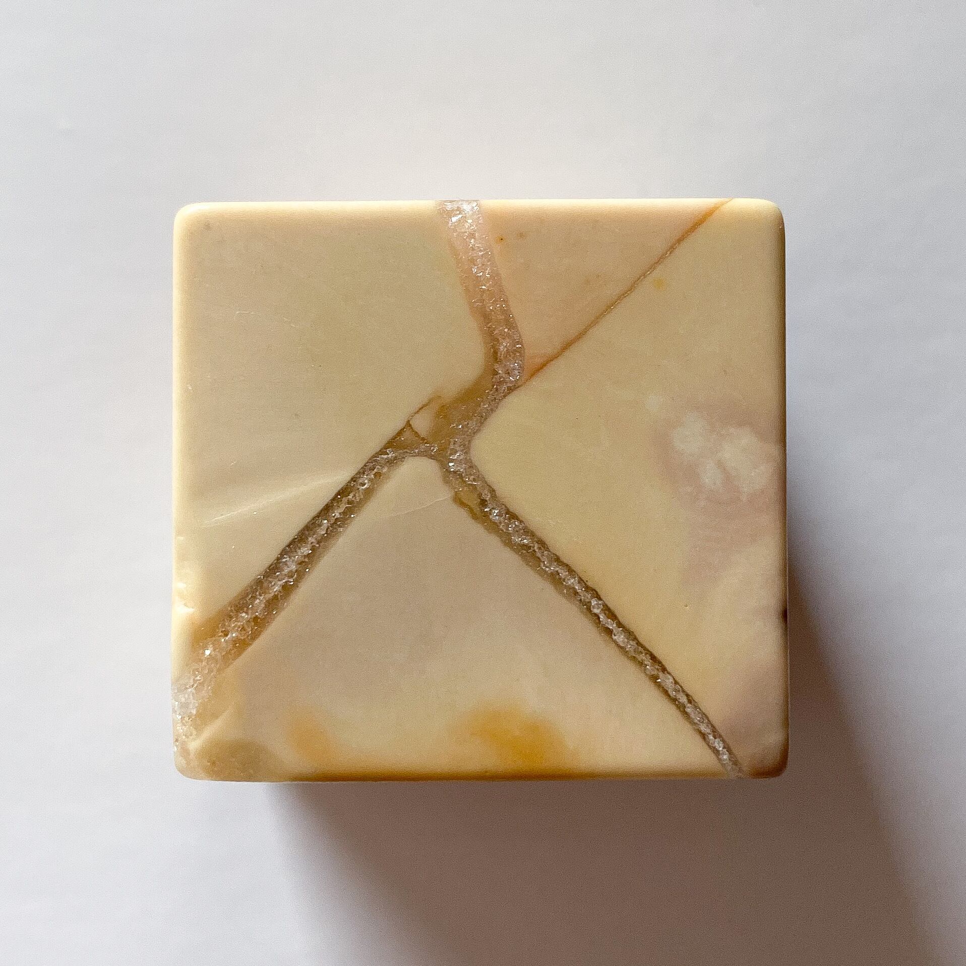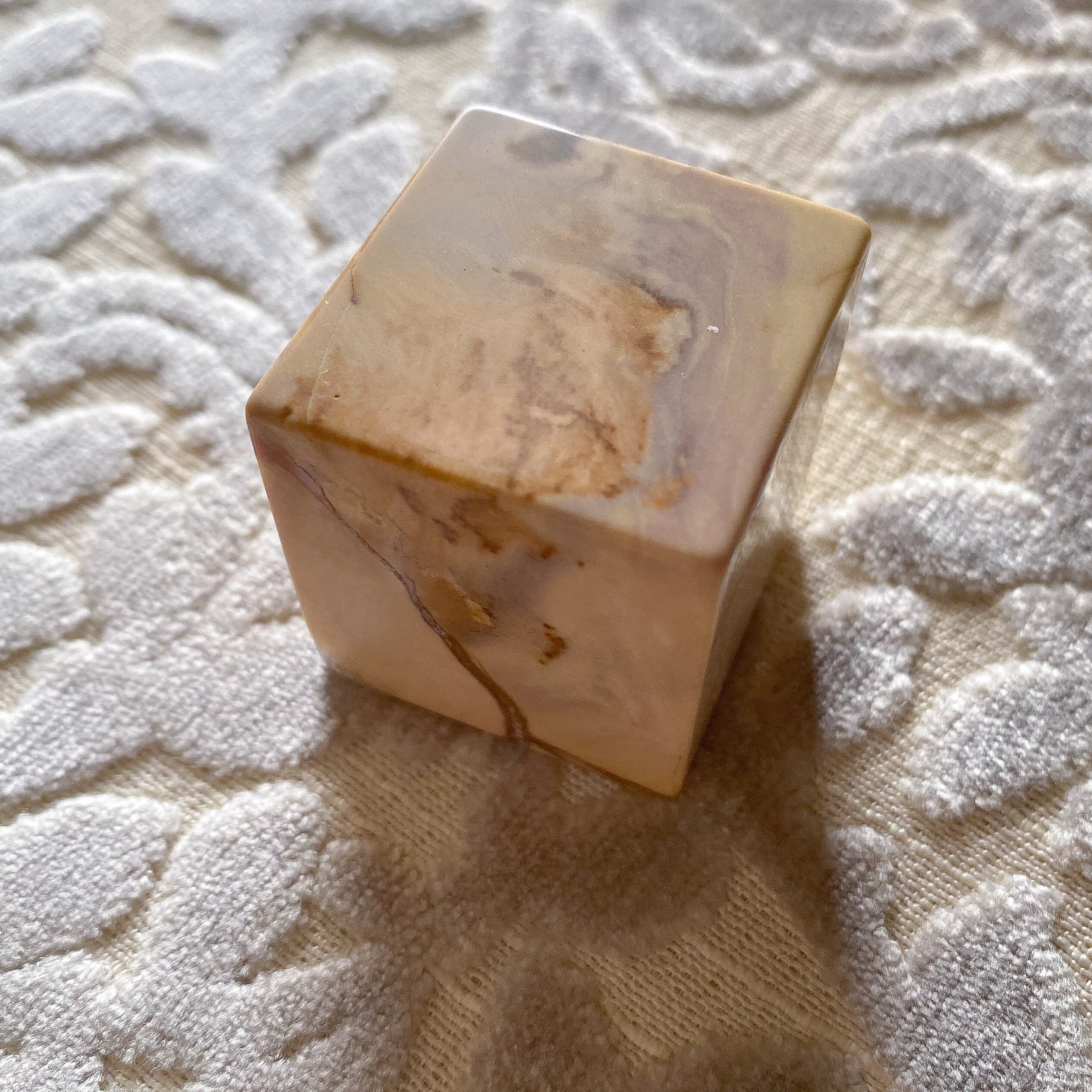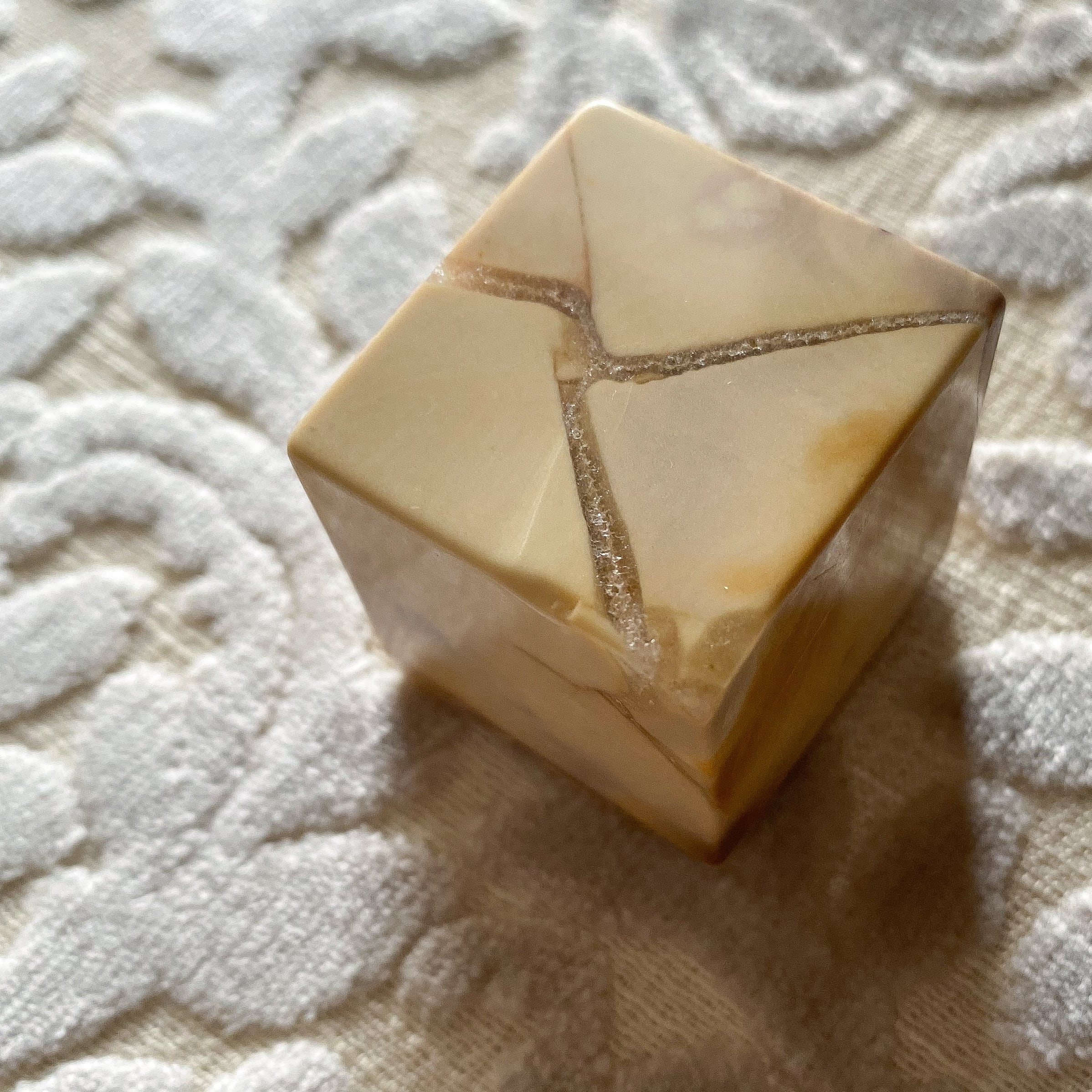 明るい色合いのアイビスジャスパーのキューブです。淡いクリーム色〜イエロー、ブラウンなどの色が混じり合っています。