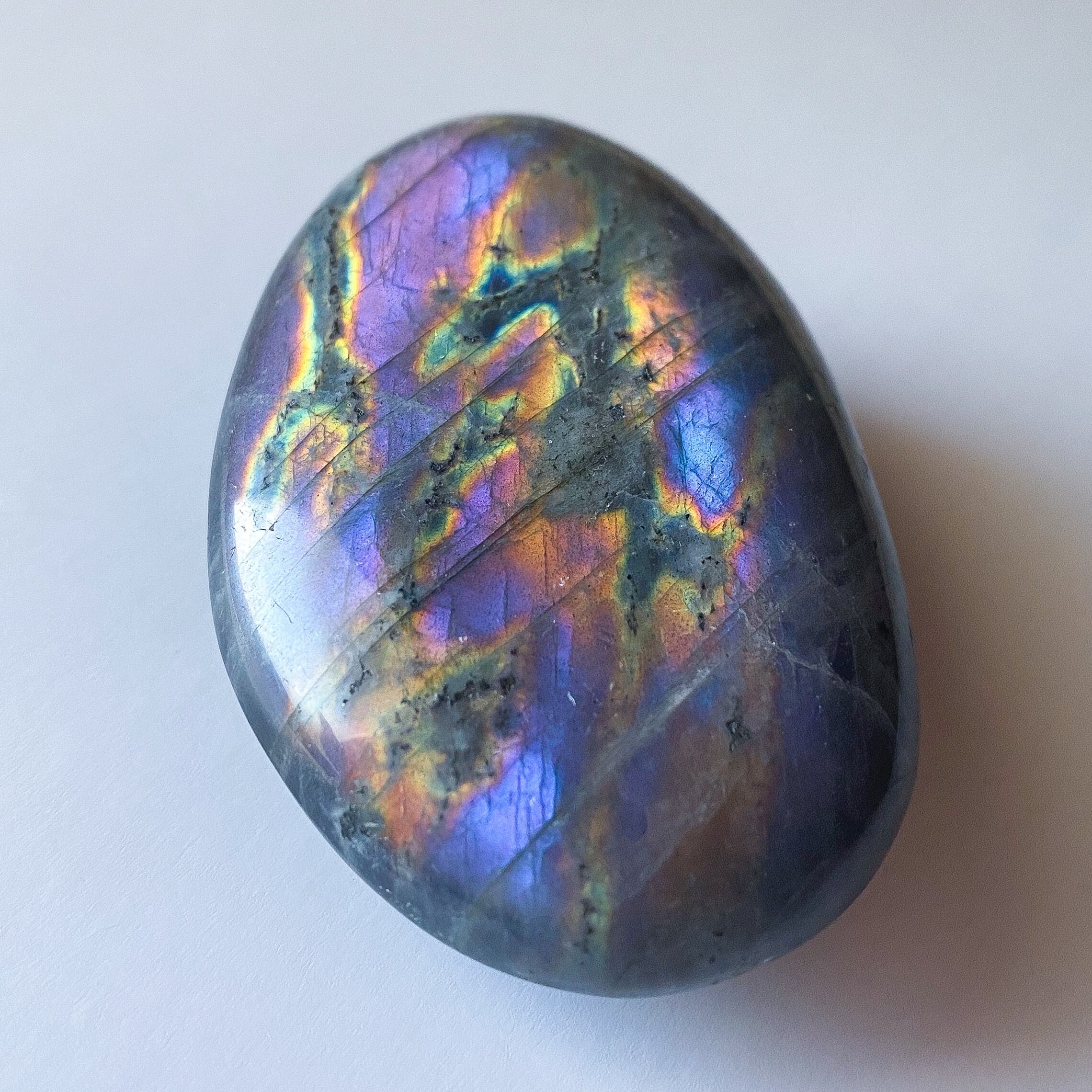 パープルシラーに稲妻 ラブラドライト パームストーン