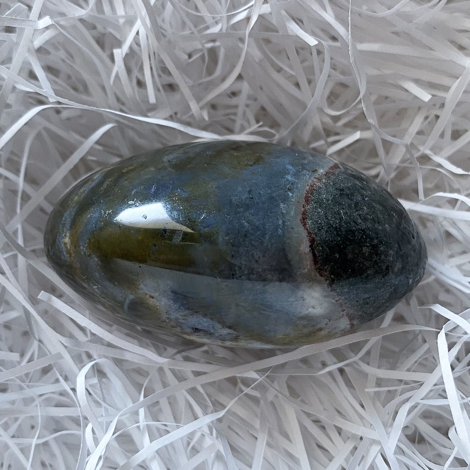 碧玉の一種でマダガスカルの海岸の一部または内陸の一部で産出されます。産出地、産出量が限られているので希少な鉱物の1つです。成長過程で火山のマグマの影響を受け、熱で出来た空洞の中に様々な別の鉱物を取り込みながら成長するので色合いや模様等外観にそれぞれ個性が見られます。マグマによって形成されながらも海岸で採掘されるという個性的な過程を経ている鉱物です。