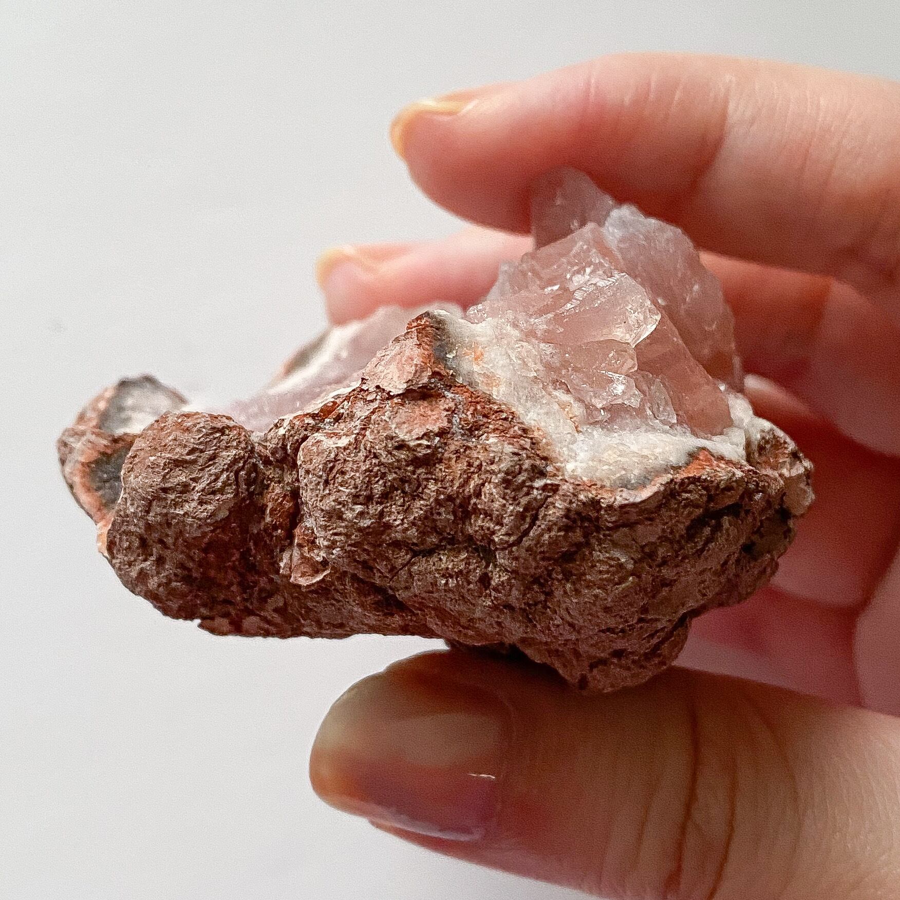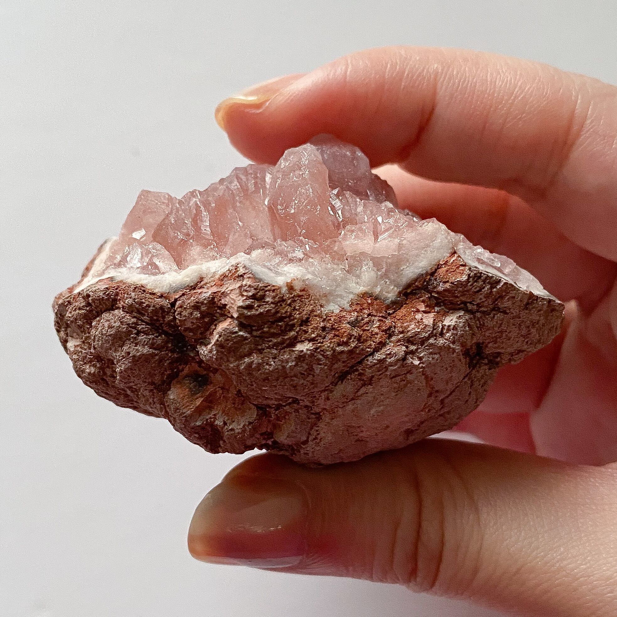 母岩もほんのりピンクに色付いており、コロンとした形状です。
