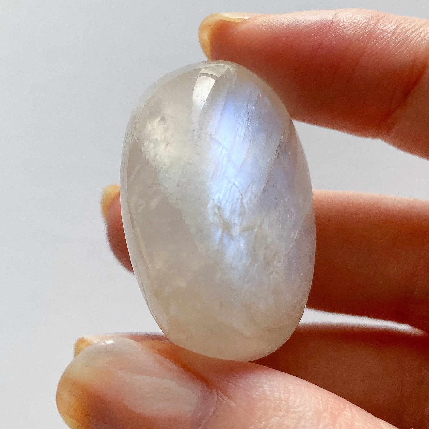 ムーンストーンはやや透明感があり側面近くにブルーシラーが浮かび上がるように出ます。