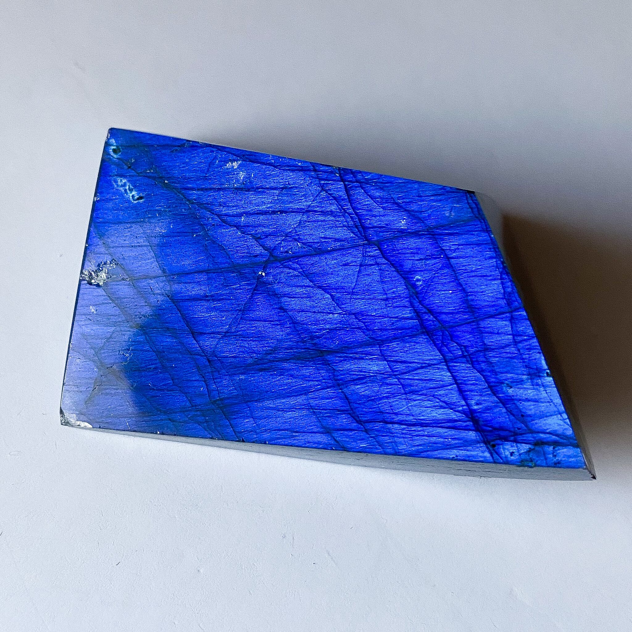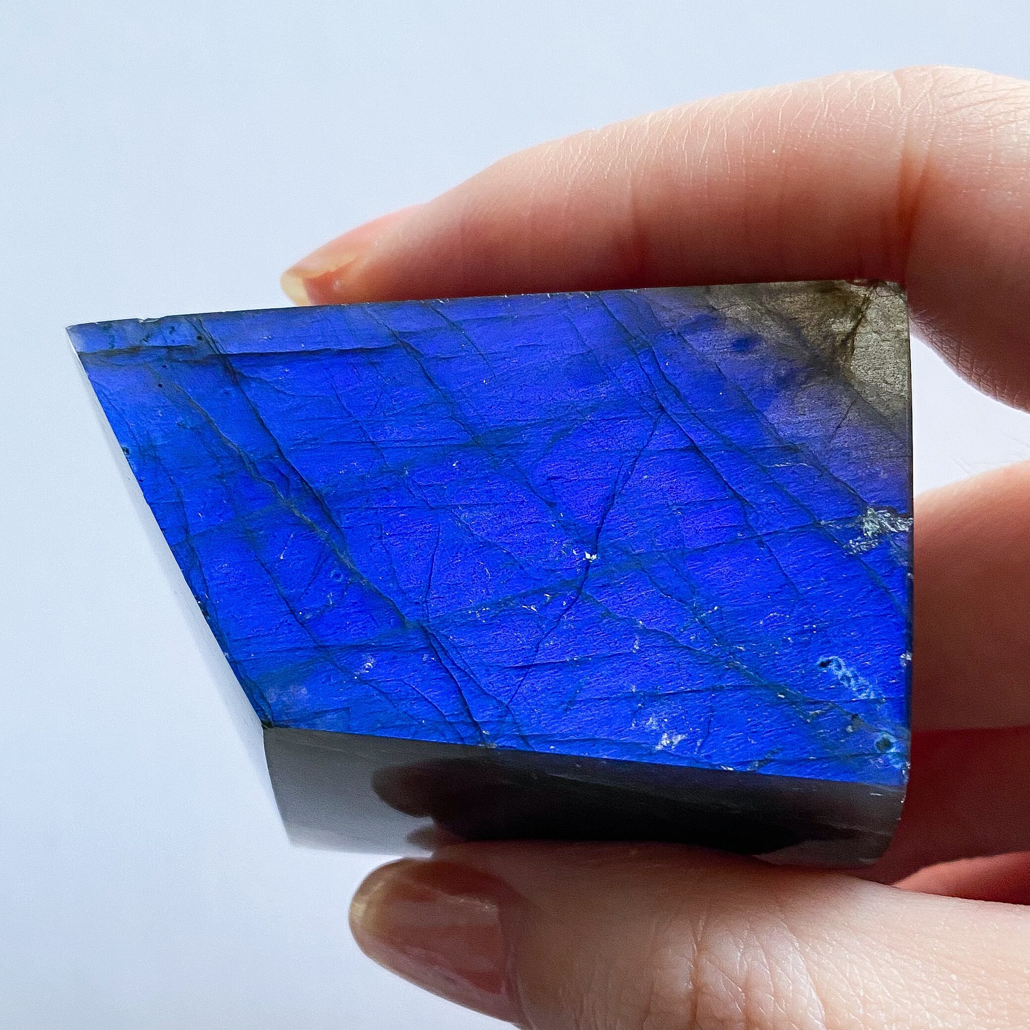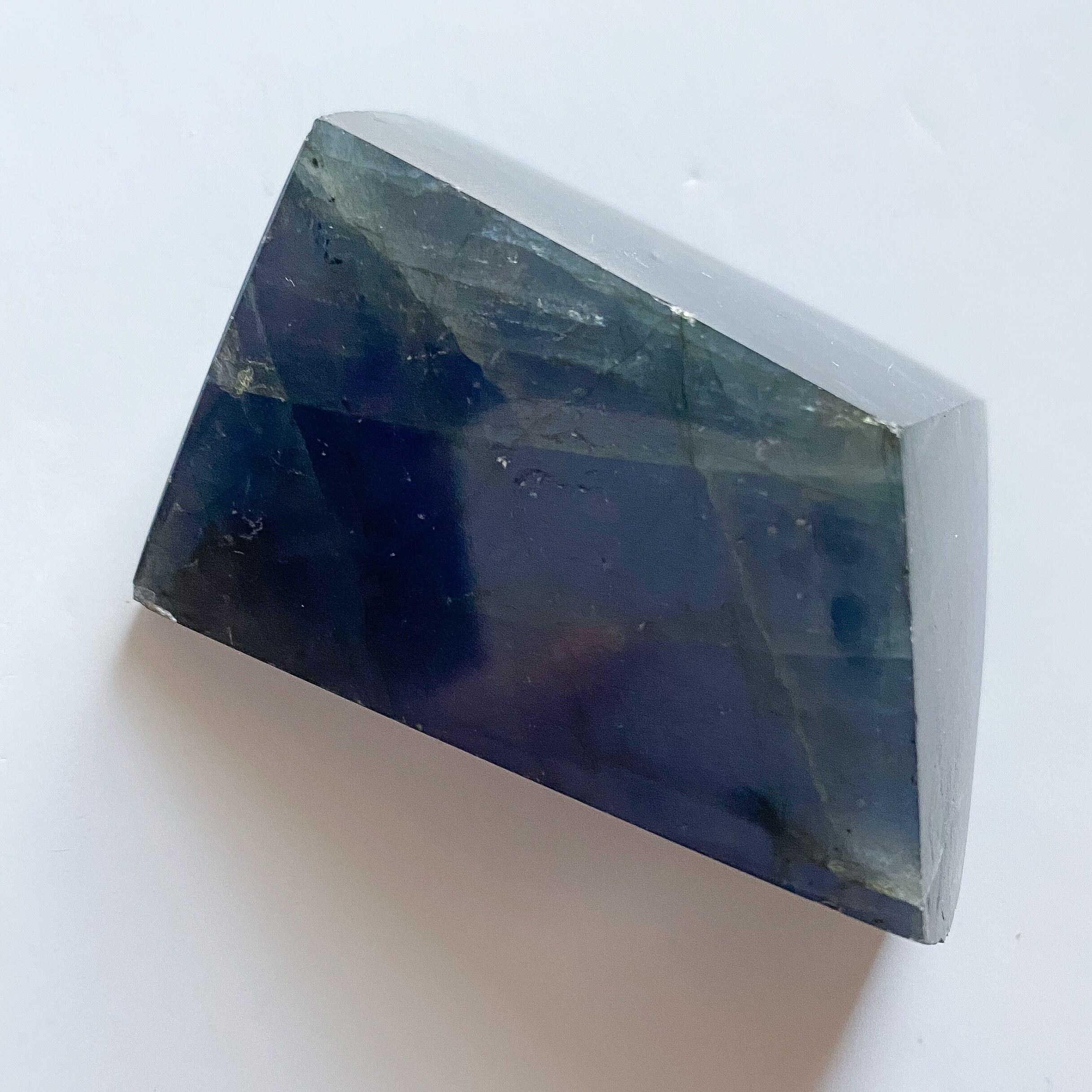カットの関係でシラーが良い角度で出る面が写真の一面のみとなりますが、ラブラドライトの黒い地色や地色の中に現れるラメのような煌めきも美しいフリーフォームです。