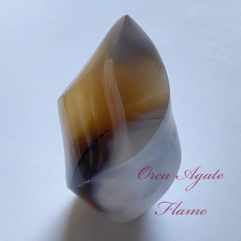 手の平サイズの炎を模ったオルカアゲートです。