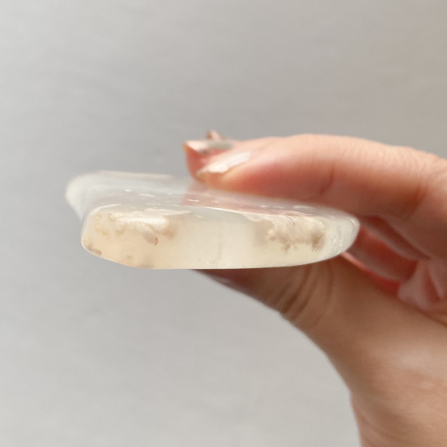 単にプレートとしてお使い頂いても繊細なカラーとキラキラ感が可愛らしい桜瑪瑙だと思います。