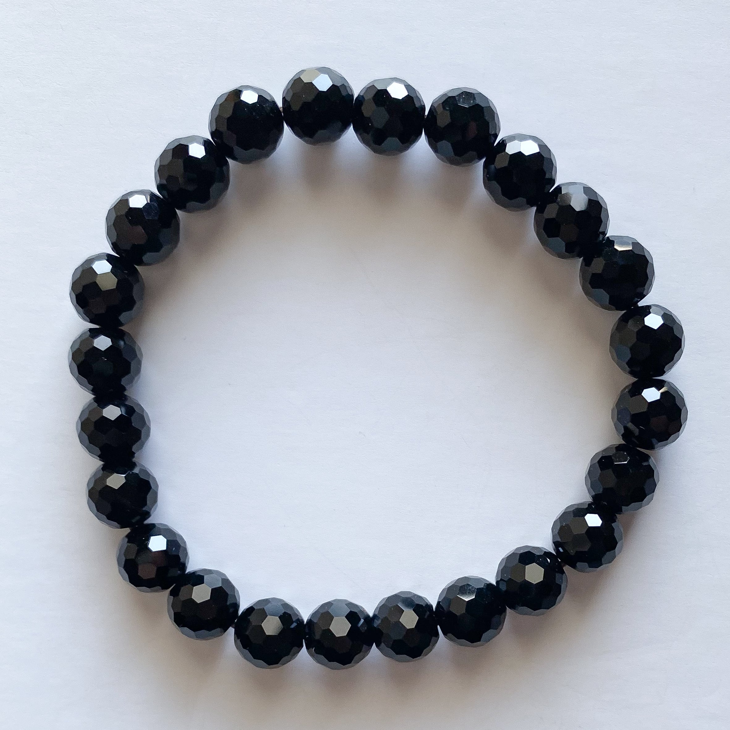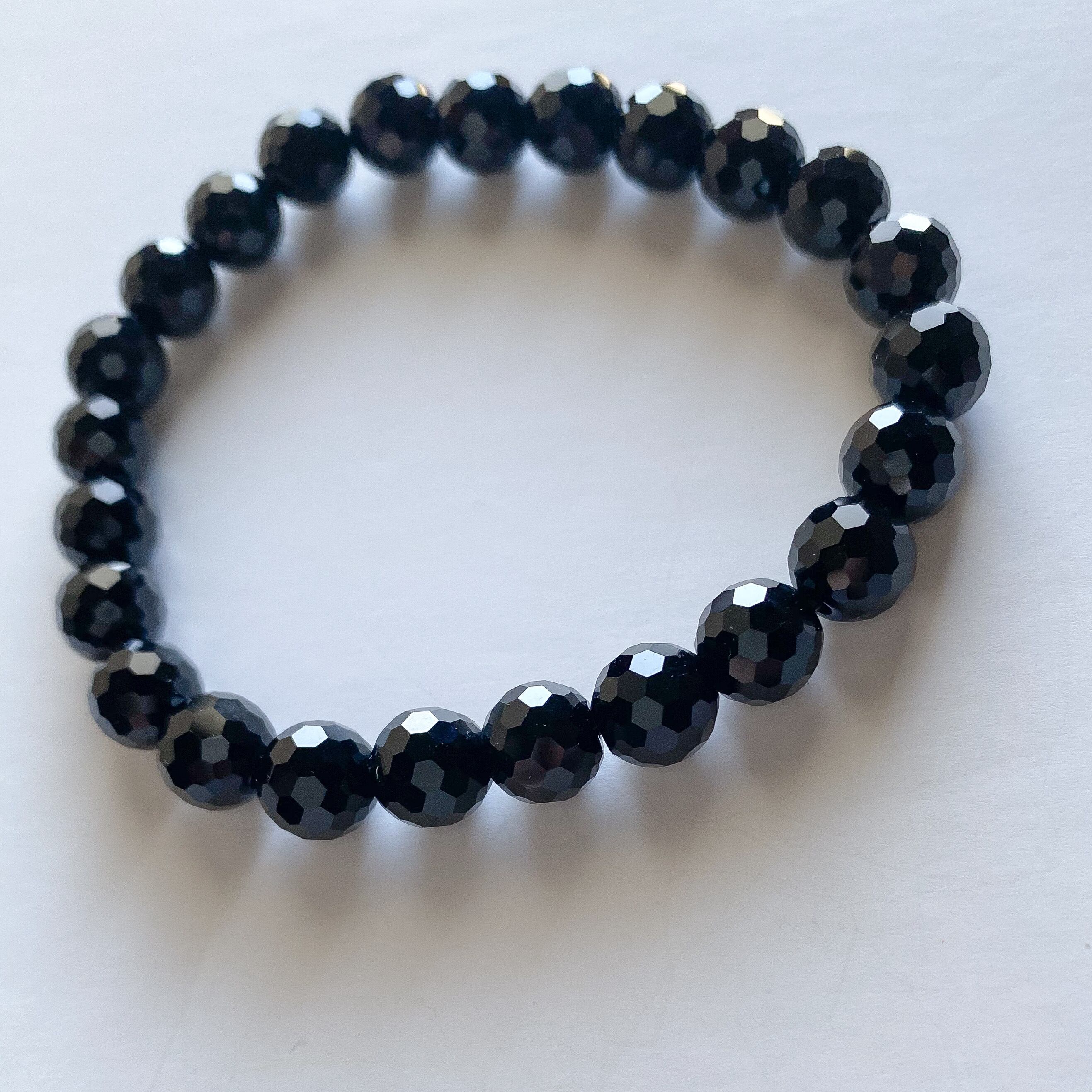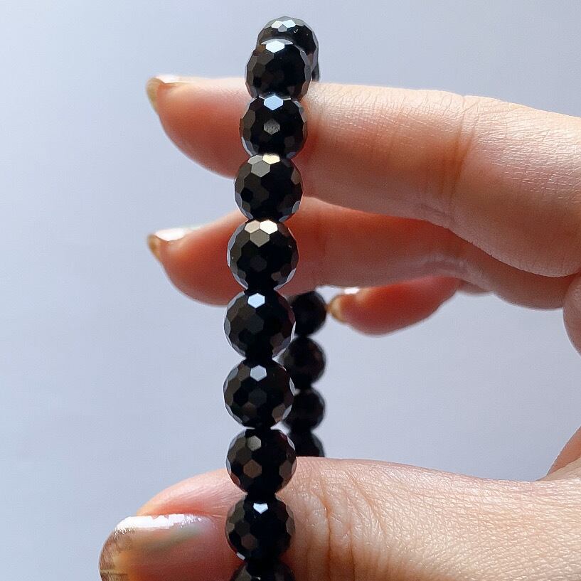 こちらは以前ご紹介致しましたブレスレットのサイズ違いとなるモリオンの128面カット8mm玉のブレスレットです。