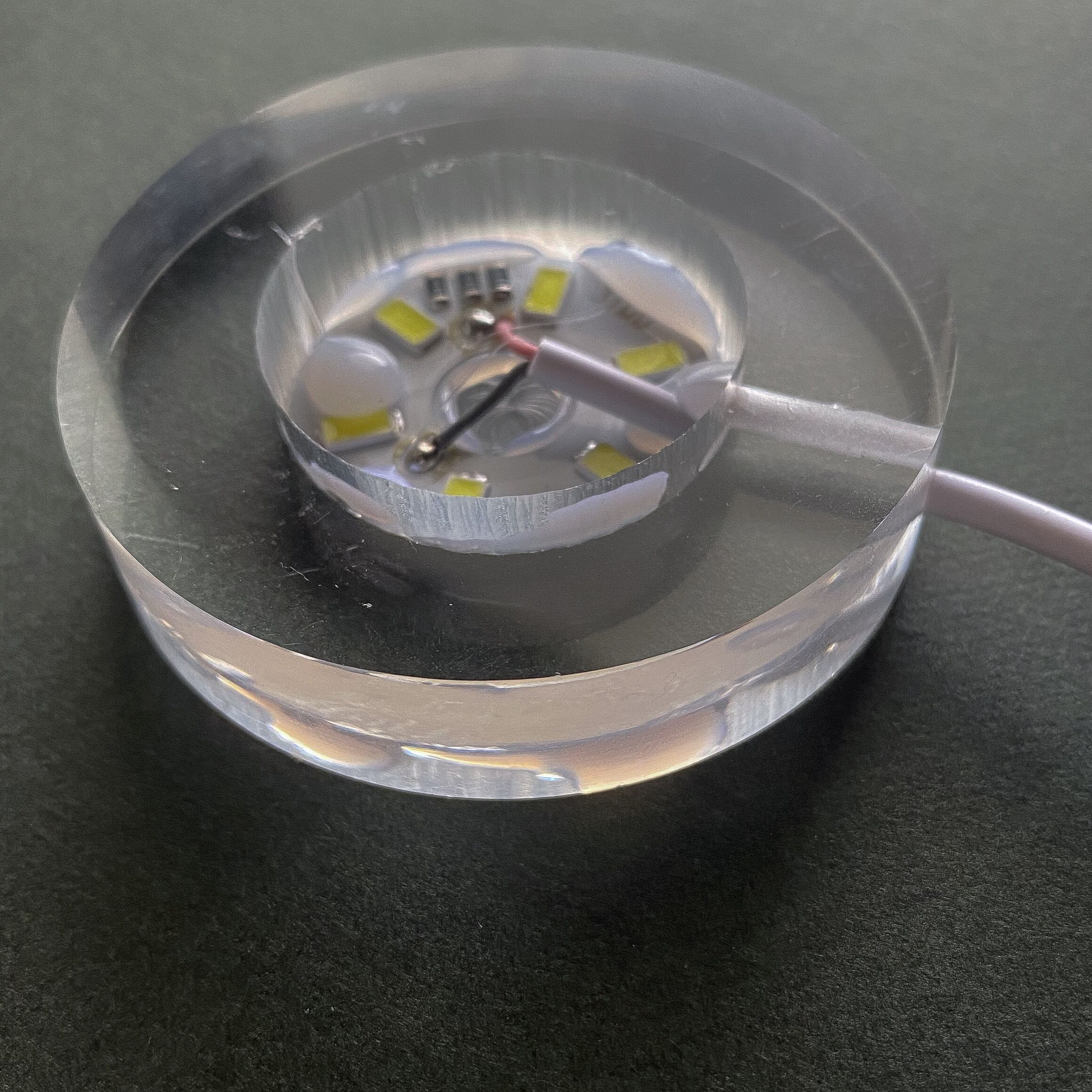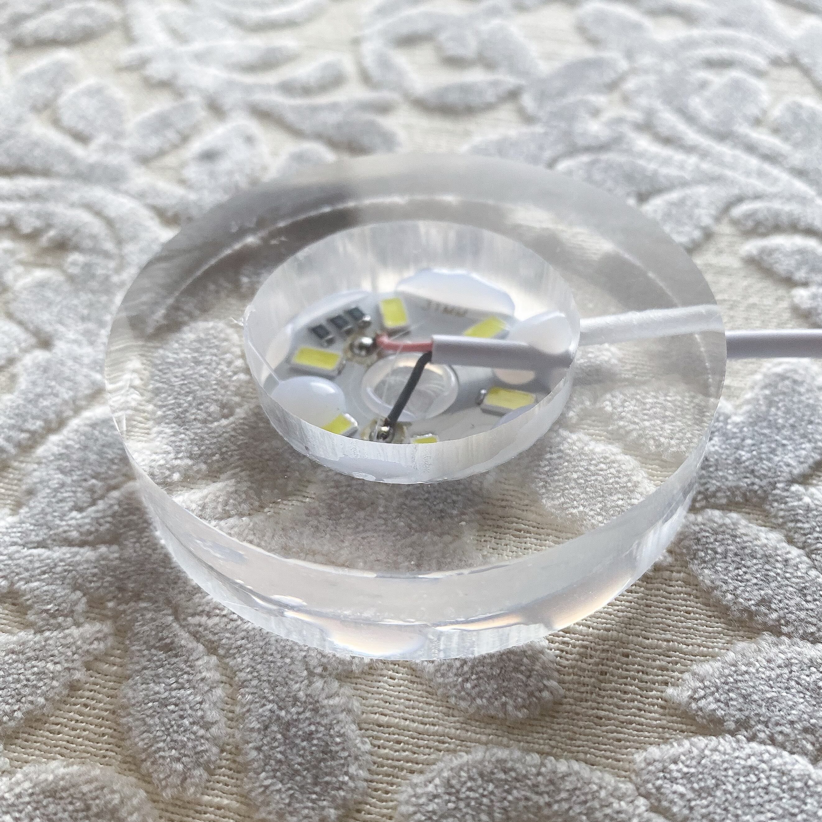 台座部分が透明のアクリル製ですので光をよく通します。透明感のないスフィアを置いていただいてもアクリル部分から光が漏れて周りを明るく照らしてくれます。