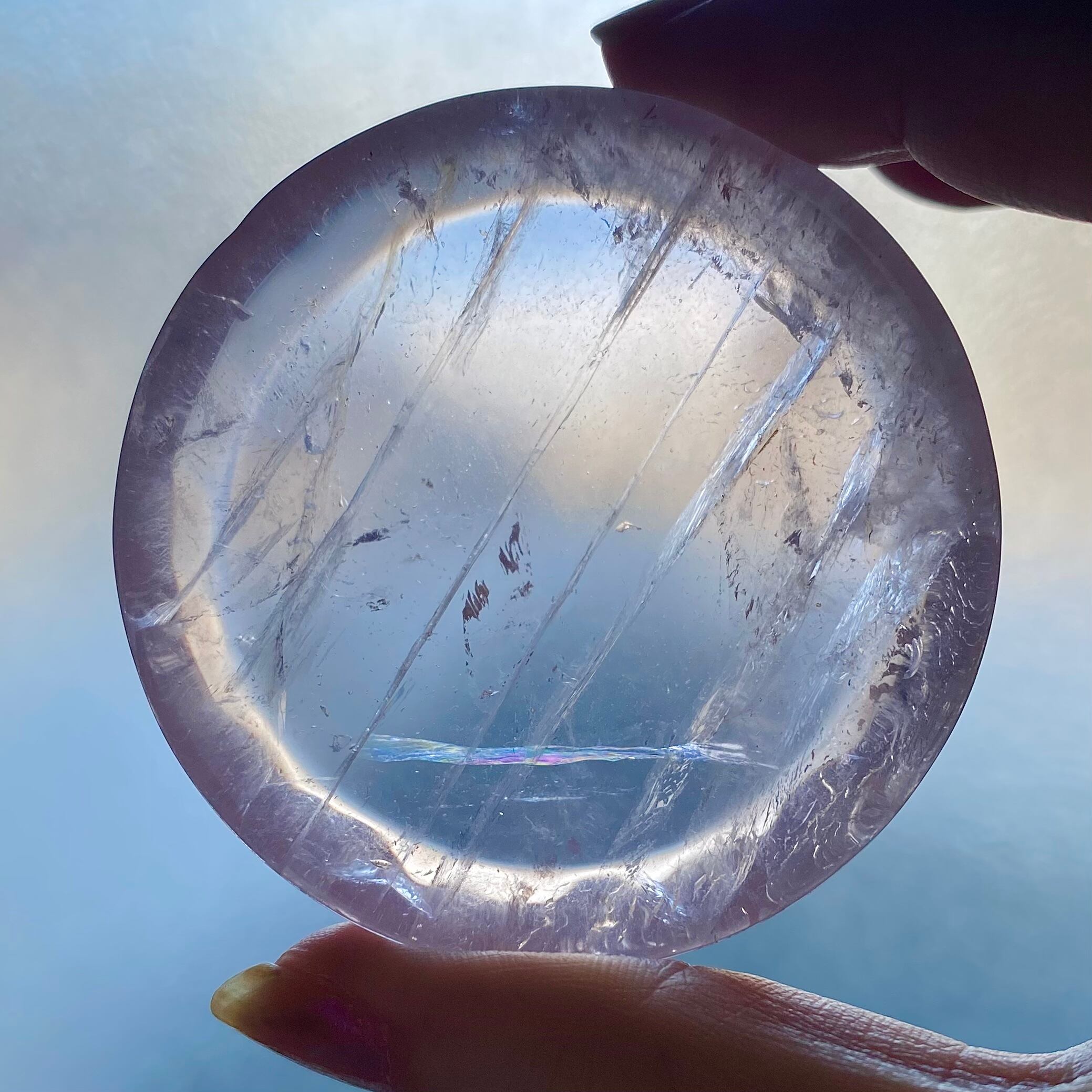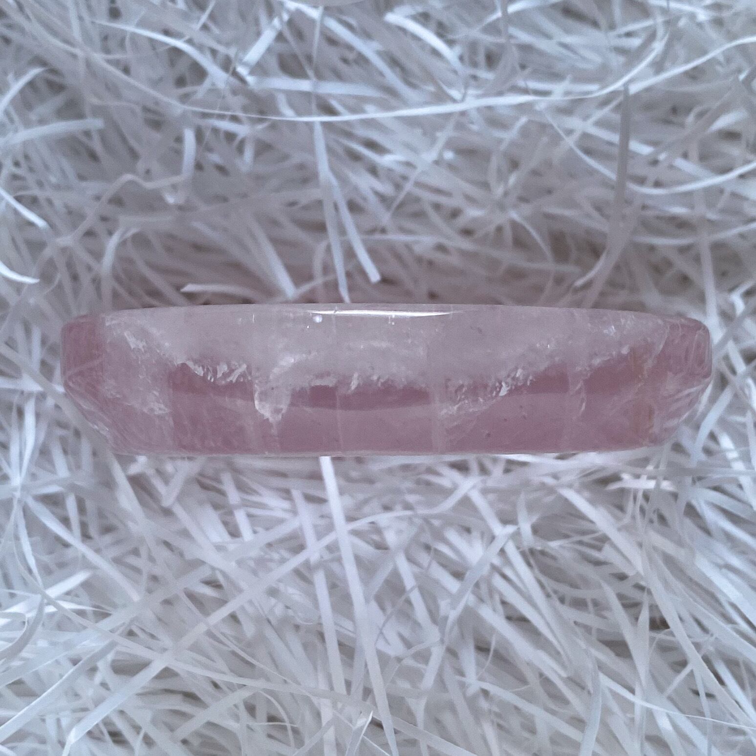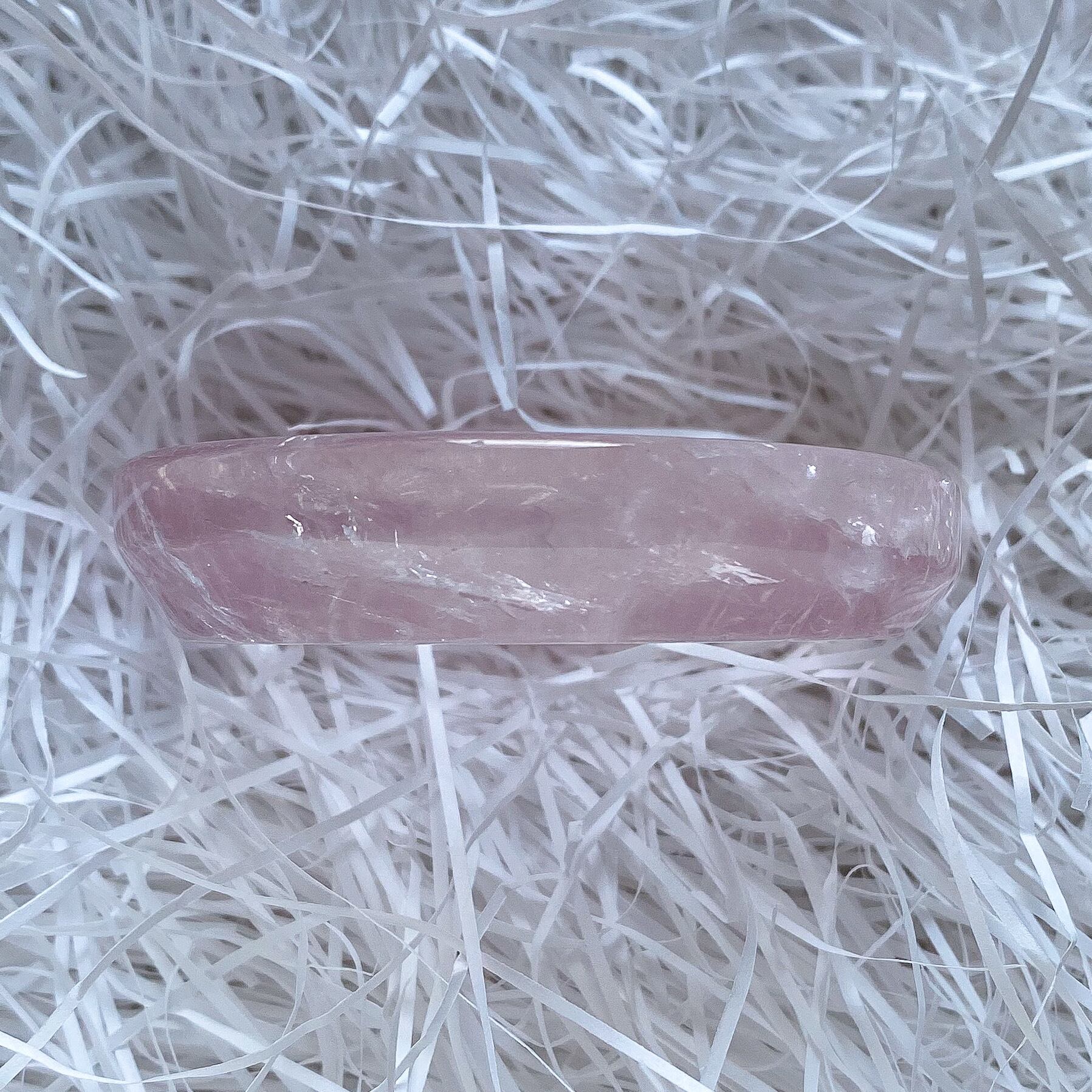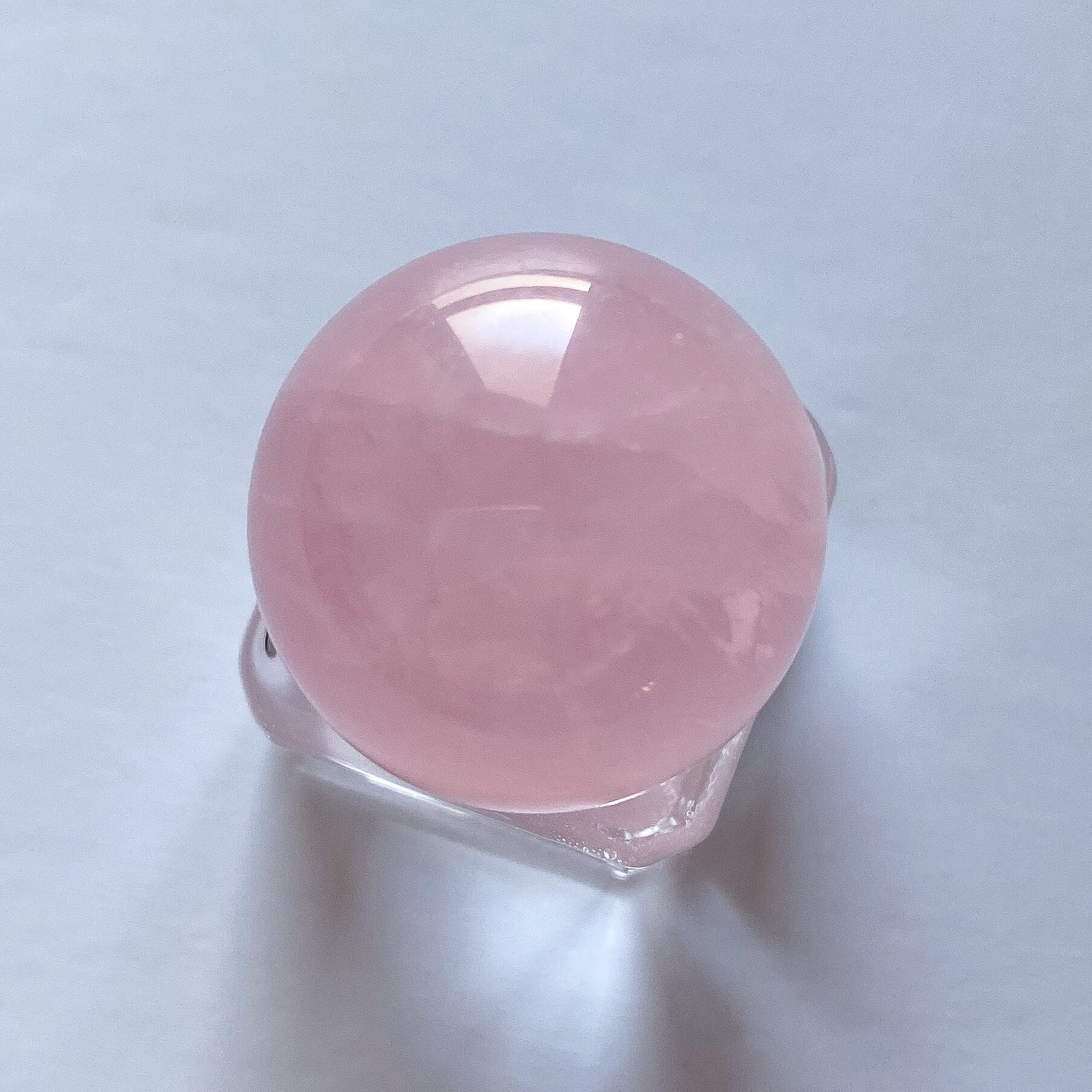 小振りなサイズ感ですが質の良い水晶のような透明感の中に色付くピンクが可愛らしく、ラウンド型ですのでスフィアの台座としてや小さなカービング、ビーズ、アクセサリーを置いて頂く等、多岐にご使用頂けるラウンドトレイだと思います。