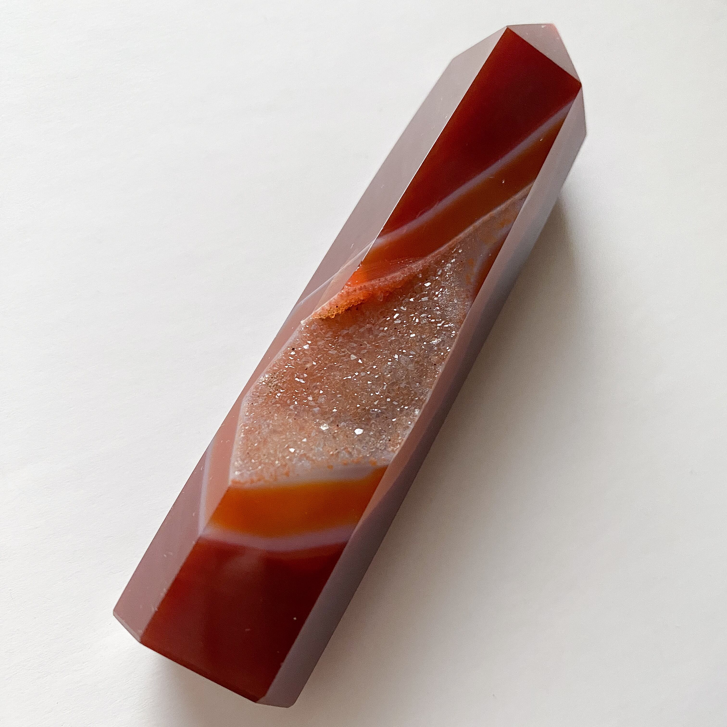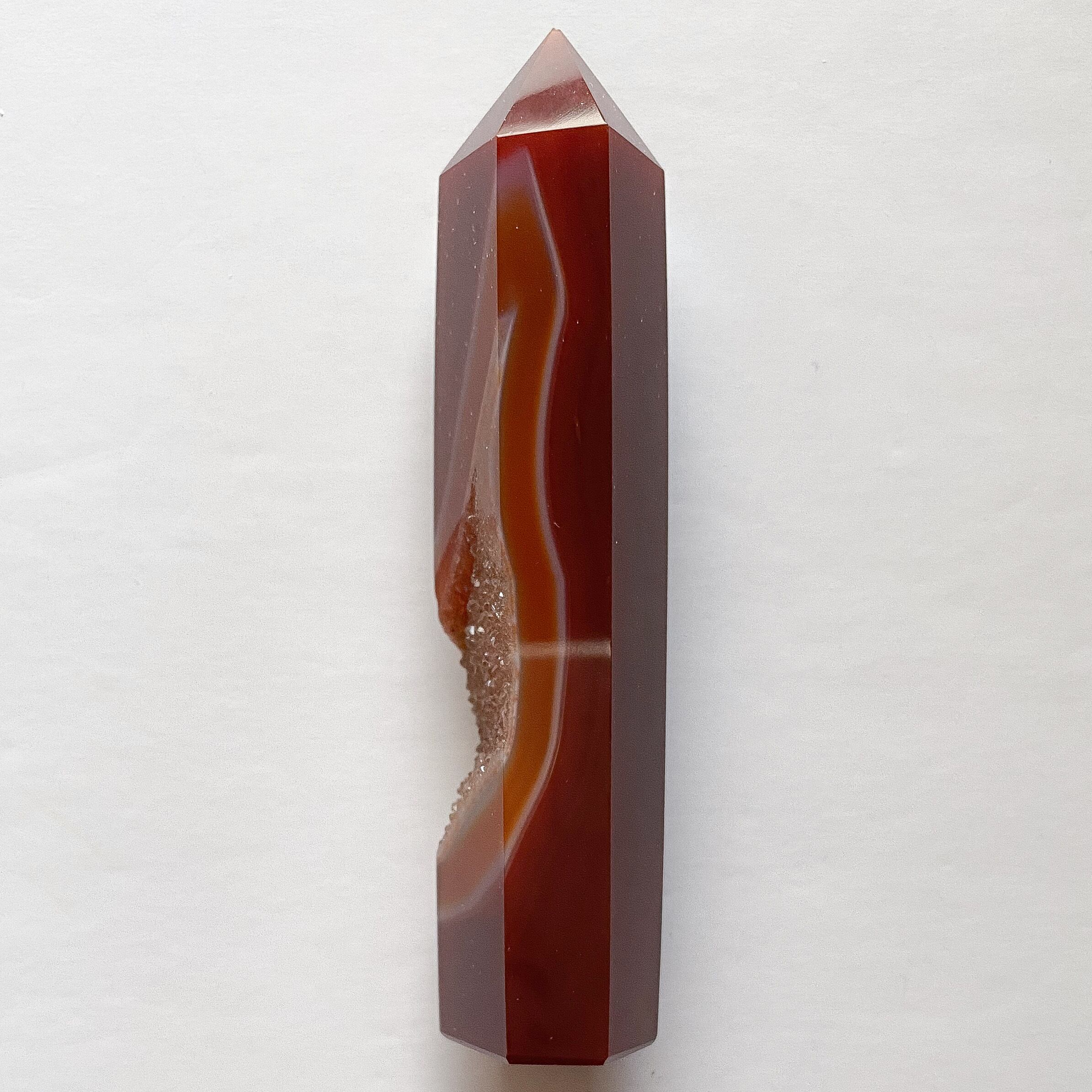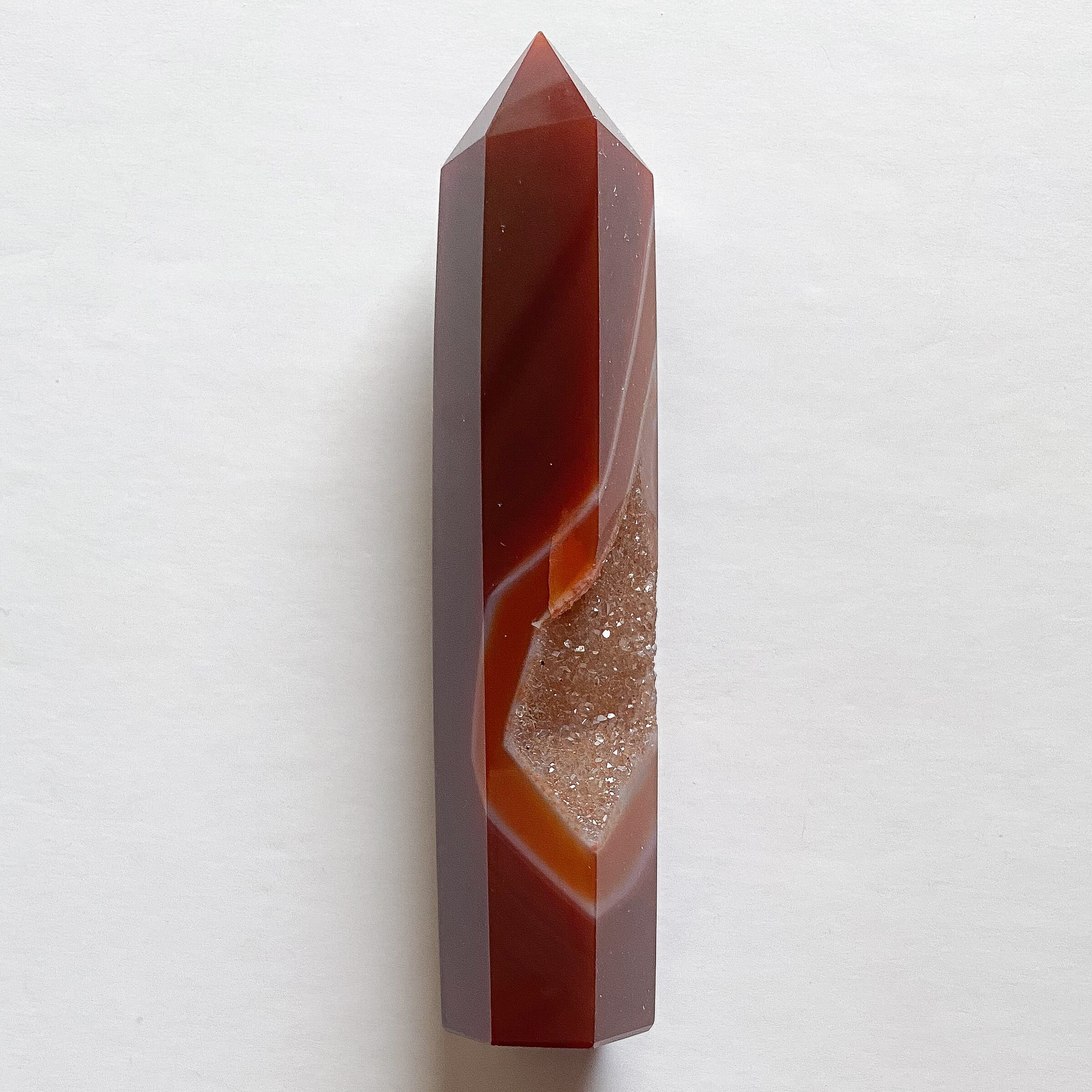 カーネリアンの一部がドゥルージーアゲートになっている珍しいタワーです。
