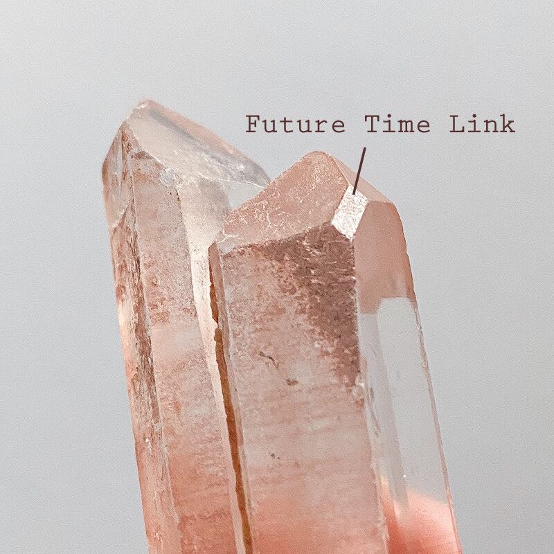先端部分は共にフューチャータイムリンクがありますので未来向きのエネルギー、右回りの水晶となります。透明感のある部分から中を覗き見るとクォーツインクォーツも見られ、見所が沢山のポイントです。