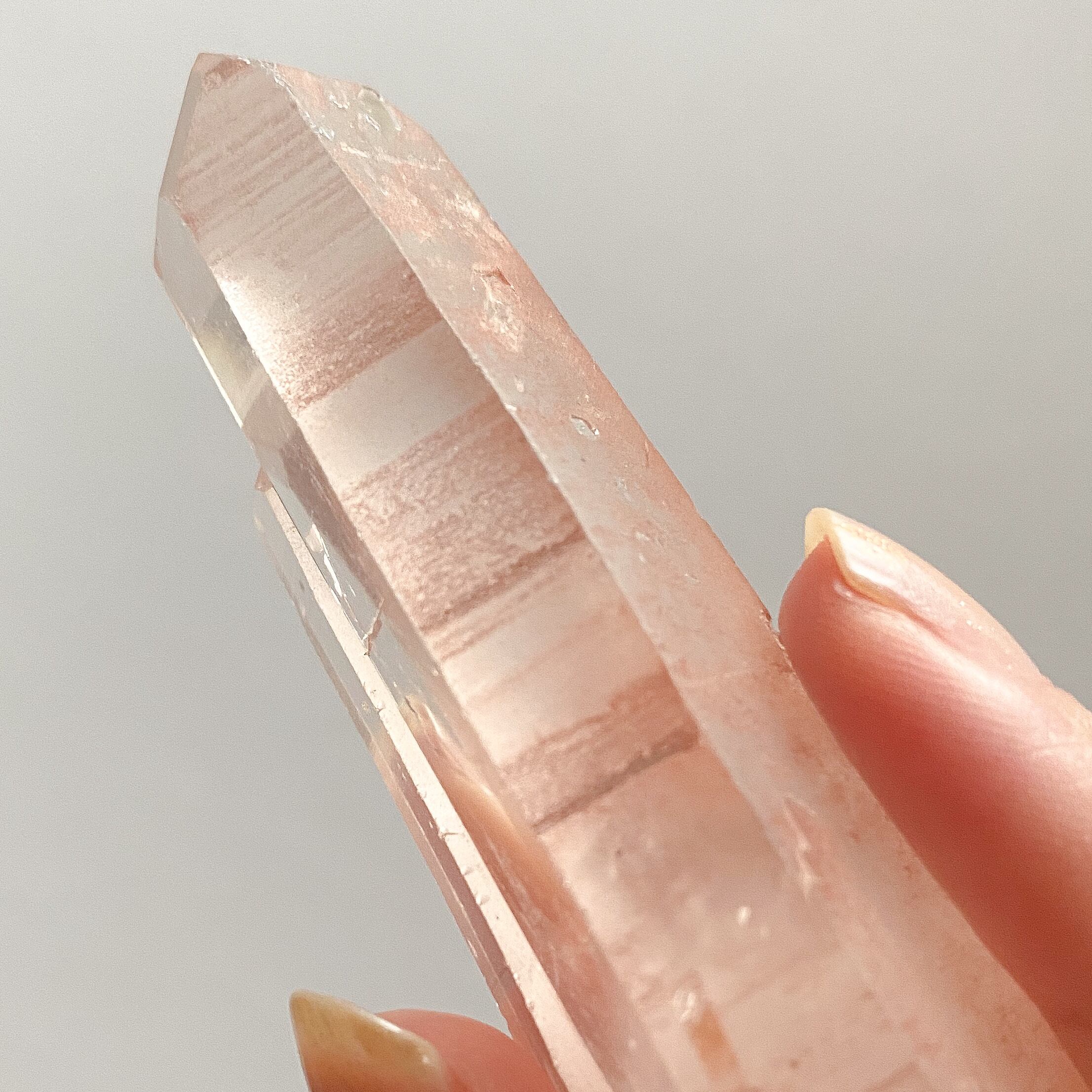 かつてレムリア大陸があったとされる一帯の一つであるマダガスカル産のピンククリスタルクォーツで、ピンクカラーは表面に付着している鉄分によるもので天然色です。