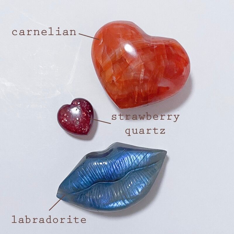 ストロベリークォーツはカーネリアンと合わせてもリップと合わせても相性の良い真っ赤でマイカが沢山入ったキラキラのものを選んでいます。