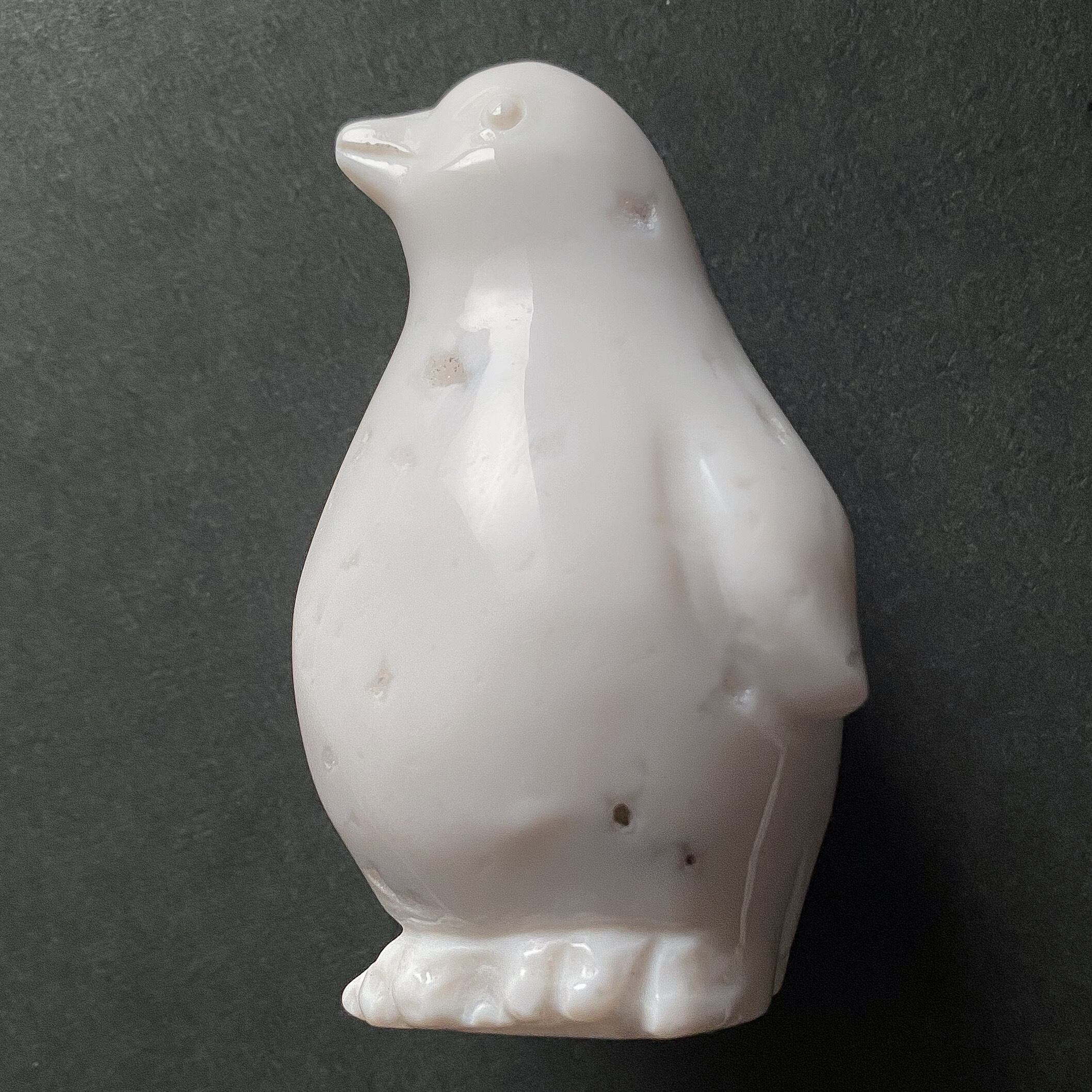 前回のものより大きめサイズのホワイトアゲートのペンギンさんです。