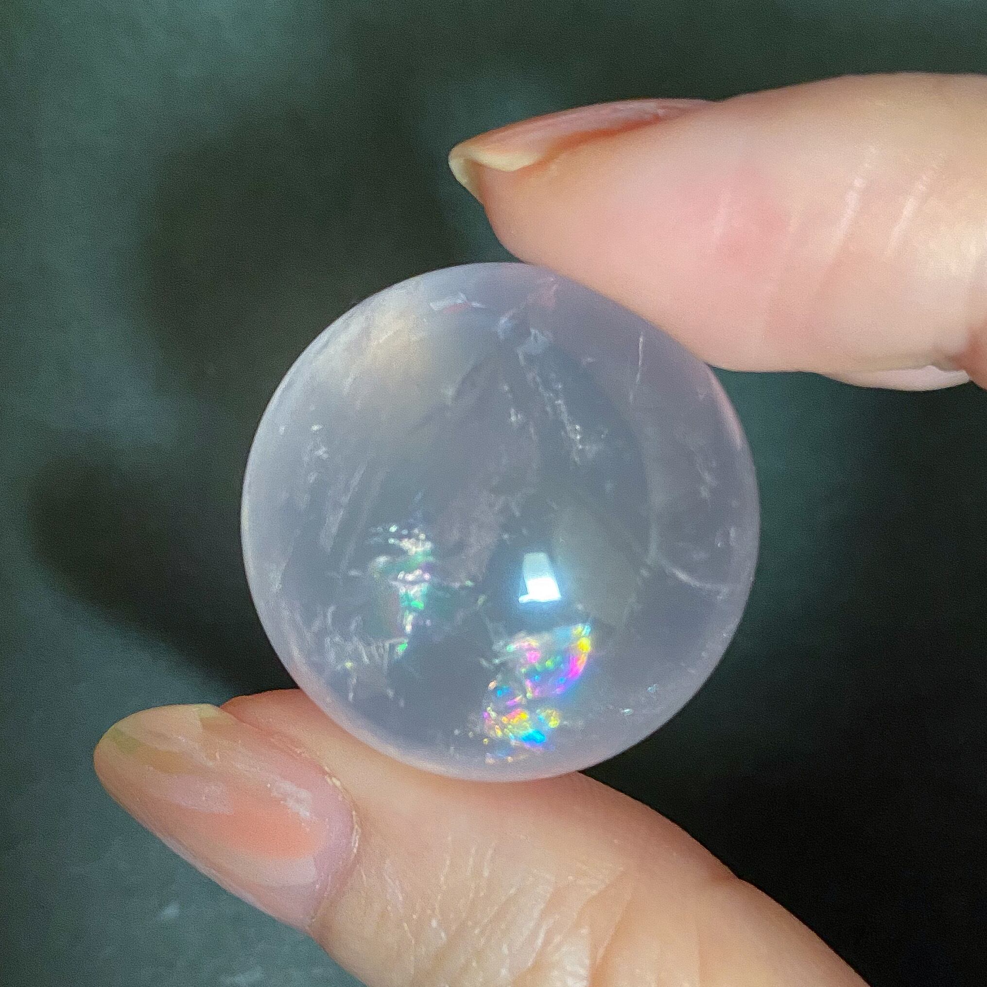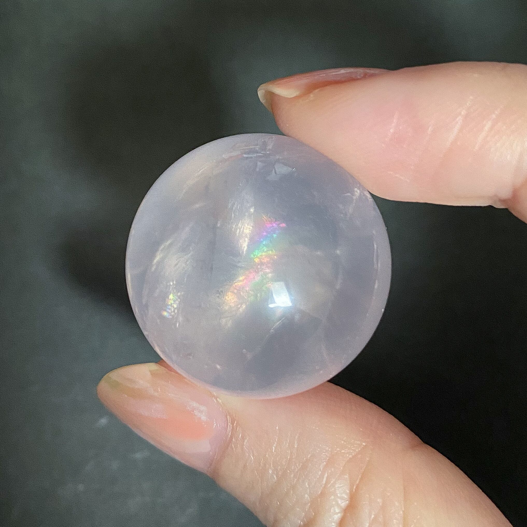 こちらも透明度が高く淡く優しいカラーの高品質ミニスフィアですが、Aはよりスターが強く、こちらのBは虹が入るタイプになります。
