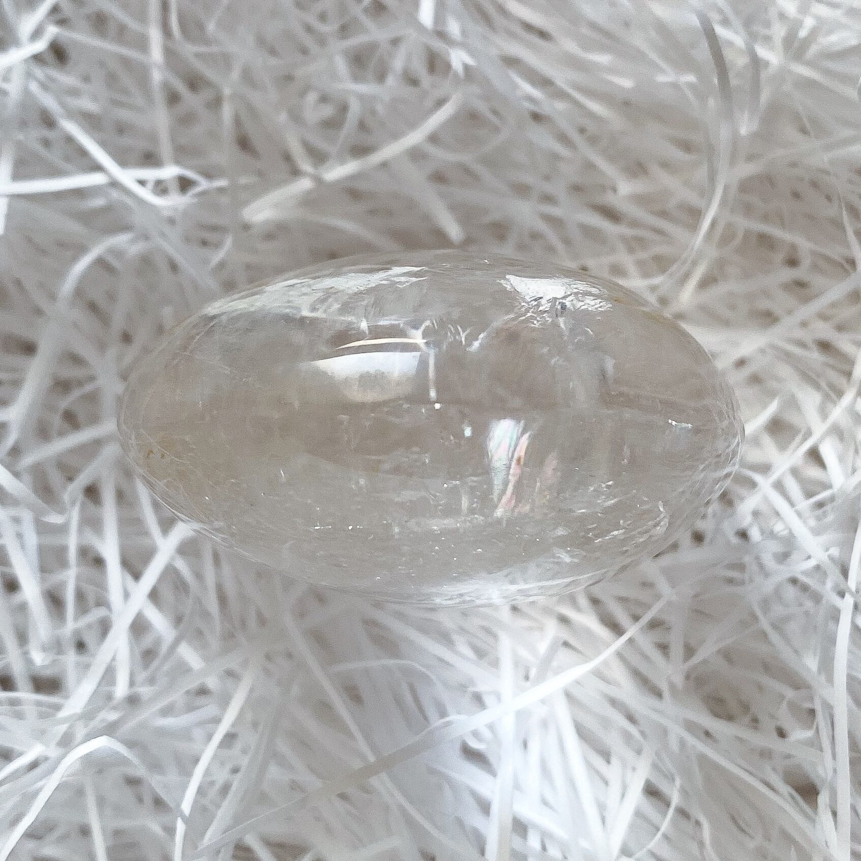 水晶ですので浄化用としては勿論ですが平置きでも虹を確認して頂けます。手の中で握って頂いても大きな虹が覗く様が美しくつい眺めていたくなるパーストーンではないかと思います。