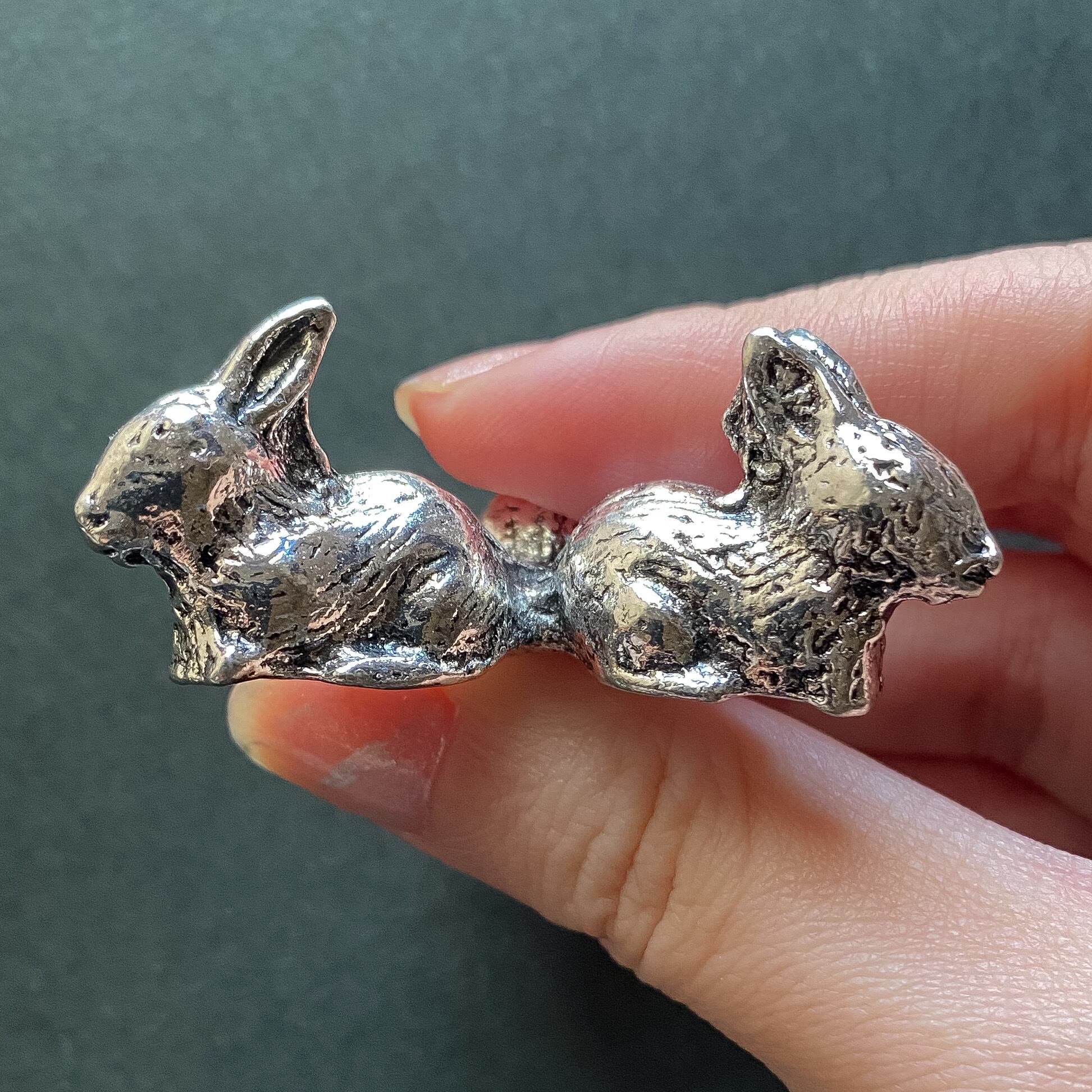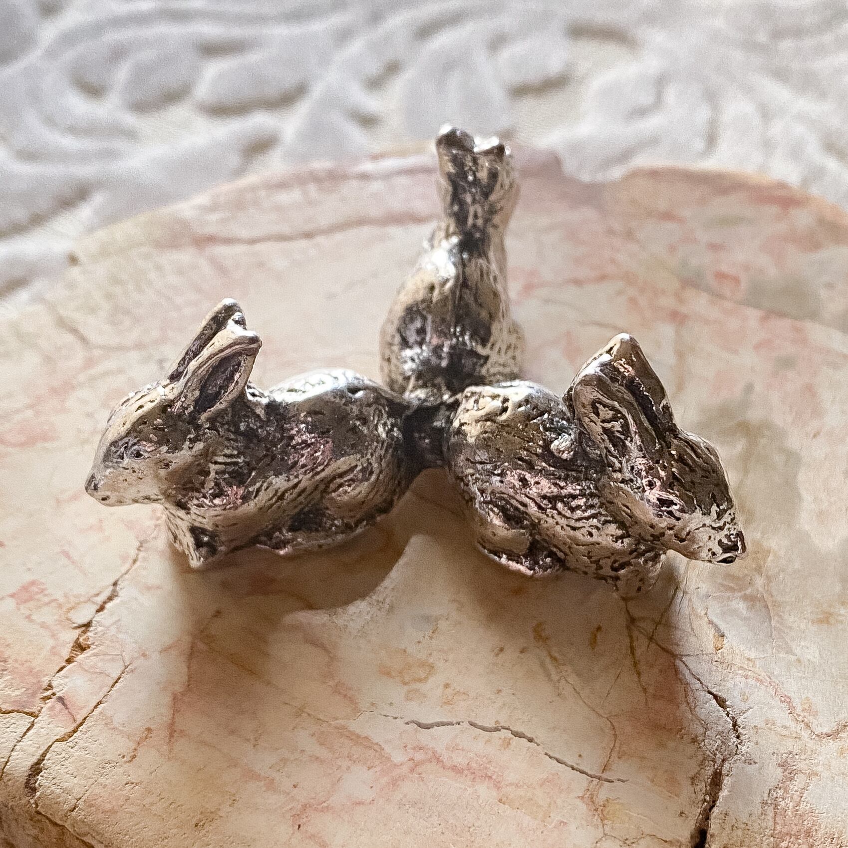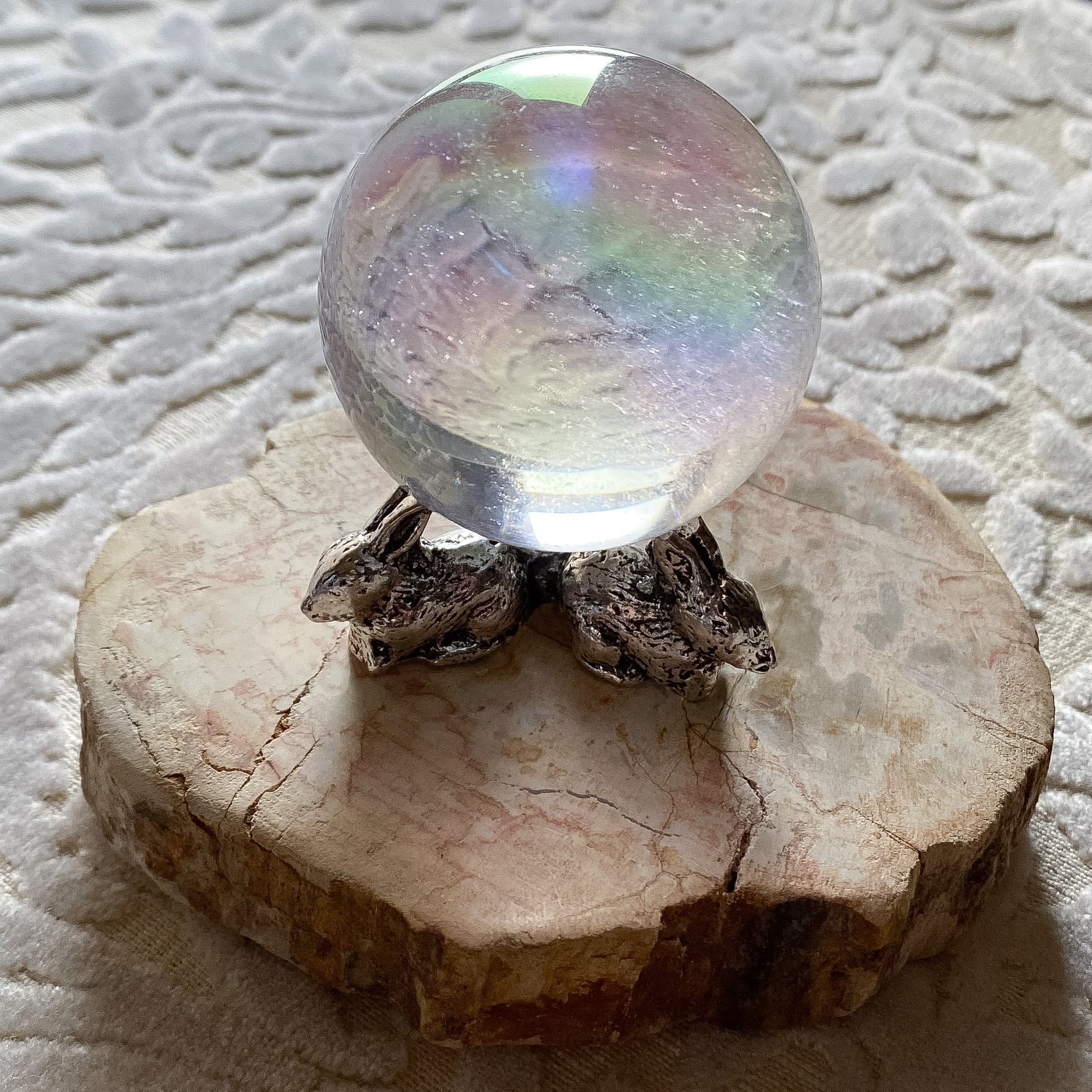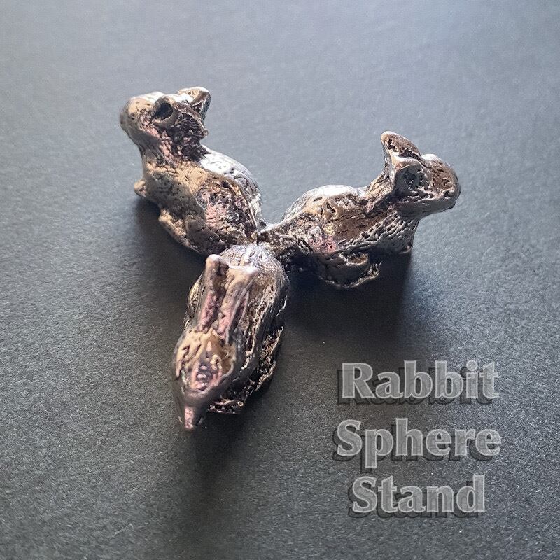 シルバーカラーの金属製で、うさぎが3羽集まった形になっています。スフィアを支える部分が3点となり、重心も低いですので安定感がありかなり大きめのスフィアも安定して乗せることが出来ます。