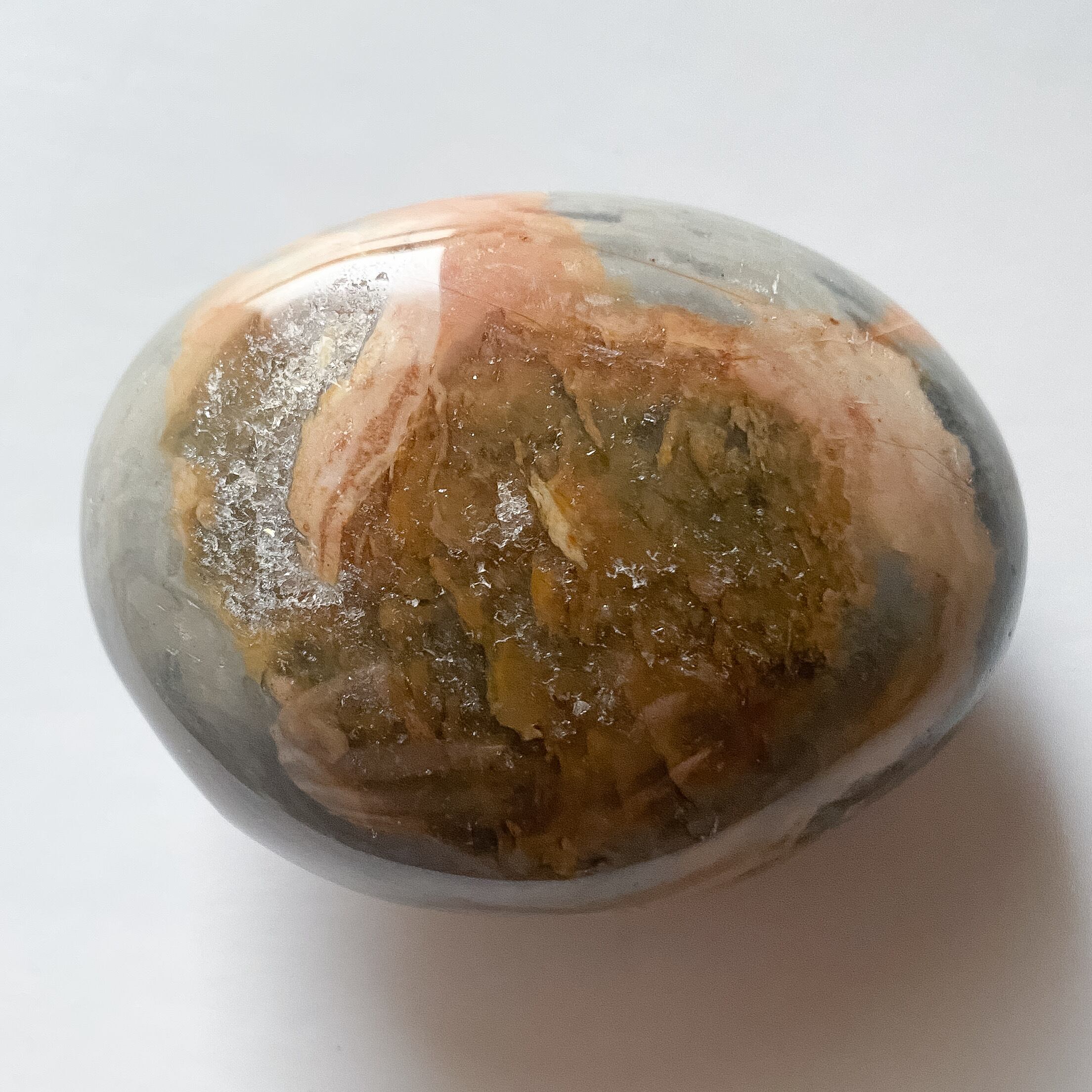 石の継ぎ目に石英が成長する様は心の調和や修復に作用し、その柔らかで豊かな色彩がインスピレーションを冴えさせるとも言われています。