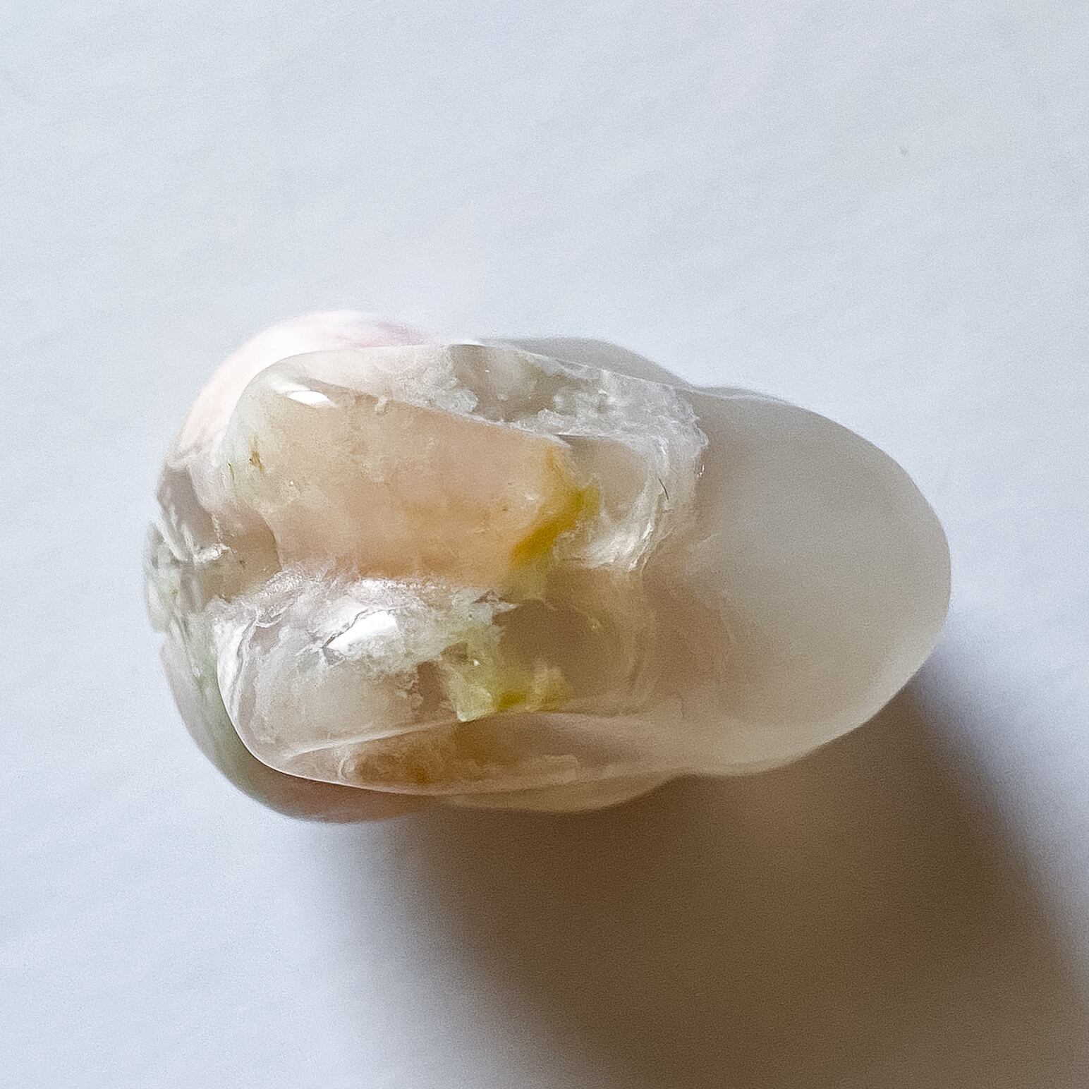 別名桜瑪瑙、チェリーブロッサムアゲートなどと呼ばれます。瑪瑙の仲間で、花が咲いた様な模様が入っていることからそう呼ばれています。
