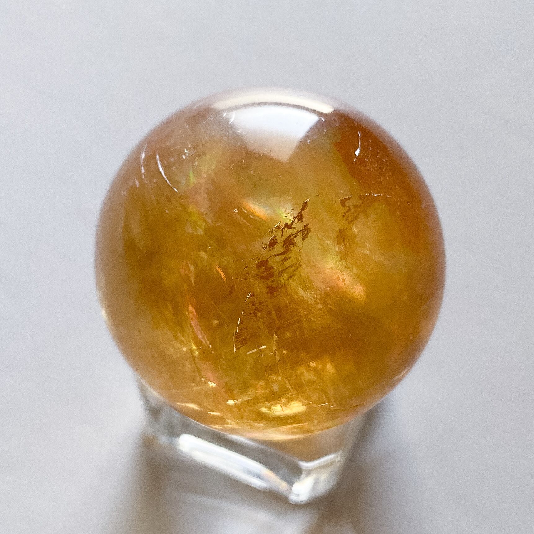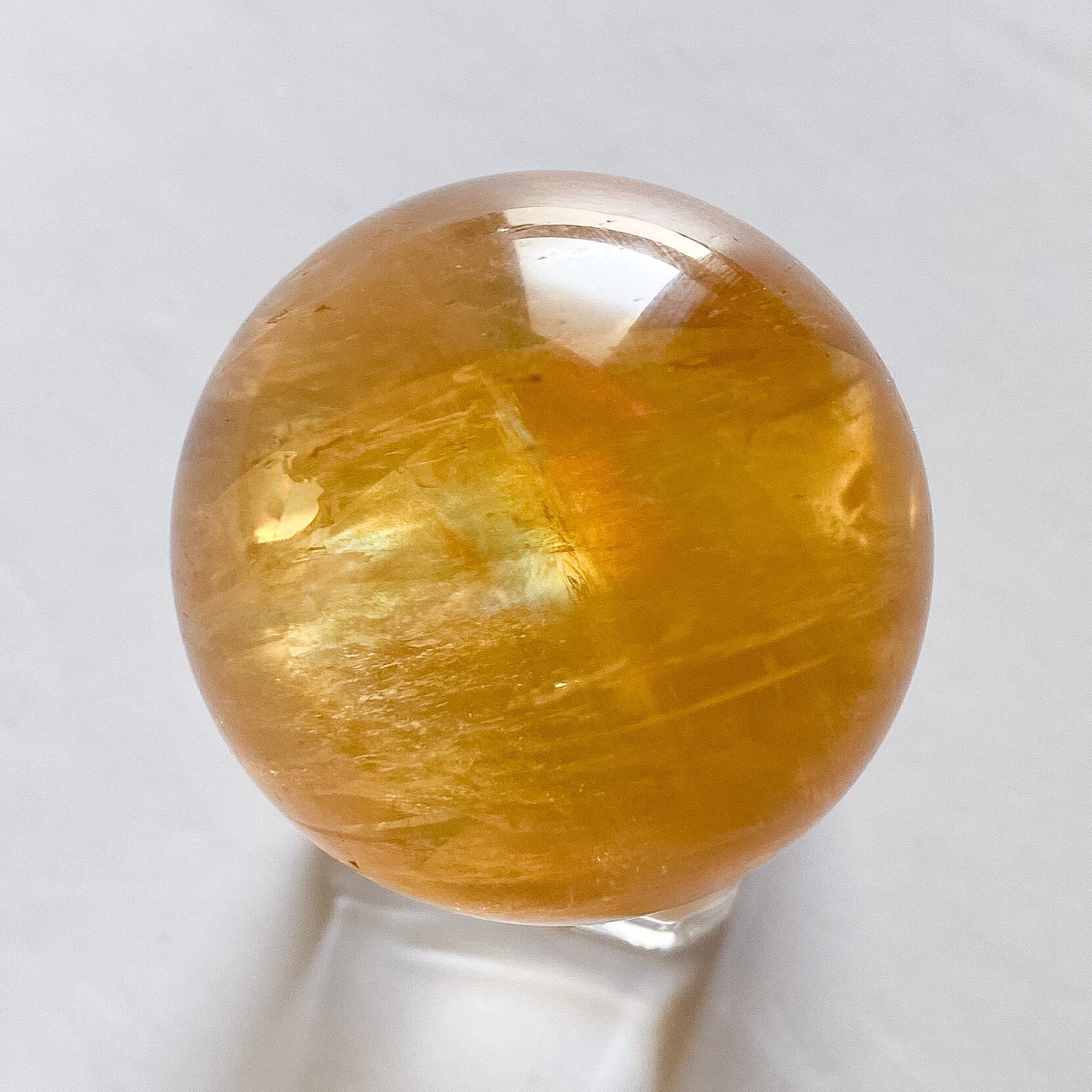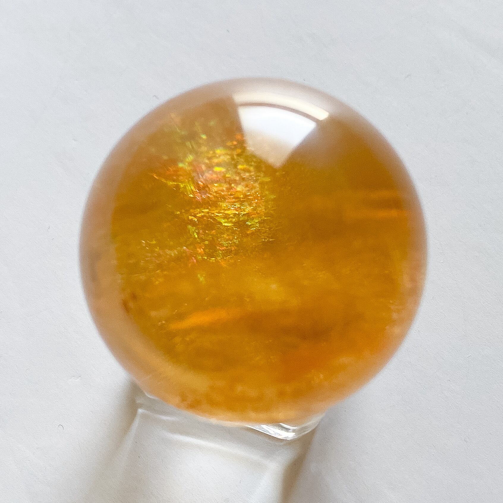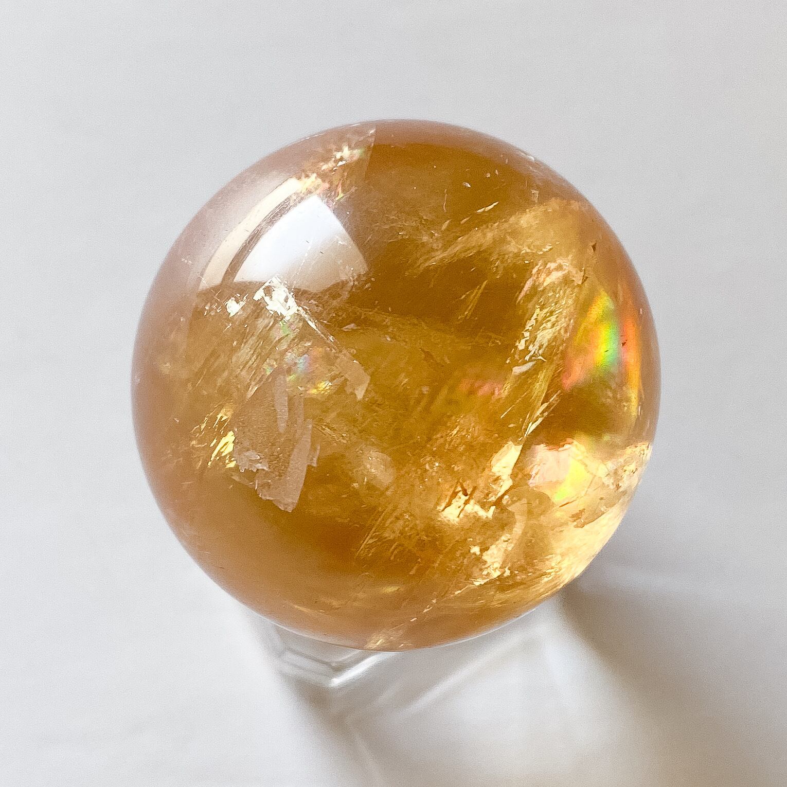 明るく光を通す様子が太陽のようで、見ているとこちらの気分も晴れやかに照らしてくれそうな温かいカラーのスフィアだと思います。